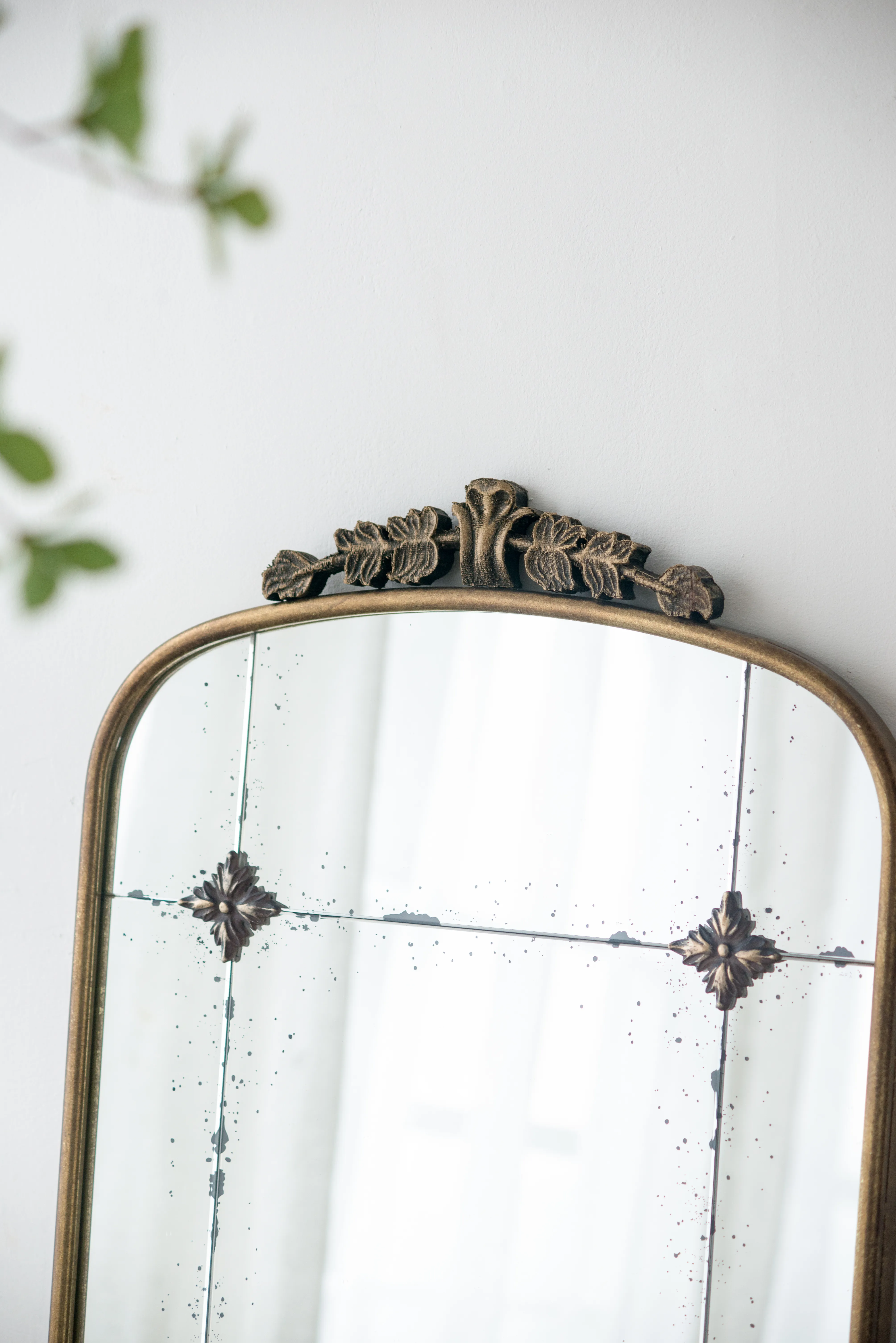• Elegant Design: This full-length mirror features a lavish gold finish and arched metal frame, adding a touch of sophistication to any room.