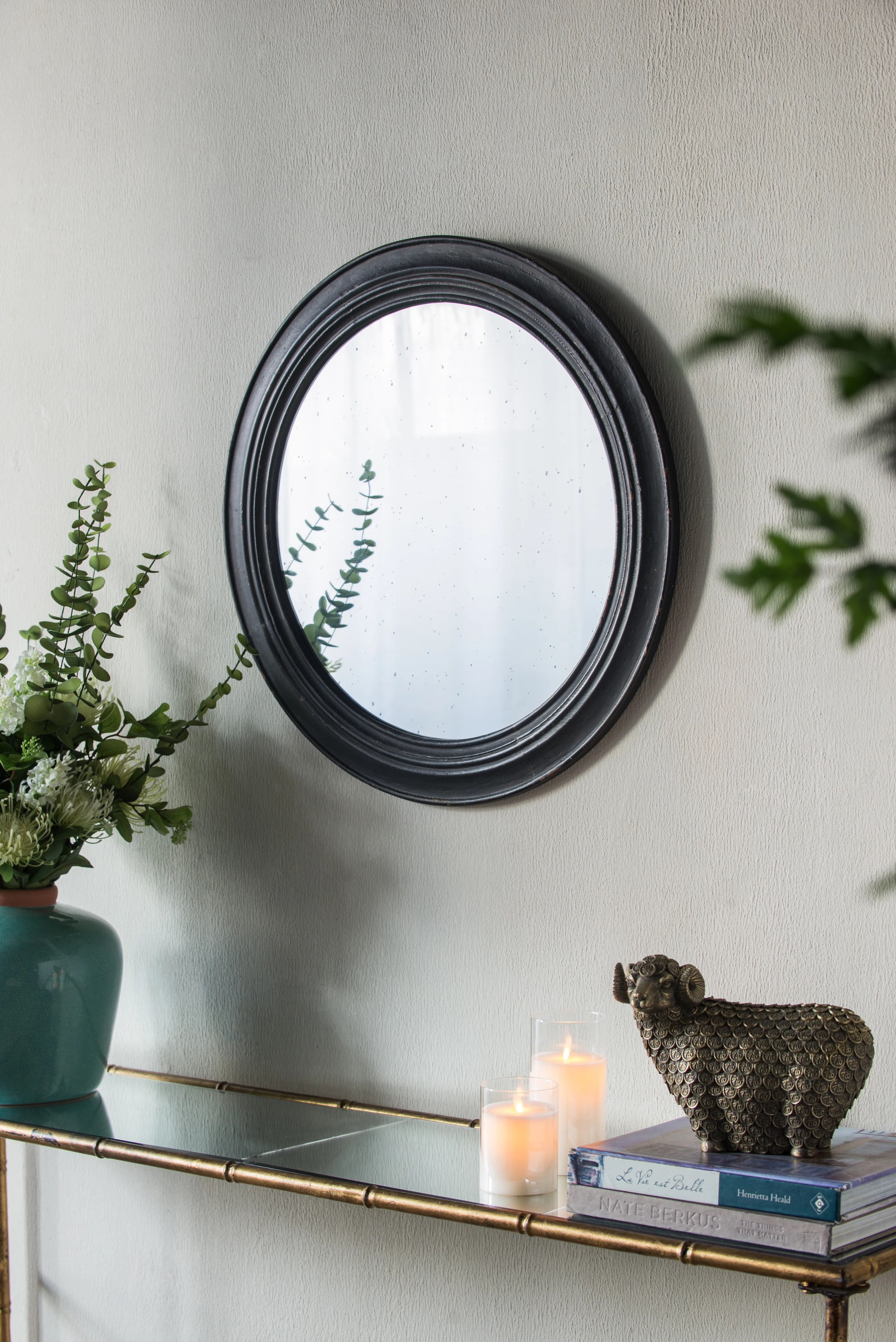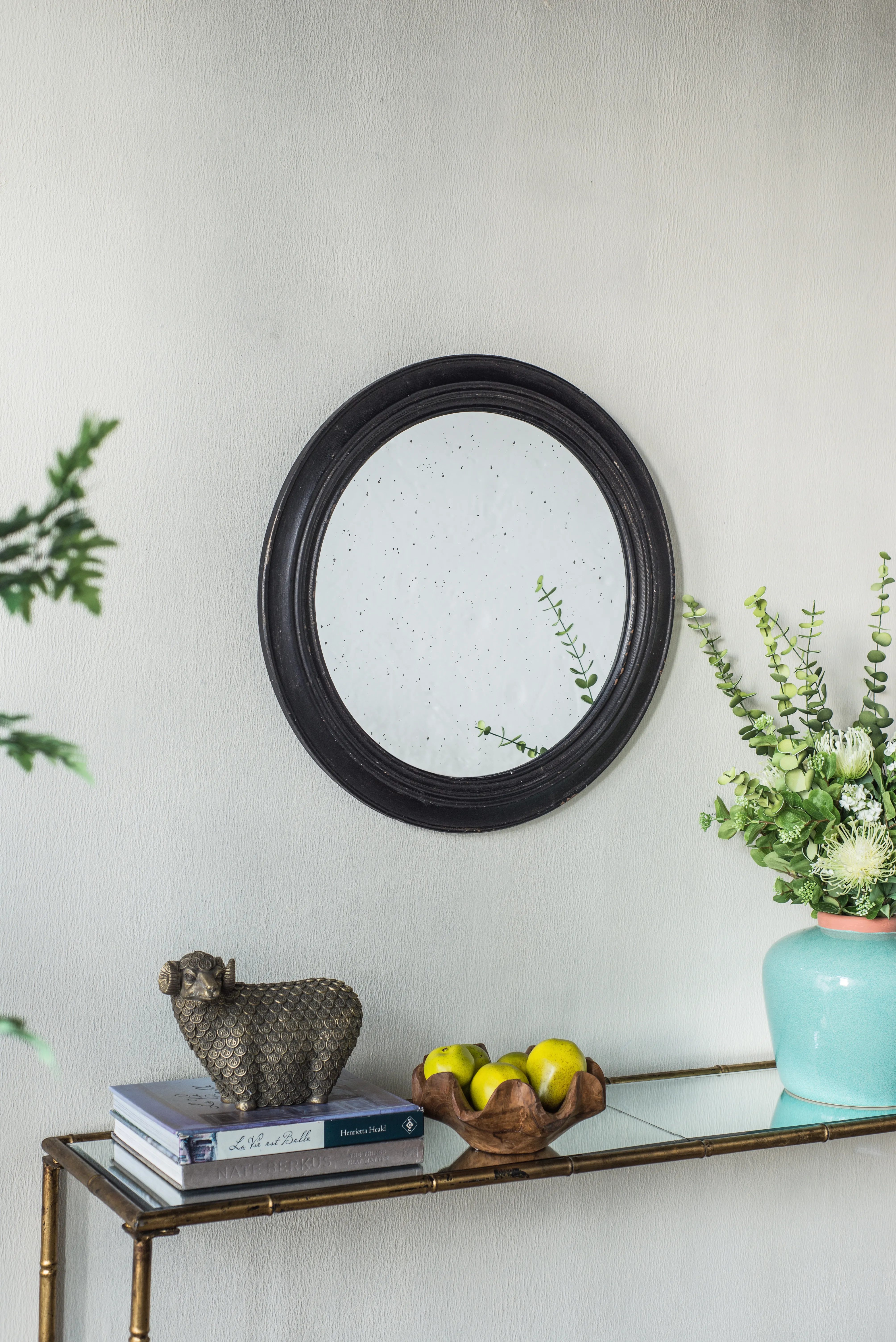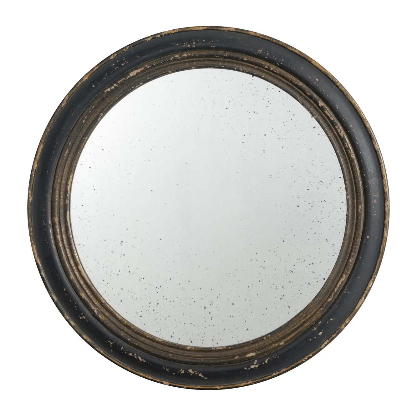 Circle Wall Mirror With Wooden Frame, Antique Classic Accent Mirror - Black