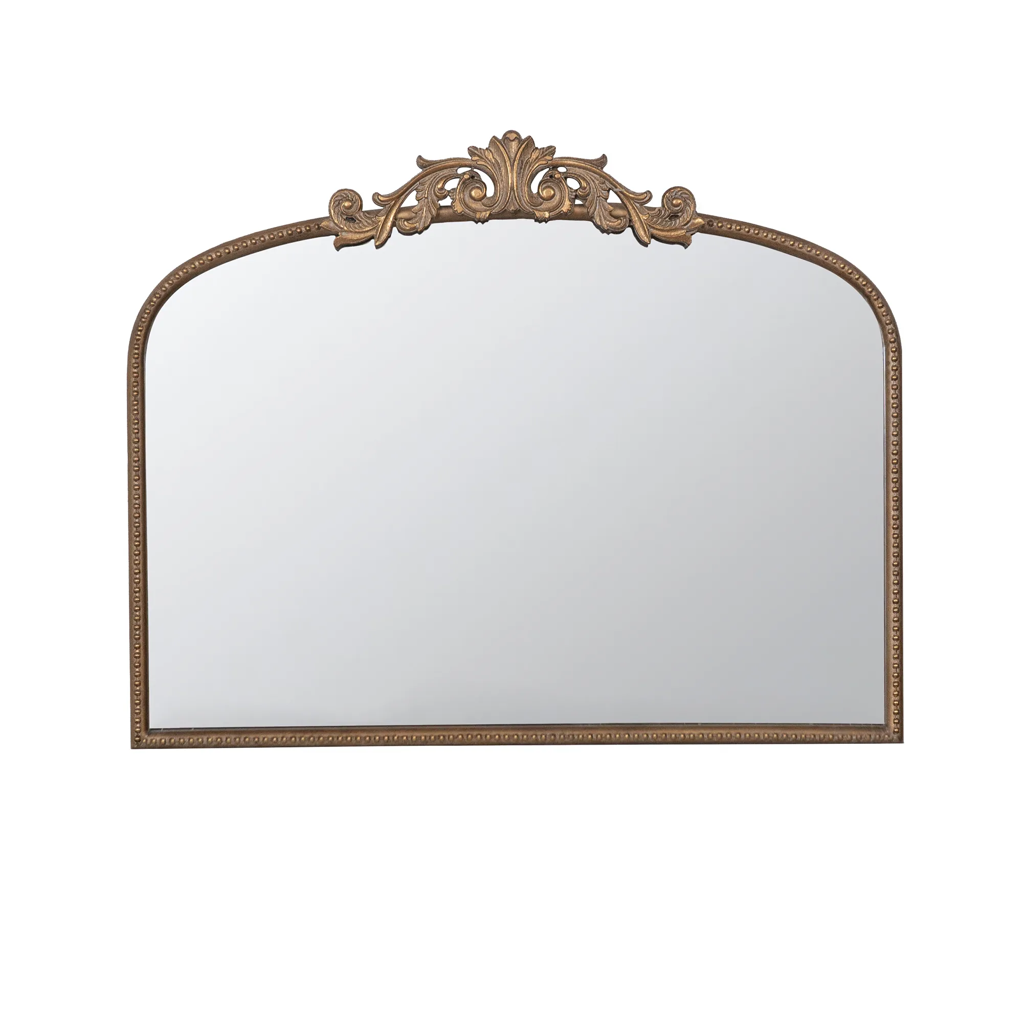 Vintage Inspired Design: The classic arch mirror features elegant adornments on top, providing a vintage-inspired look that enhances any decor. Versatile Placement: Ideal for entryway consoles, leaning against walls, or positioning over fireplace mantels to elevate the space. Luxurious Appeal: Instantly makes any room appear luxurious and high-end with its sophisticated design. Durable Construction: Custom inlaid glass is safely protected by a sturdy frame made of 50% glass, 30% iron, and 20% MDF.