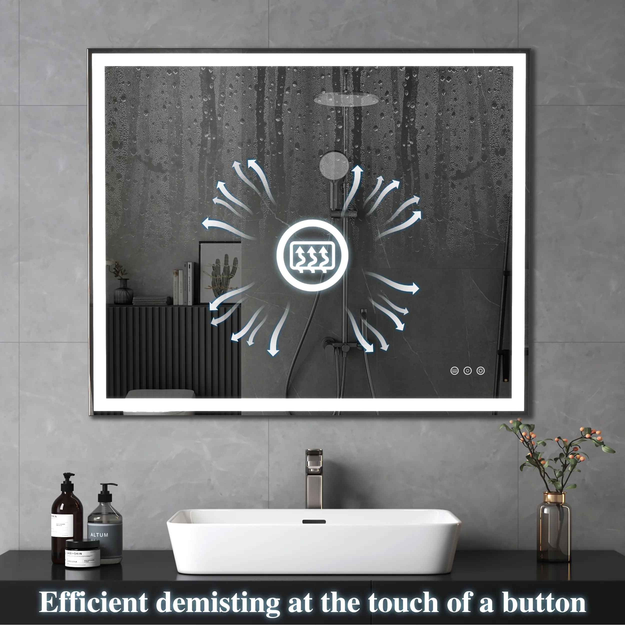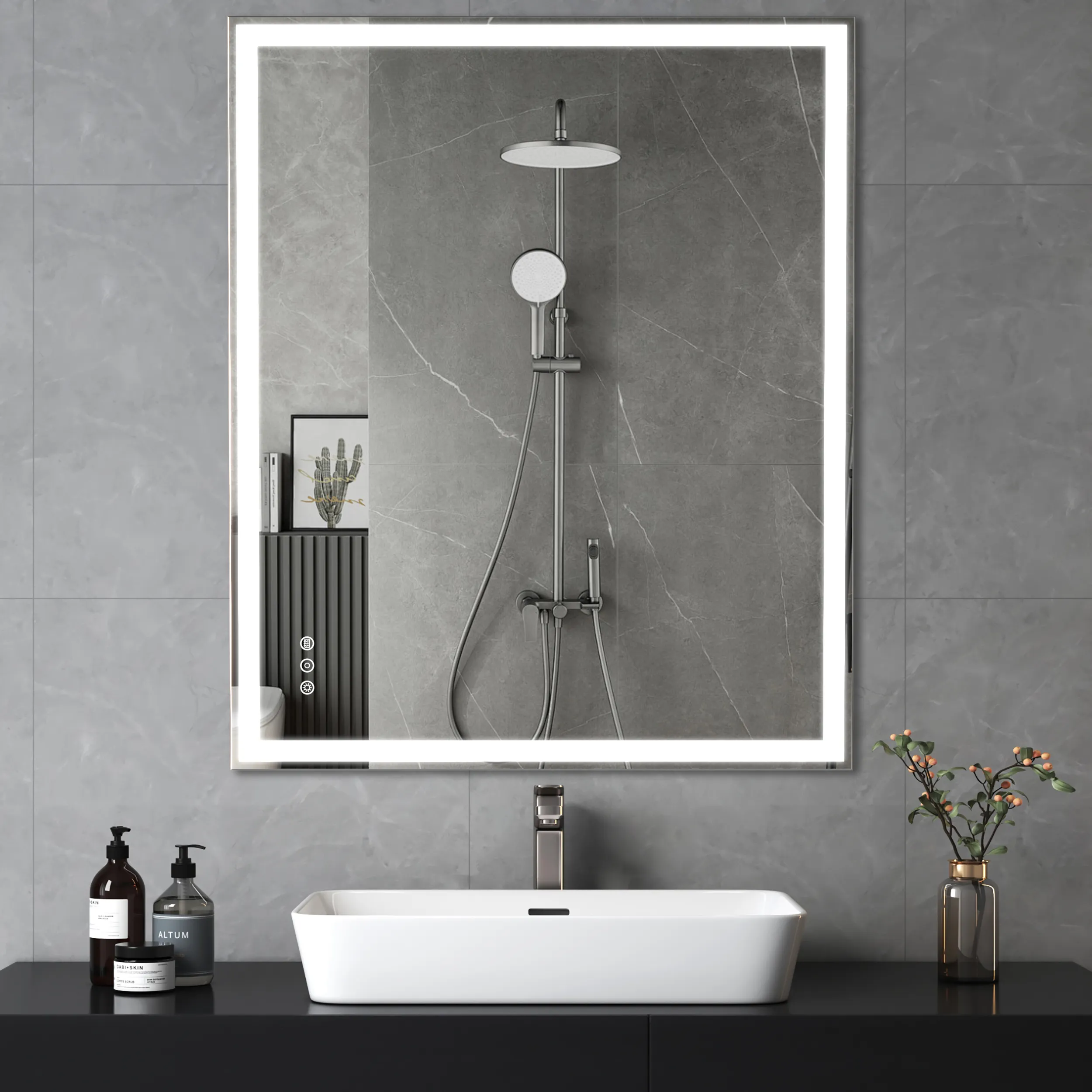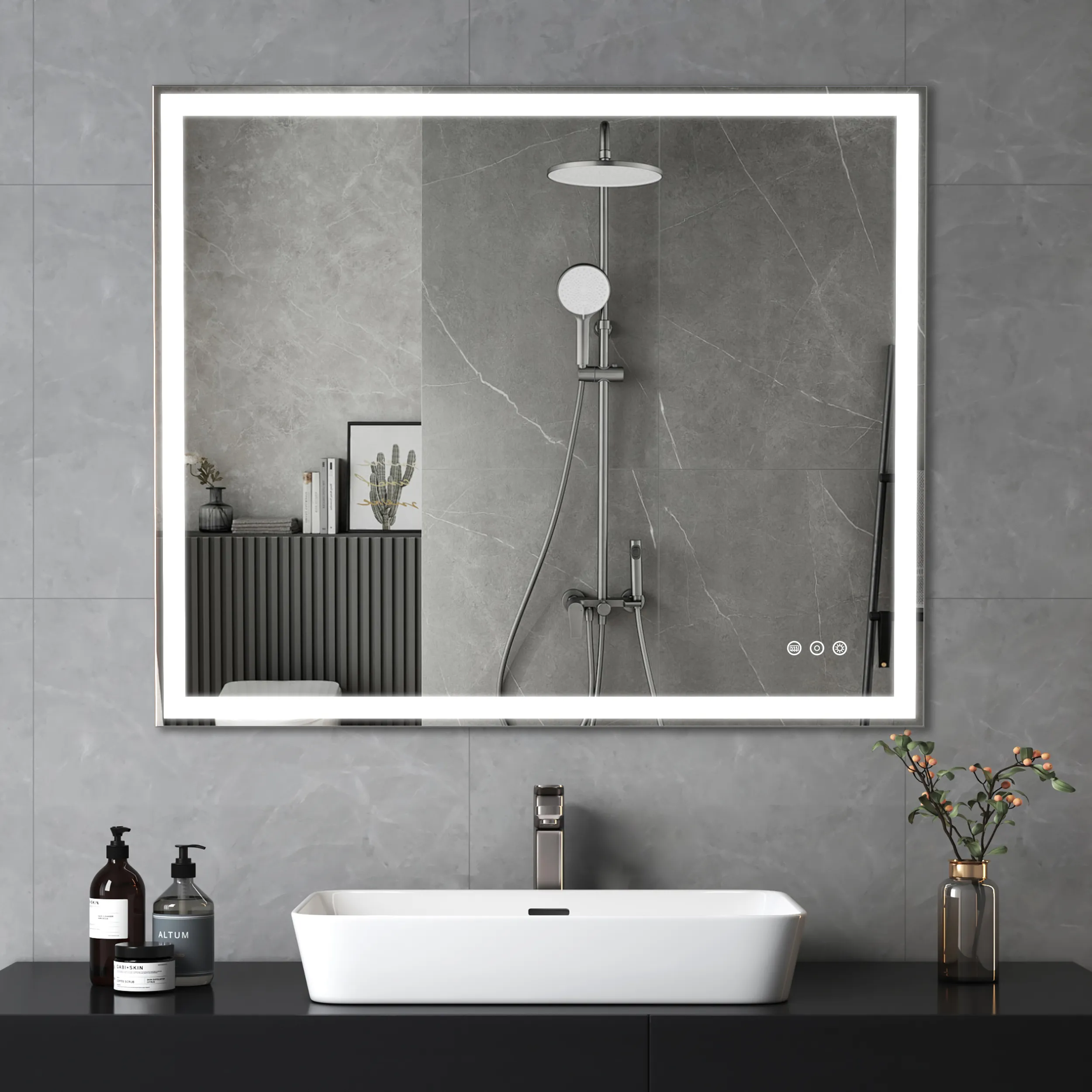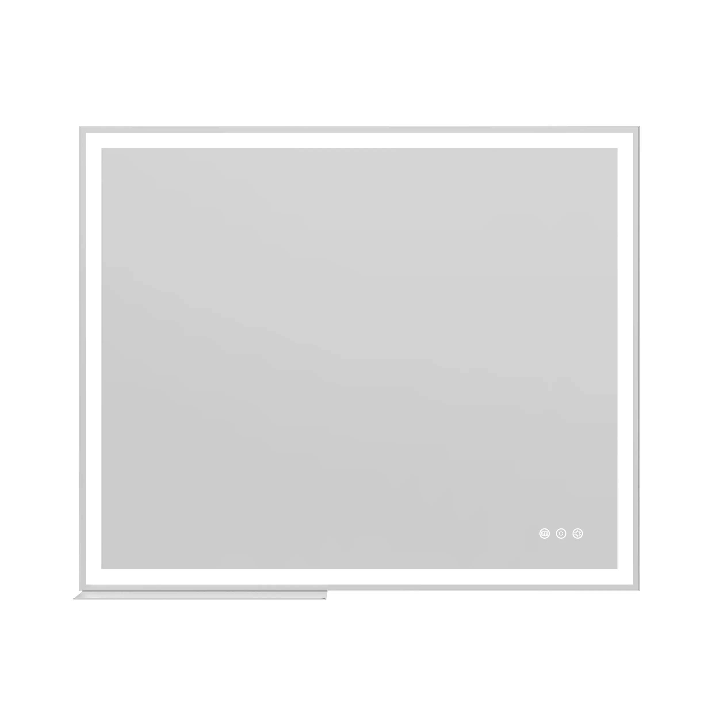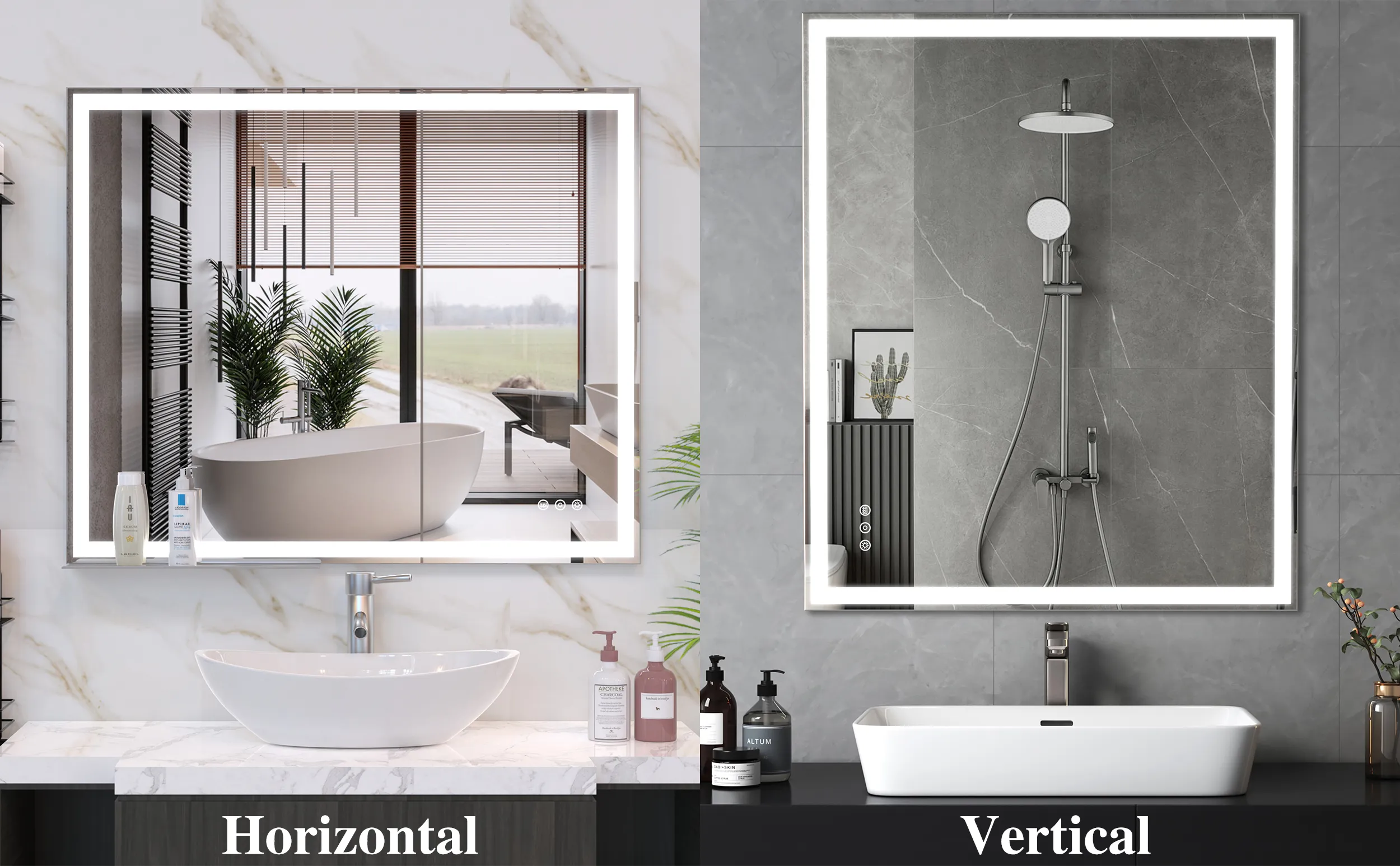 Innovative Design: Rectangular LED mirror with hidden light strip and built-in tray for extra storage, combining beauty and functionality. Waterproof and Durable: IP44 waterproof rating and five-layer protection ensure safety and durability, with a leak-proof LED strip for added security. Smart Touch Controls: Features three buttons for power, brightness adjustment, and anti-fog function, allowing easy control with a simple touch. Anti-Fog Function: Independently controlled anti-fog feature prevents frequent wiping and ensures a clear reflection, enhancing convenience. Flexible Installation: Can be powered by direct plug-in or hardwired, and installed horizontally or vertically to fit your bathroom layout. Aluminum Frame: Silver aluminum frame provides corrosion and rust resistance, offering additional protection for the mirror.