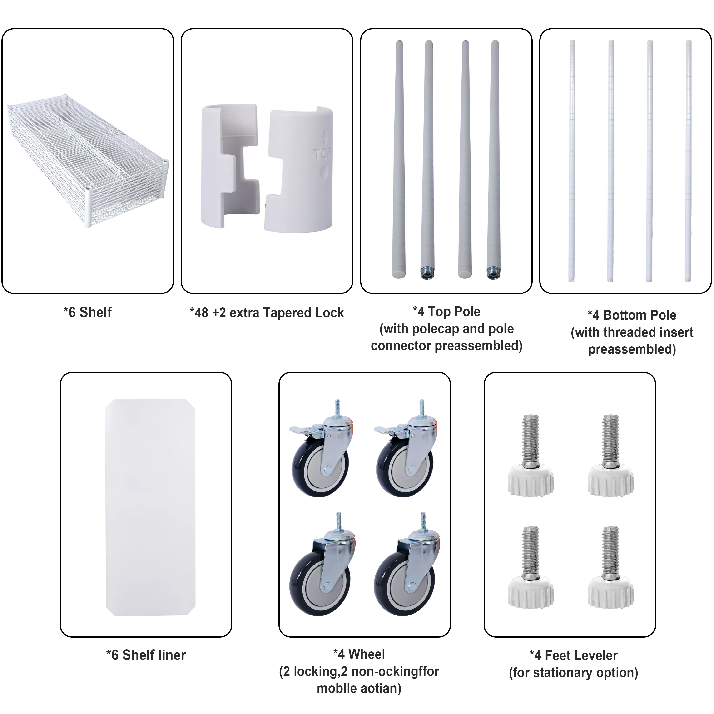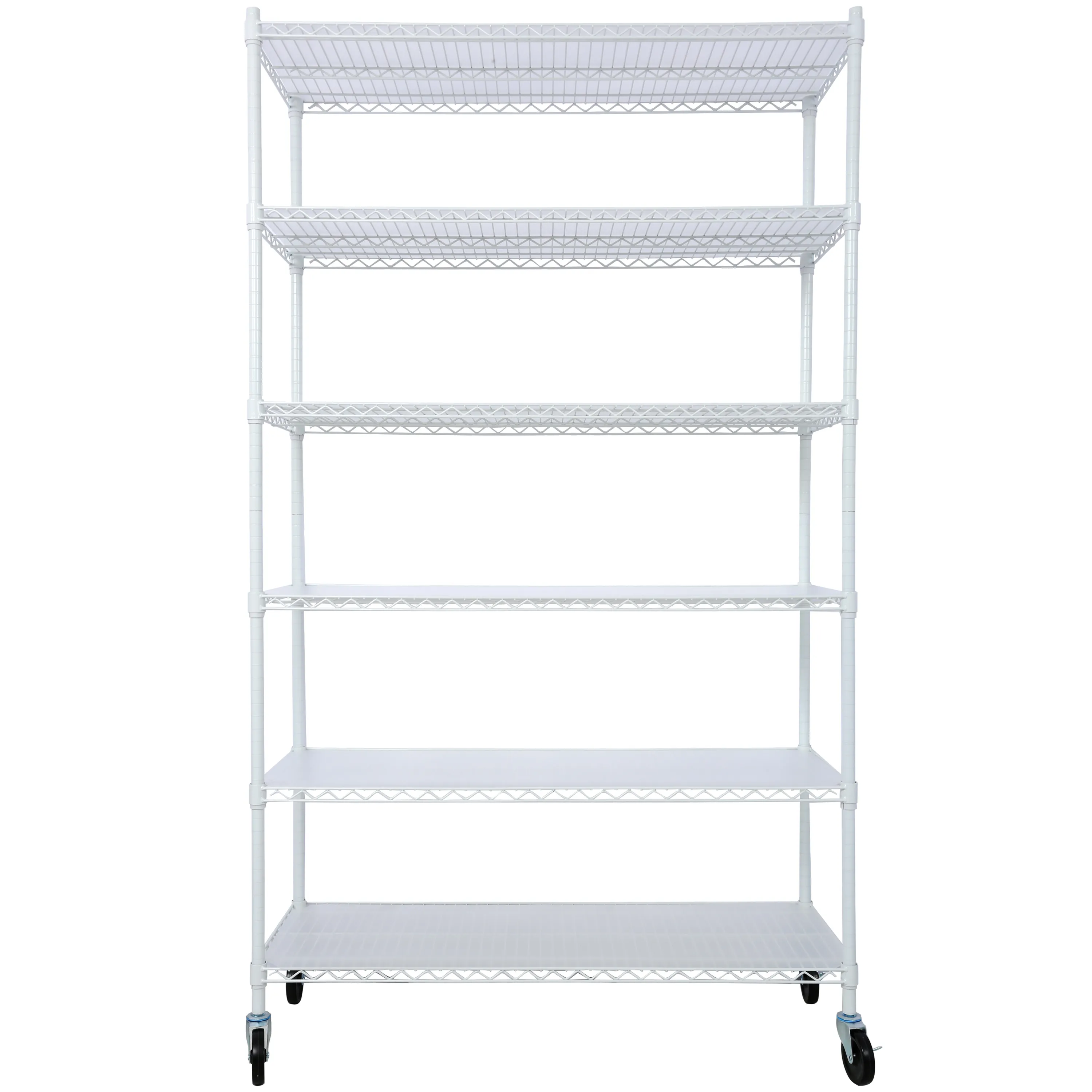 20" 6 Tier 6000Lbs Capacity Nsf Metal Shelf Wire Shelving Unit, Heavy Duty Adjustable Storage Rack With Wheels & Shelf Liners For Commercial Grade Utility Steel Storage Rack - White