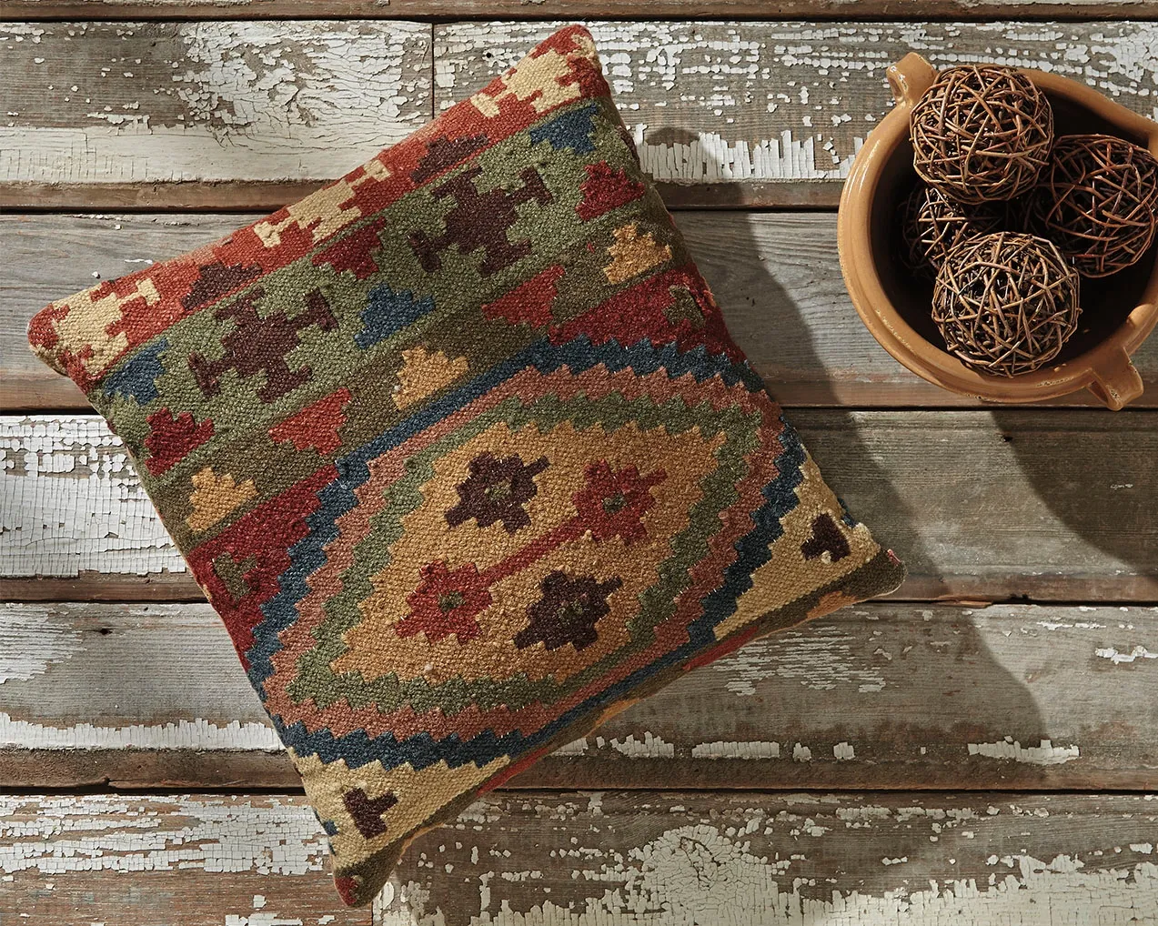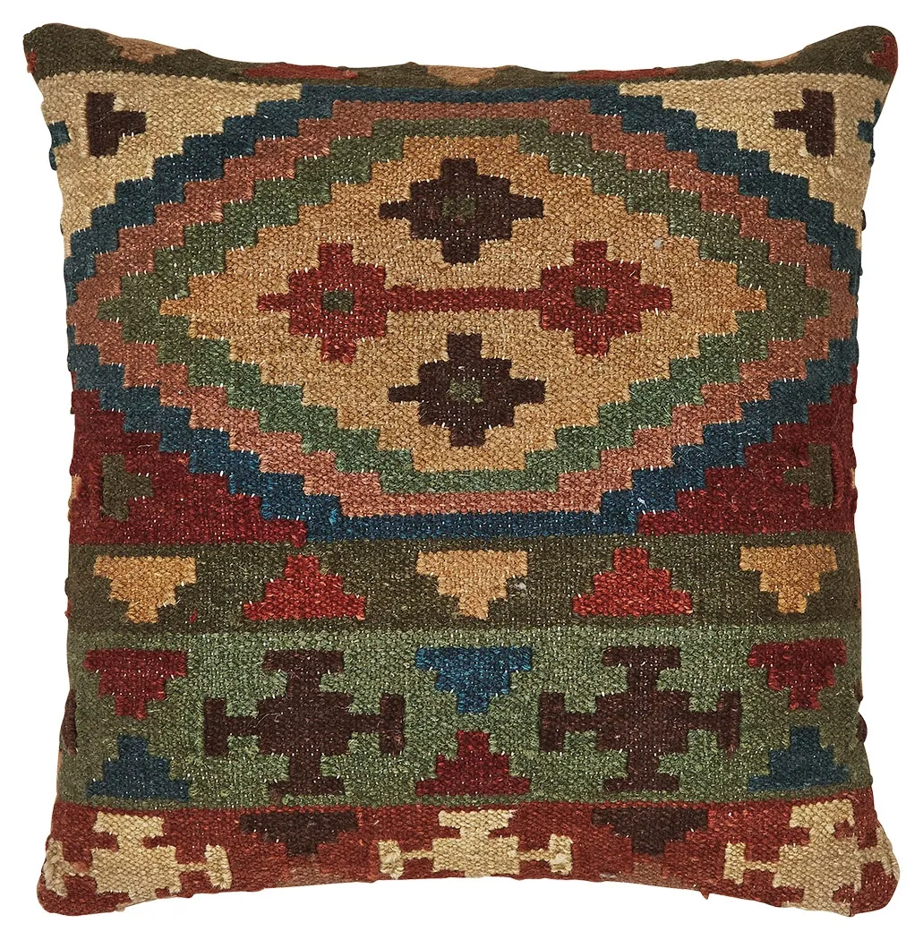 Kick back in boho beautiful style. With its patchwork kilim pattern and rich earth and jewel tones, this pillow invigorates your space with world beat flair.