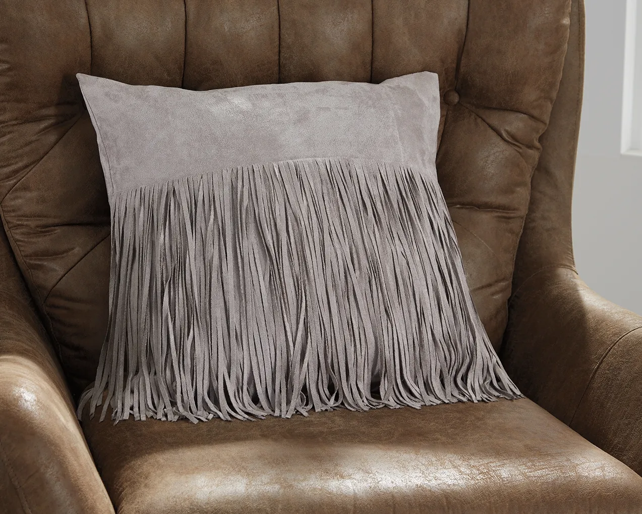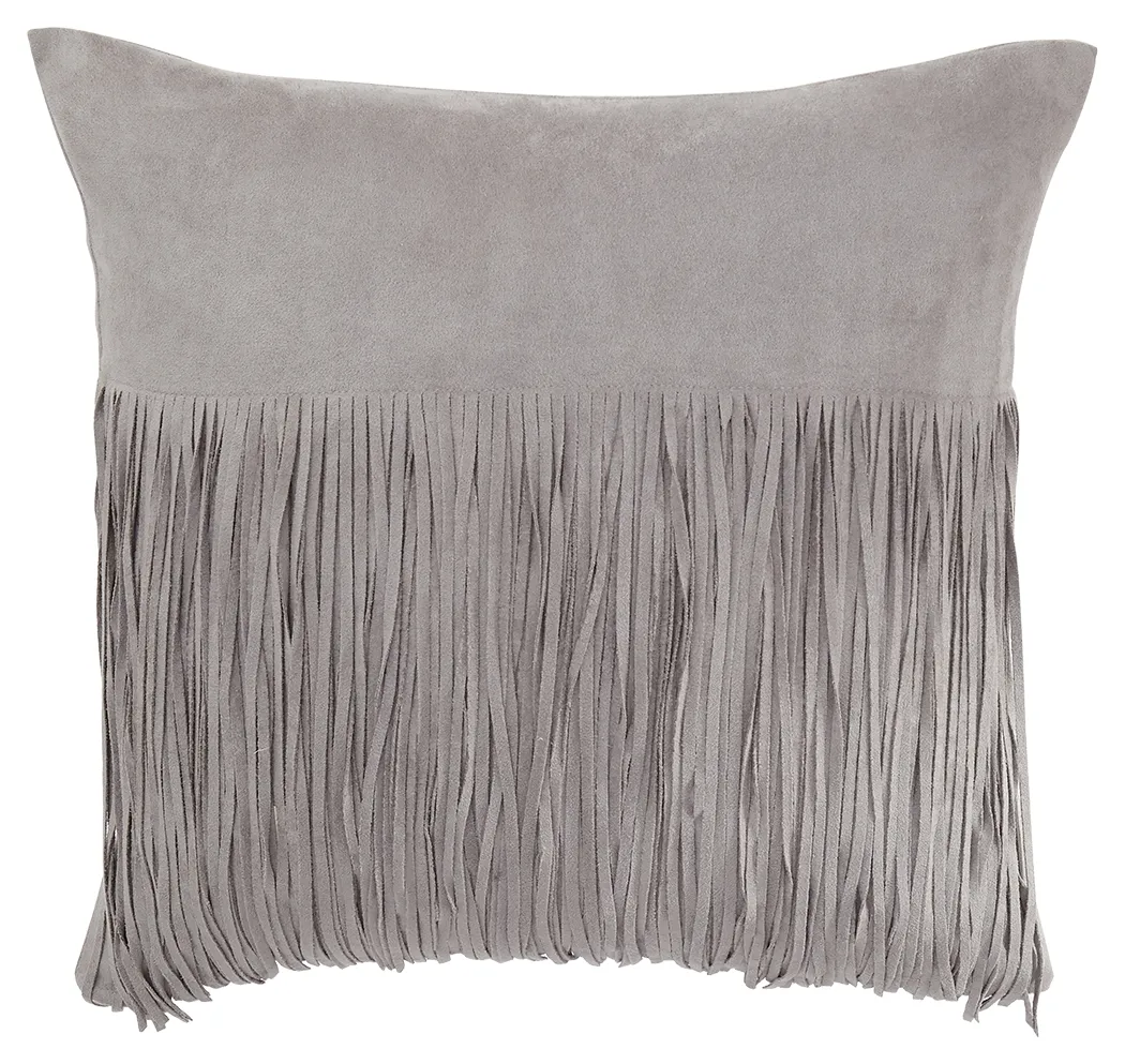 Get swanky with this pillow's fun fringe and gray suede. Feather fill is both ultra cool and ultra firm for a cohesive finish.