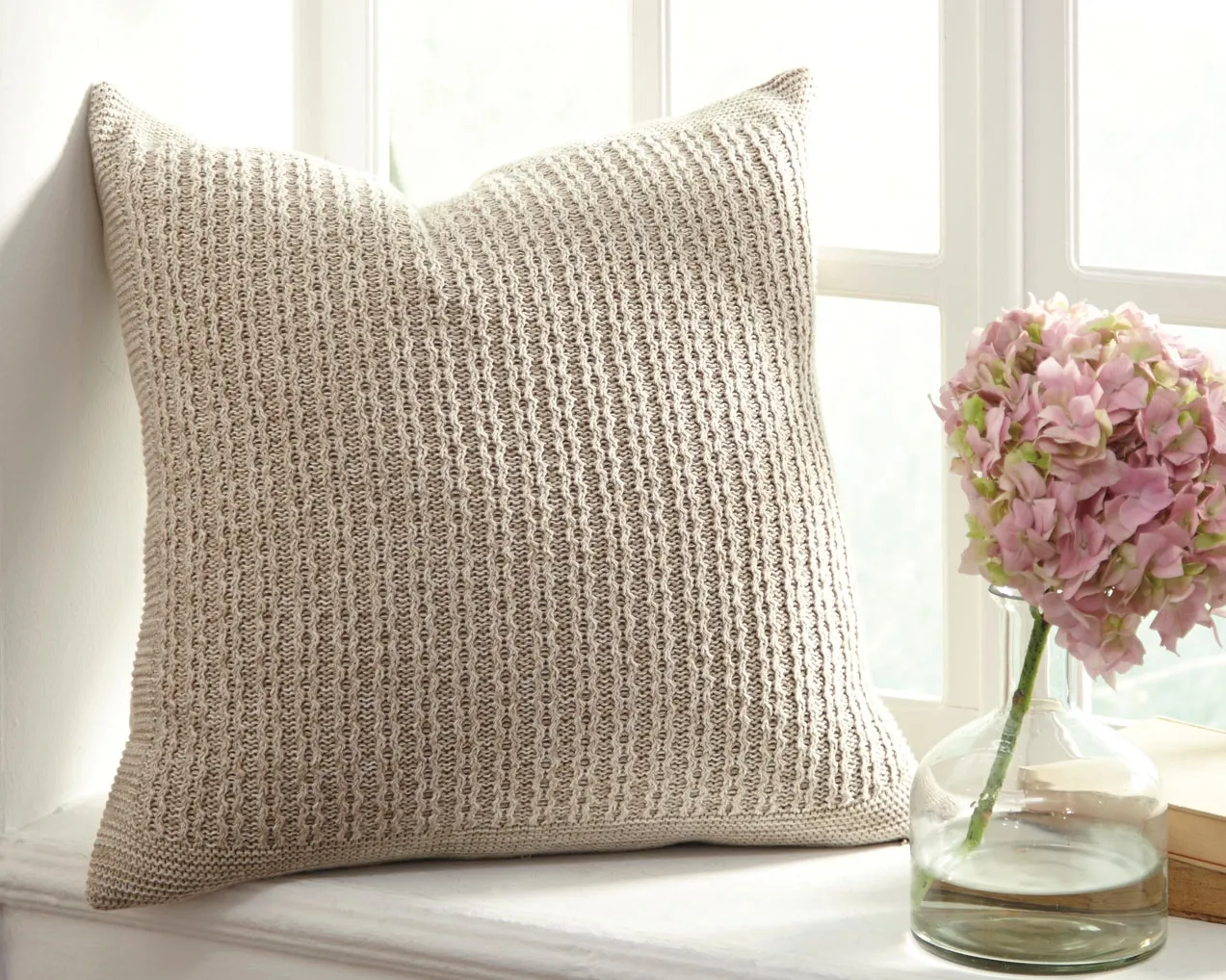 Sporting a cable knit in a relaxed stone-washed hue, this pillow cover captures the art of ease. Prominent banding ties the look together beautifully.