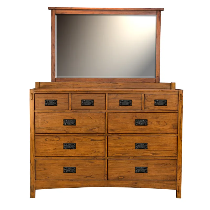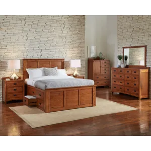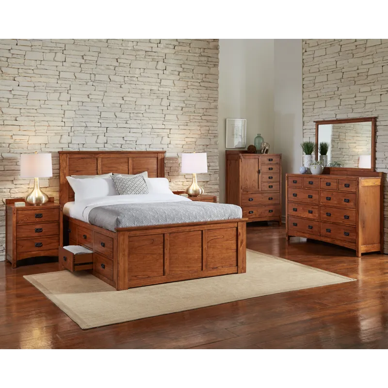 Mission Hill Queen Captain Bedroom Set includes be, dresser, & mirror.