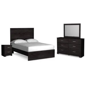 With its clean-lined look and modern attitude, this bedroom package is a fresh style awakening. A warm charcoal hue over replicated oak grain easily complements other furniture finishes. Smooth drawer fronts with antiqued pewter-tone handles complete the aesthetic.