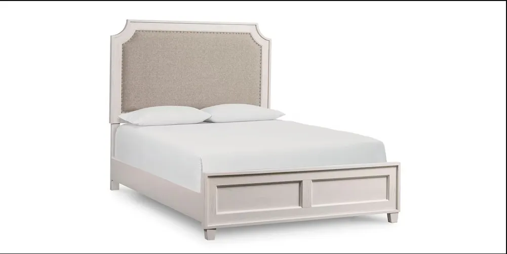 This Ventura Upholstered Bed is beautifully scaled for almost any size bedroom. Styled with trend-right nail head trim. Available in two finishes: Chalk Slate and Shell White. Find more design options available in-store.