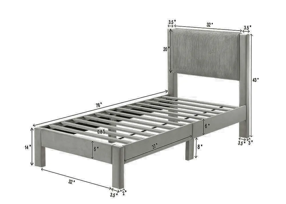 Lucia Twin Platform Bed Light Grey