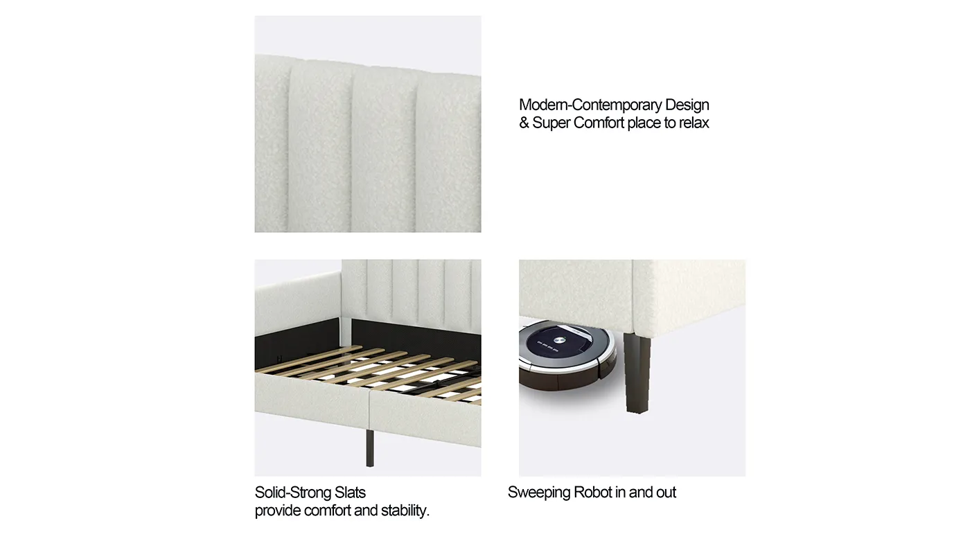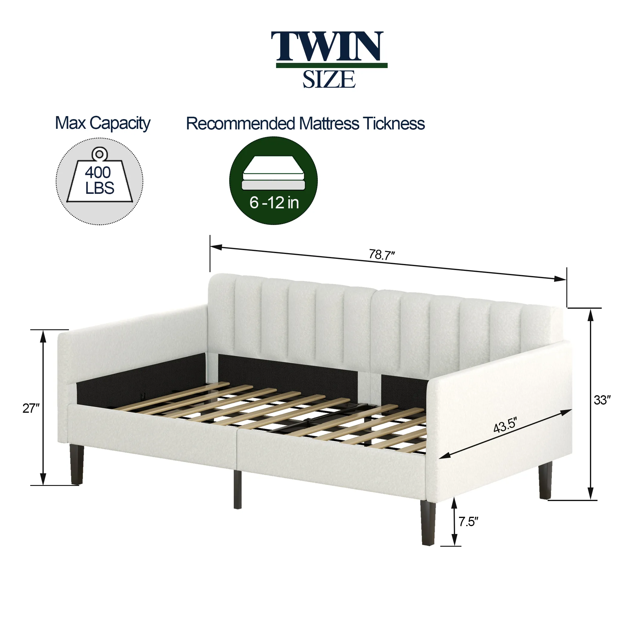 Elena - Twin Boucle Upholstered Daybed, Ribbed Tufted Backrest - Ivory