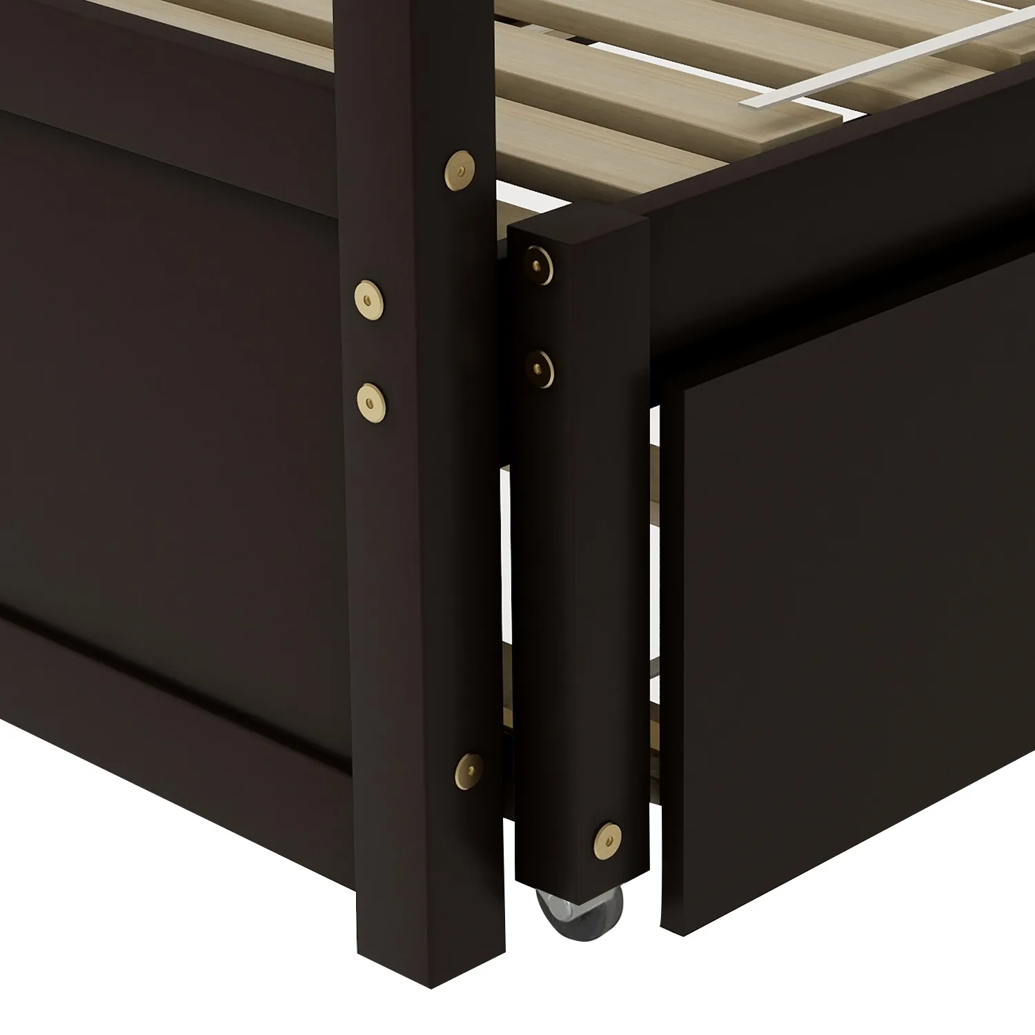Extending Daybed With Trundle, Wooden Daybed With Trundle - Espresso
