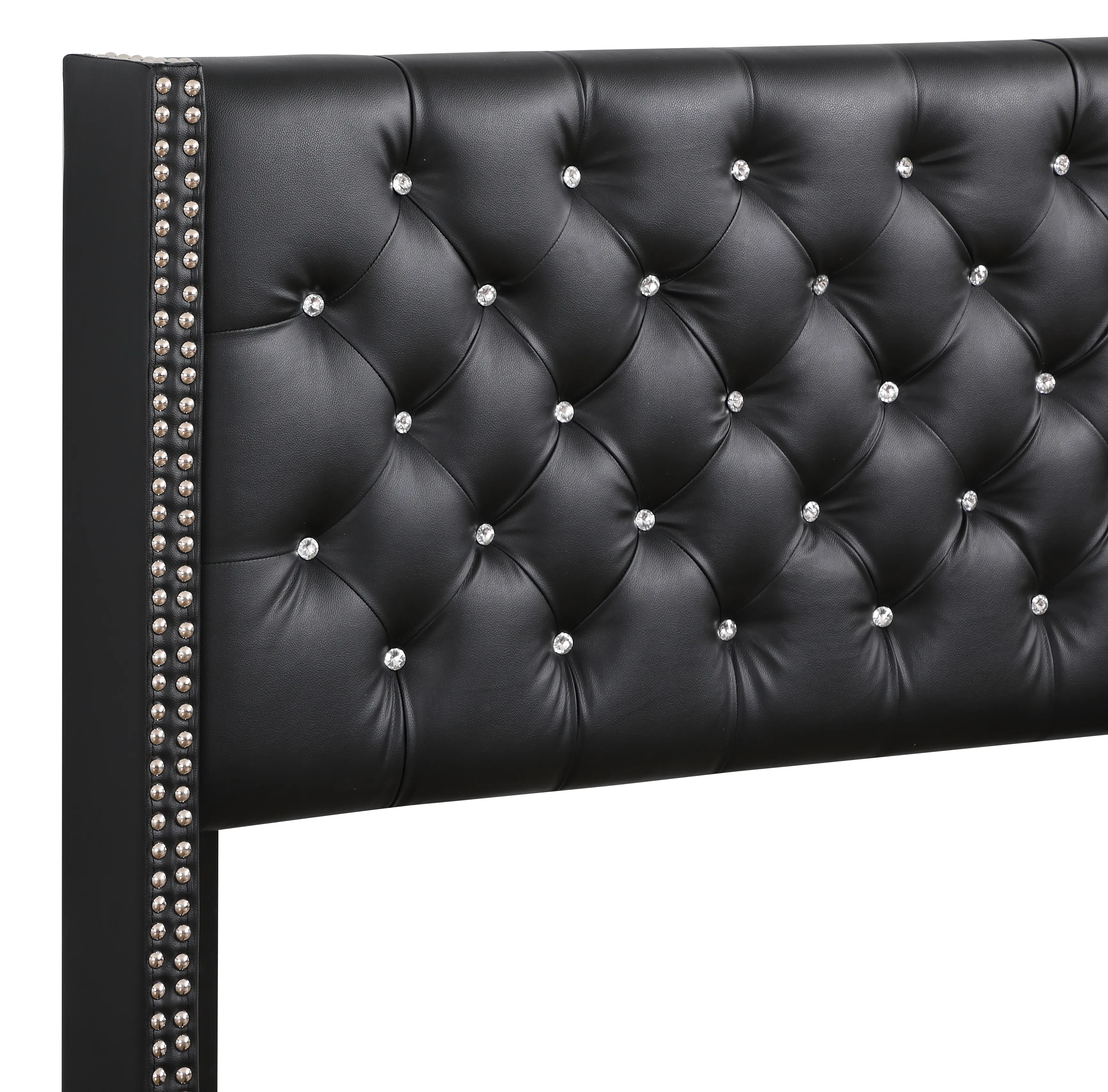 • Deep Tufting and Nailhead Trim: Upholstered bed features deep tufting and hand-applied nailhead trim for a luxurious look.