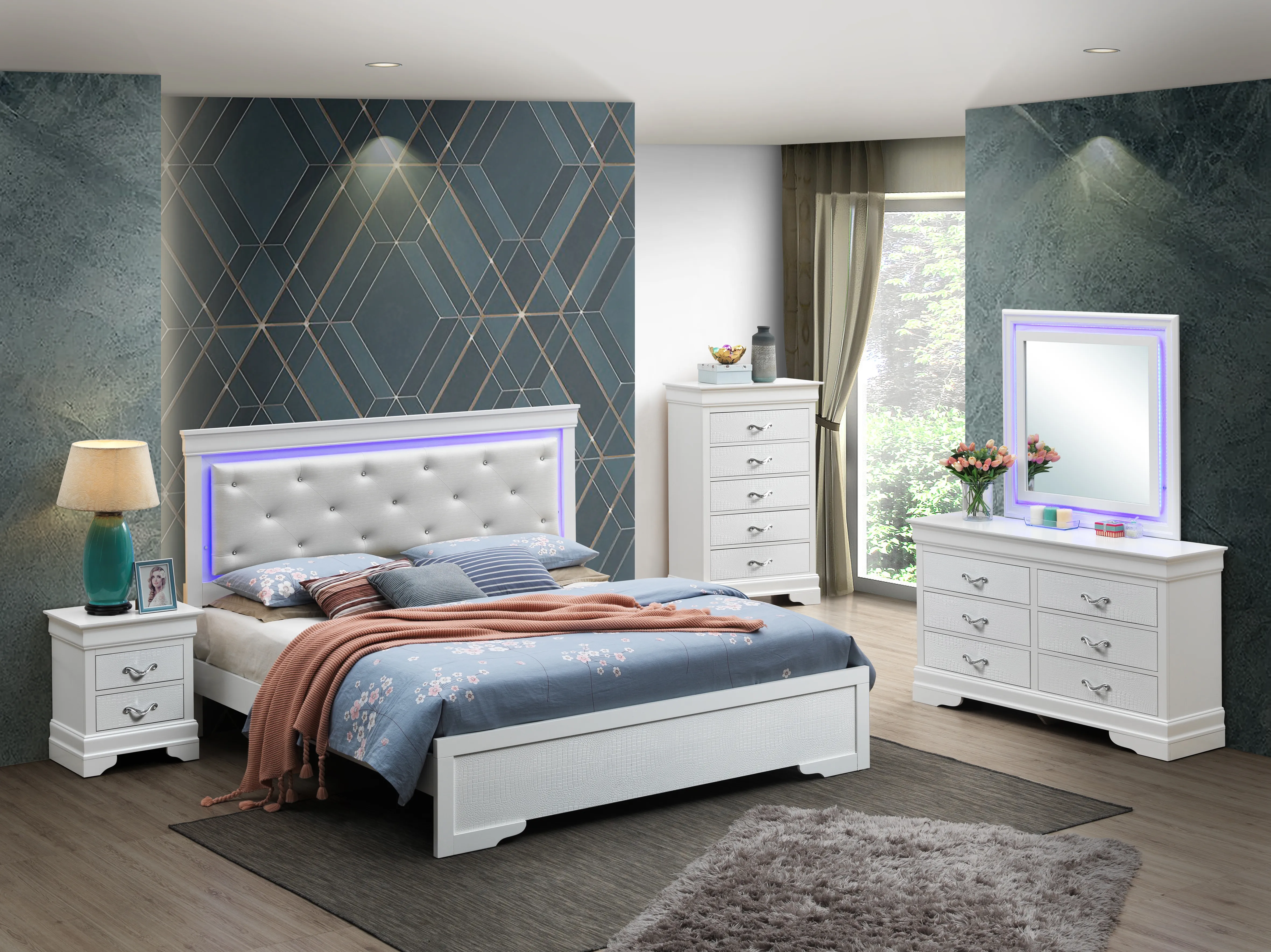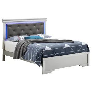 • LED Light Accents: Headboard features LED light accents for a modern touch.