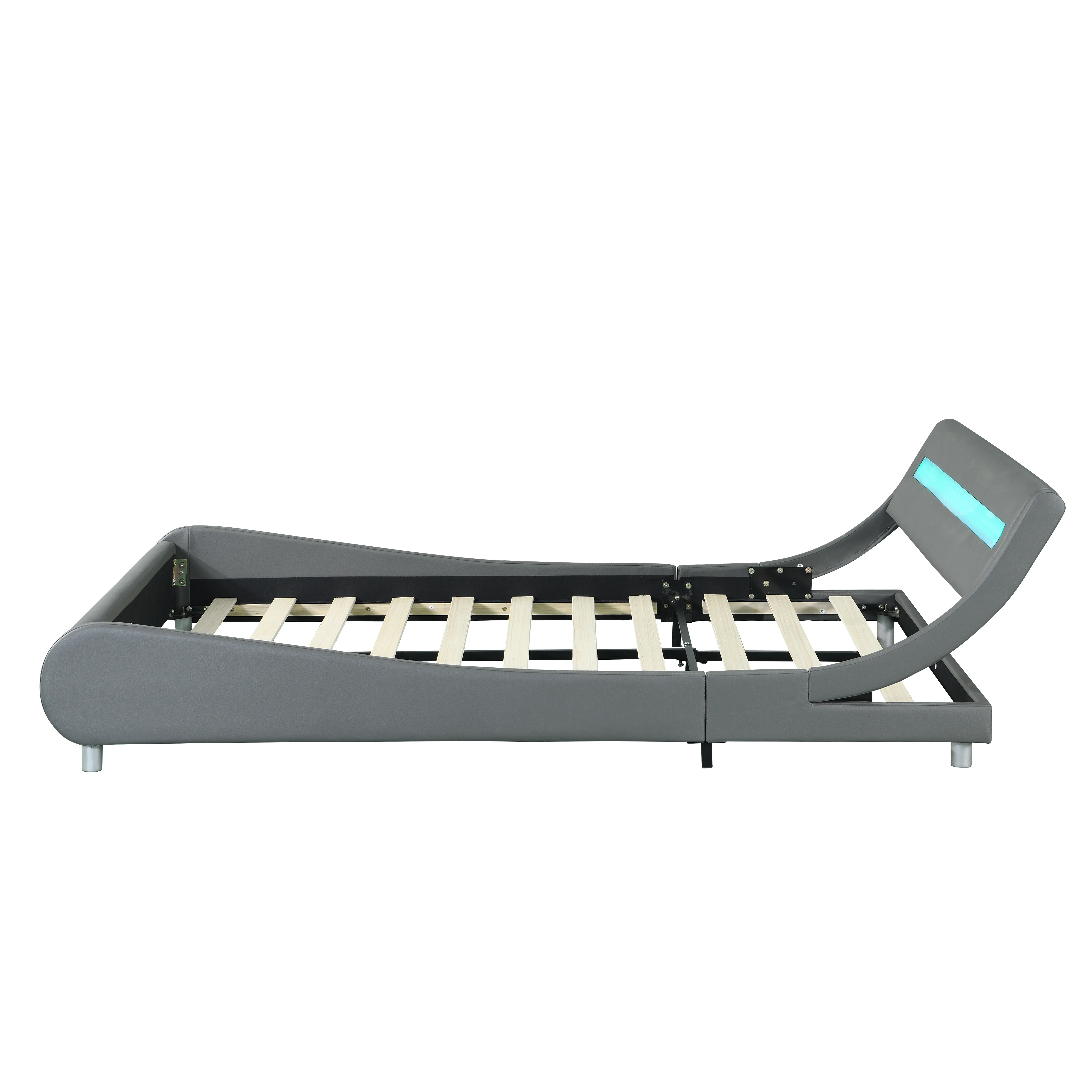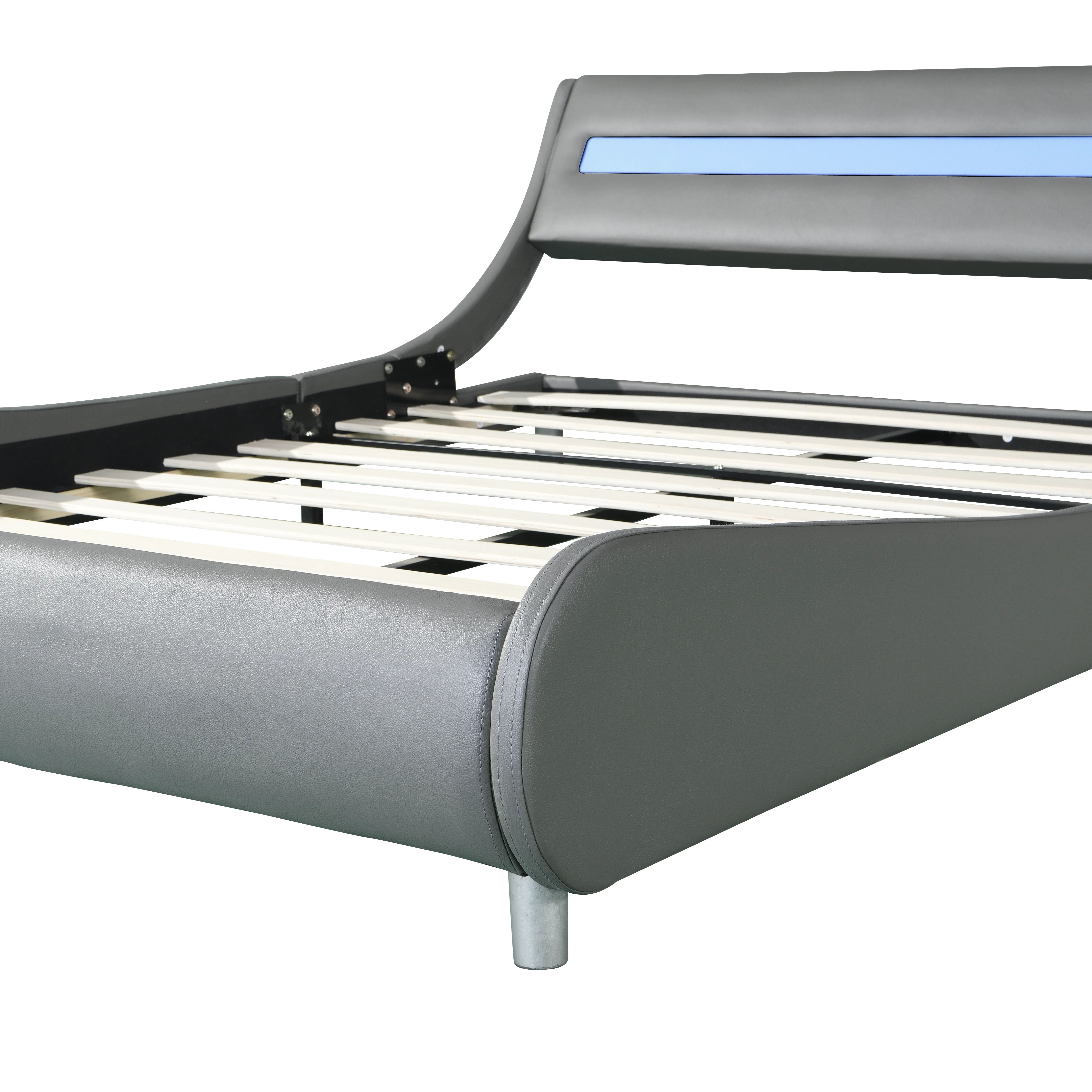 Queen Size Upholstered Platform Bed Frame With LED Lighting, Curve Design, Wood Slat Support, No Box Spring Needed - Gray