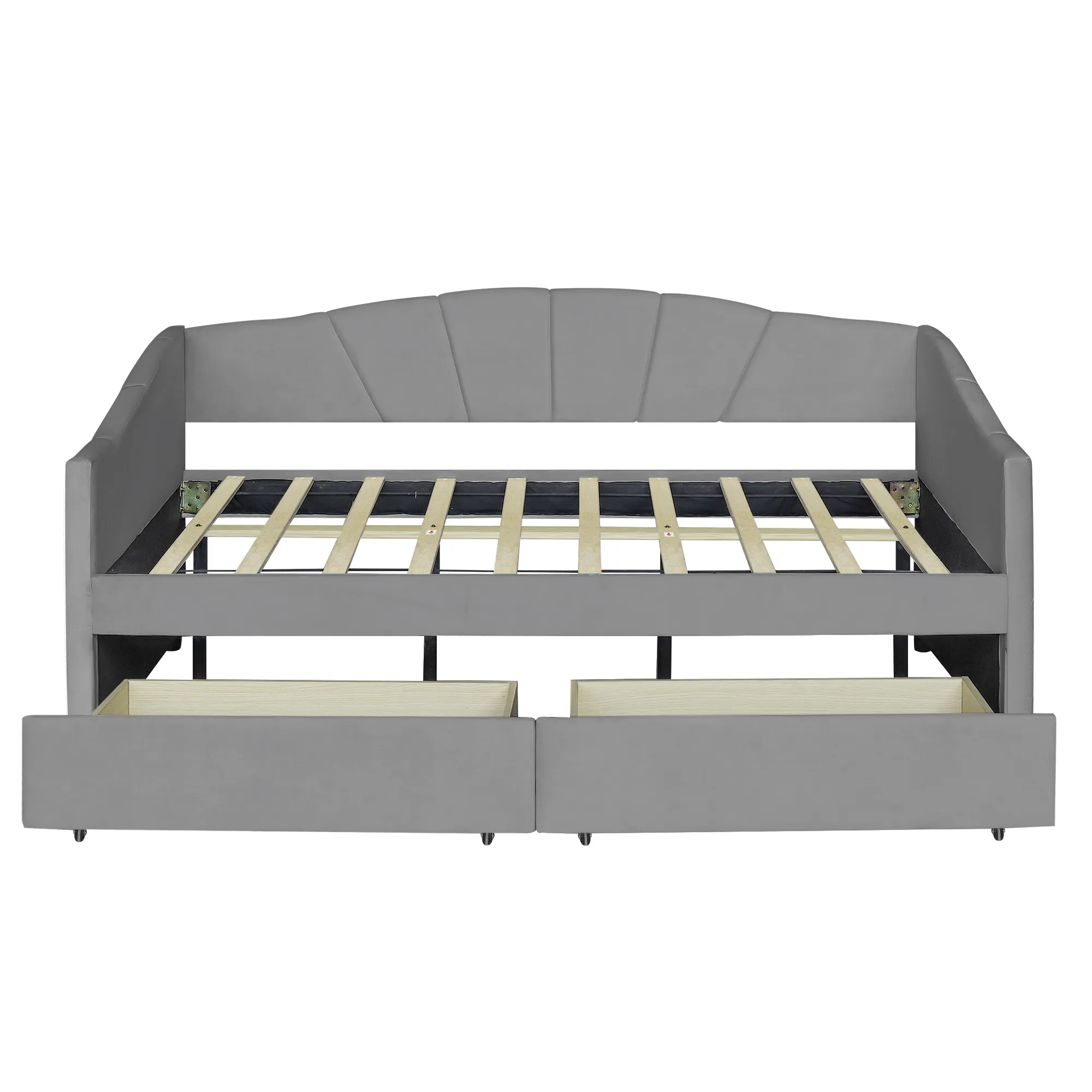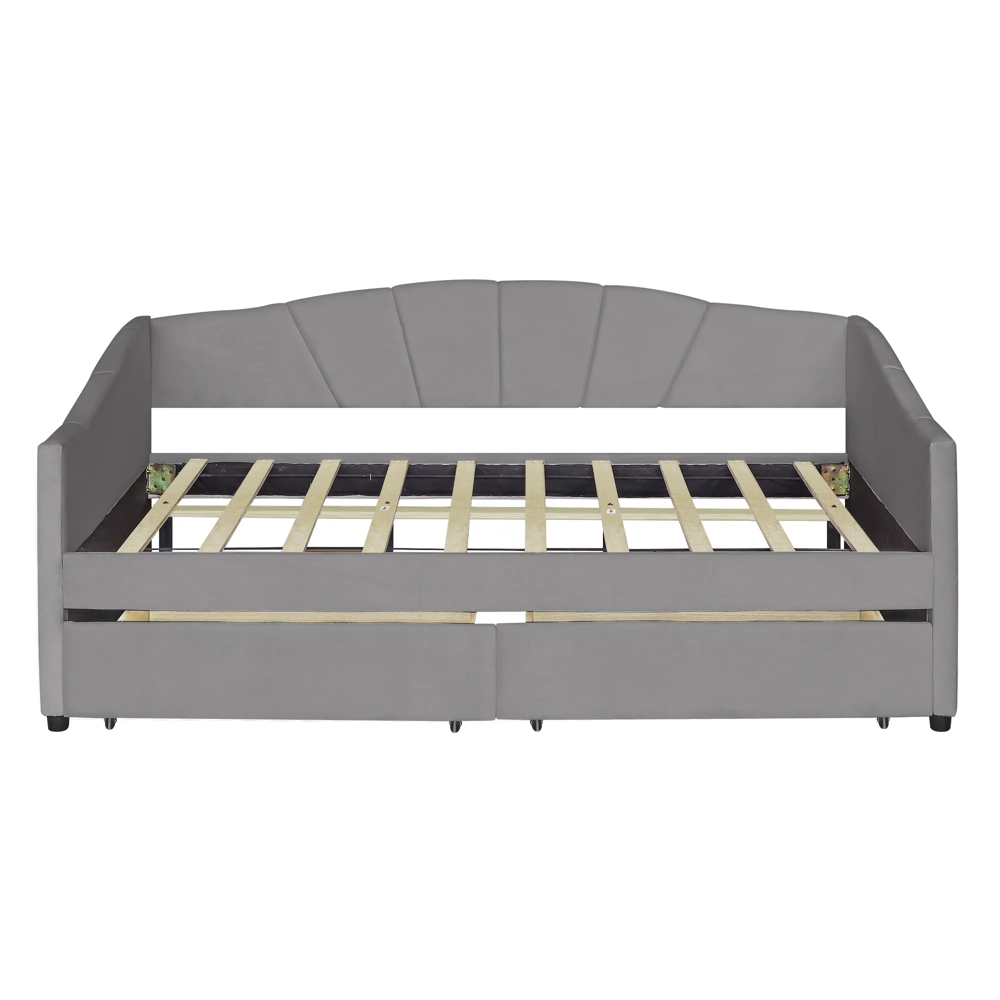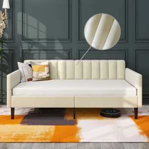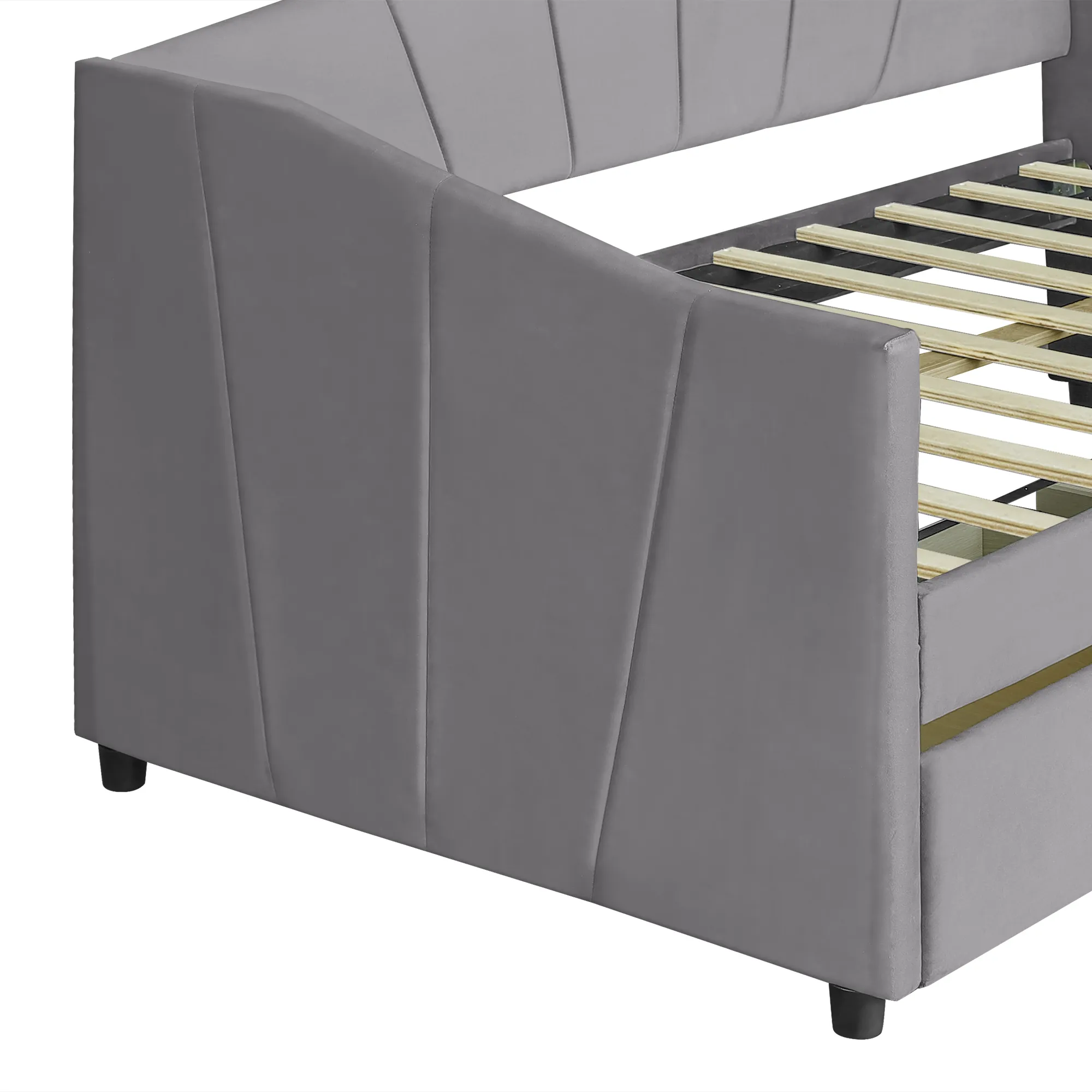No Box Spring needed :This daybed frame comes with sturdy wooden slats. Mattress is not included. A comfy velvet fabric backrest and two armrests that bring you and your family a cozy feeling.