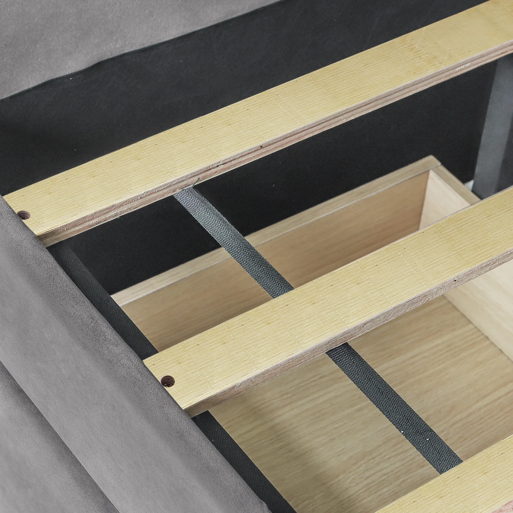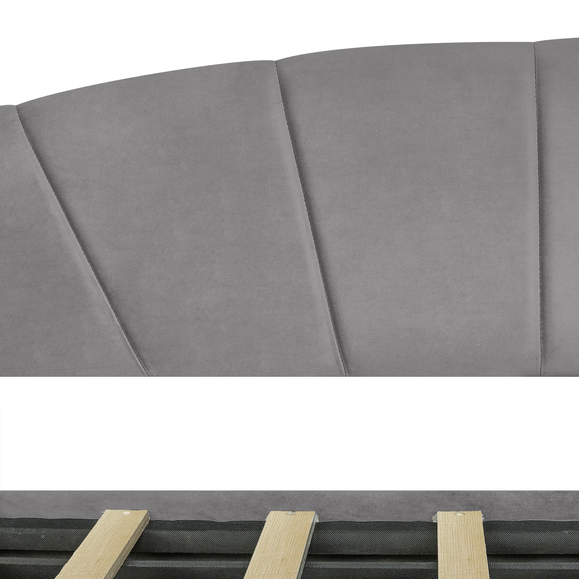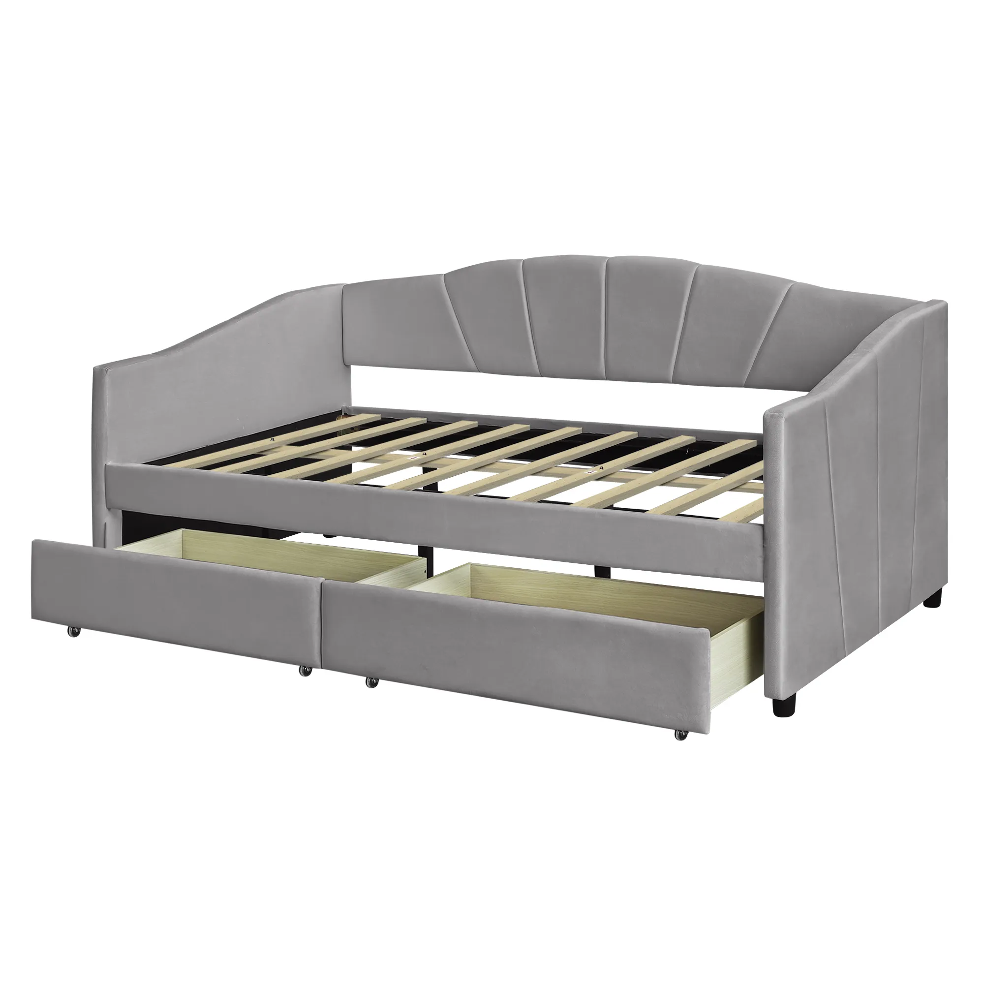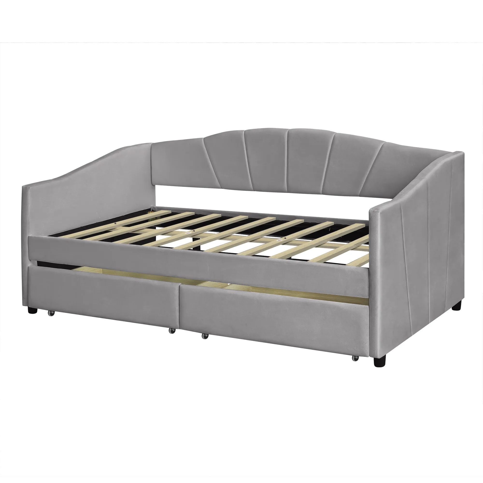 No Box Spring needed :This daybed frame comes with sturdy wooden slats. Mattress is not included. A comfy velvet fabric backrest and two armrests that bring you and your family a cozy feeling.