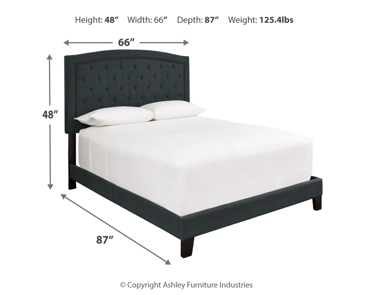 Appreciate the sleek styling and sumptuous comfort of this upholstered bed. Wrapped in a luxurious polyester weave from head to toe, and adorned with elegant button tufting and framed details, this queen platform bed sets the scene in your blissful retreat. Rest assured, sturdy roll slats eliminate the need for a foundation/box spring for a well-edited aesthetic.