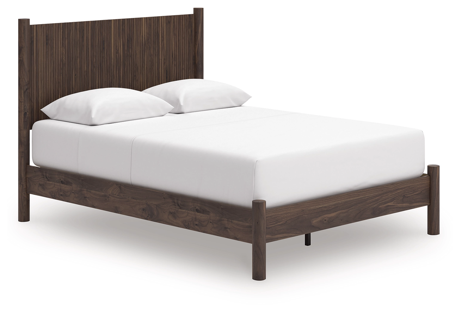 Includes panel headboard, platform footboard with rails and roll slats