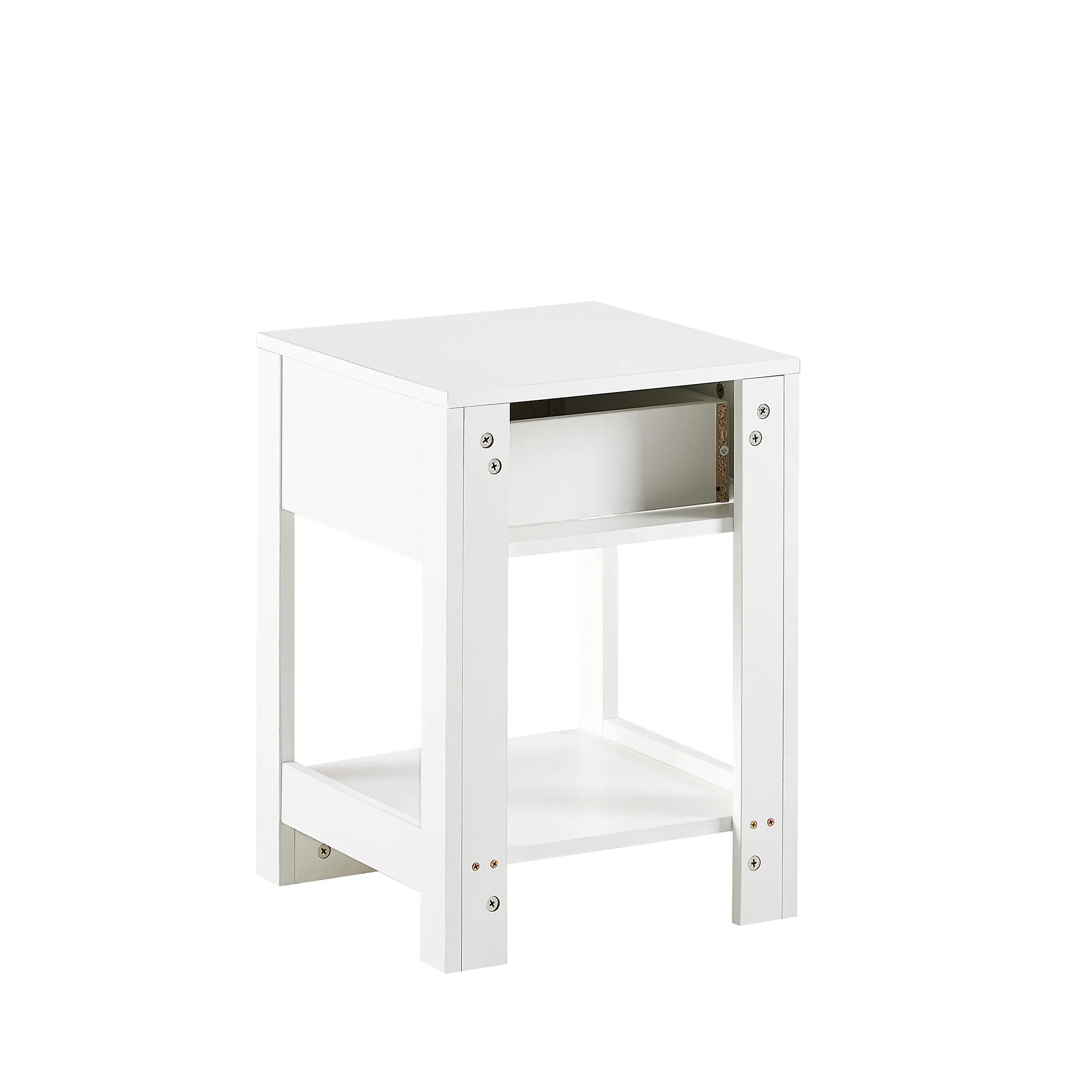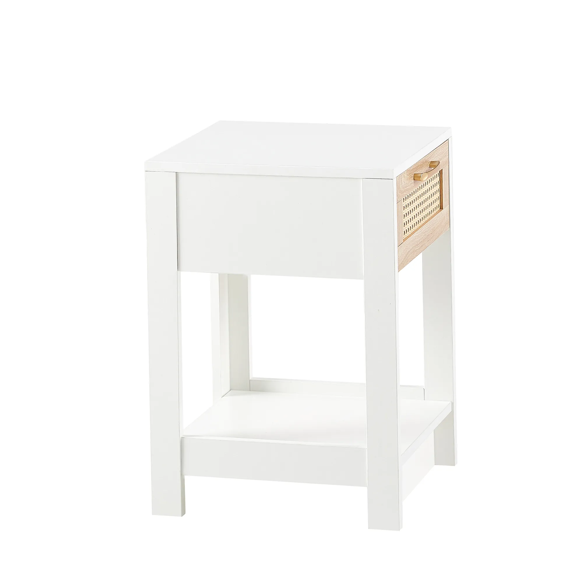 15.75" Rattan End Table With Drawer, Modern Nightstand, Side Table For Living Room, Bedroom - White