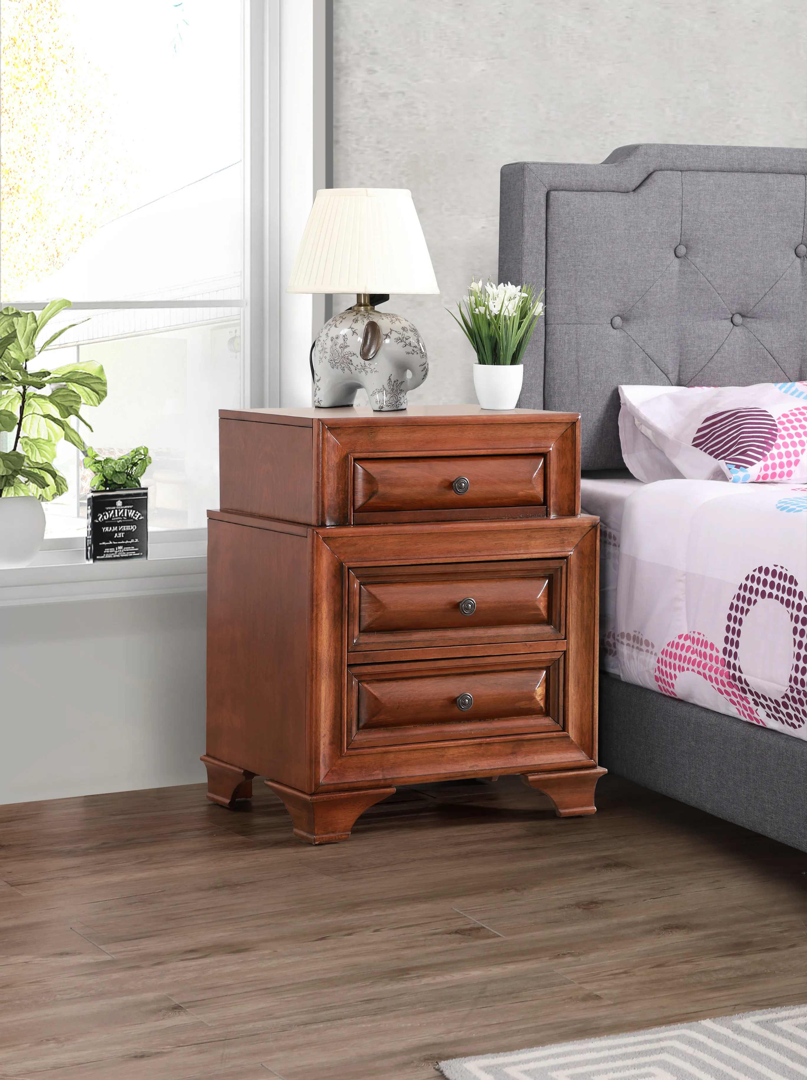 • Deep Stain Finish: Deep stain finish adds depth and richness to the nightstand.