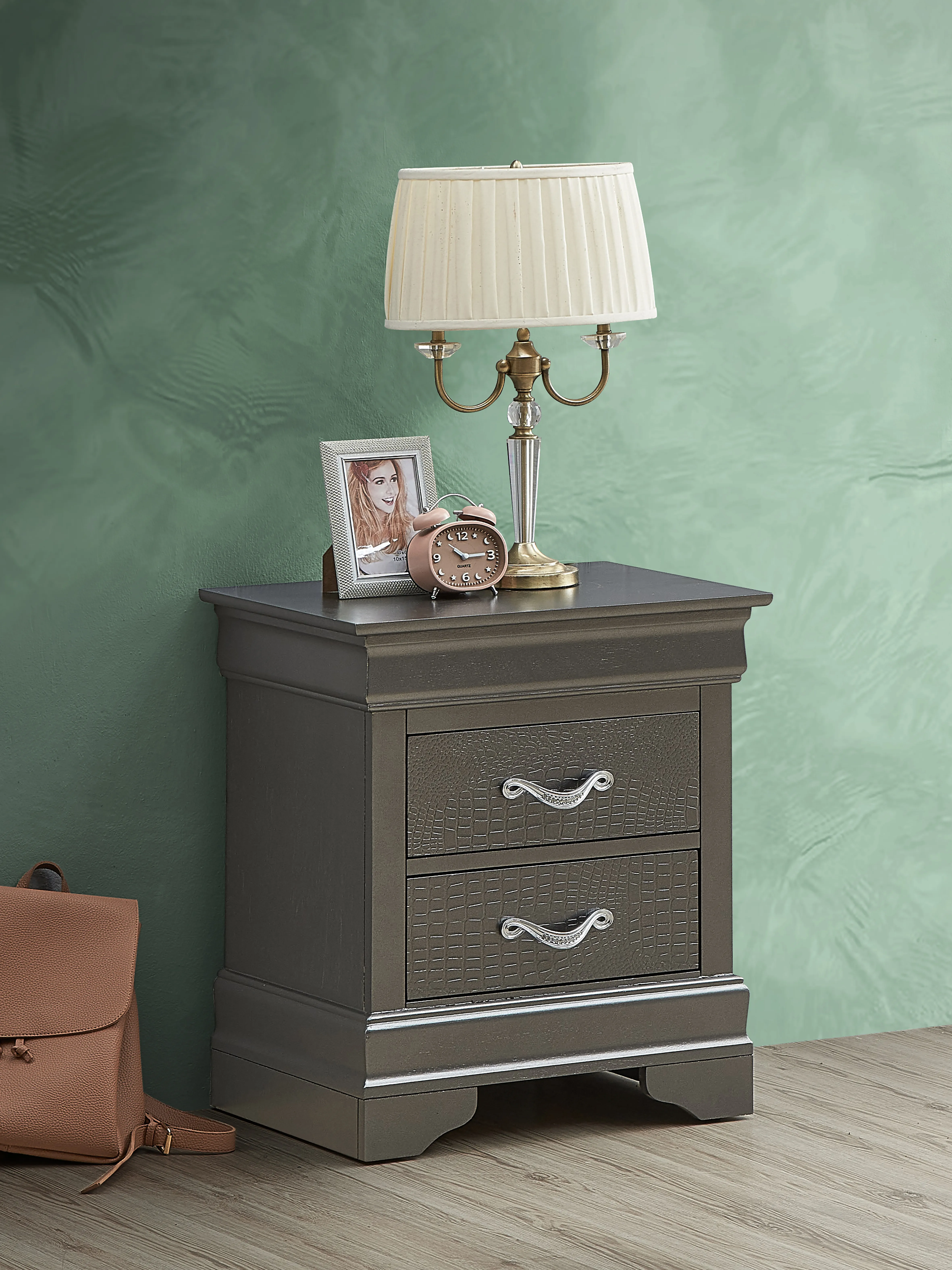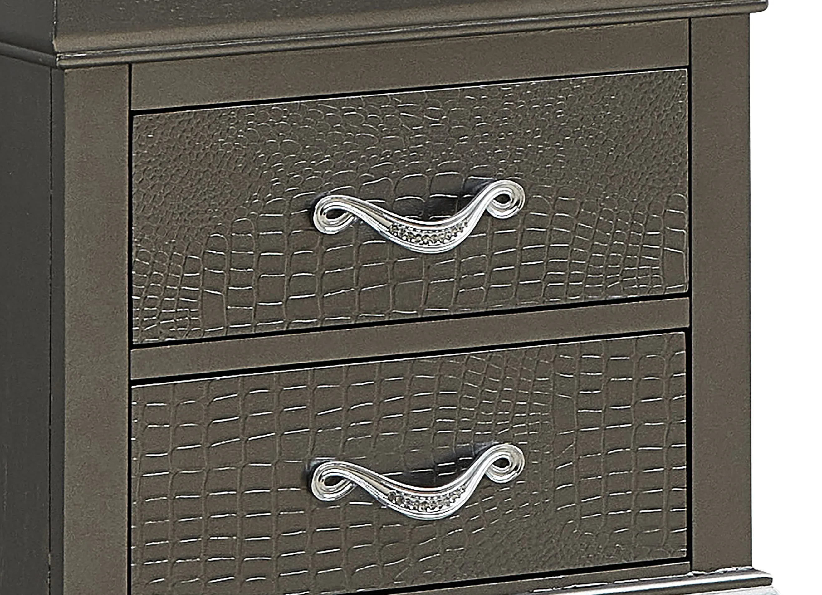 • Textured Finish for Depth: Embossed drawer fronts add texture and style to the nightstand.