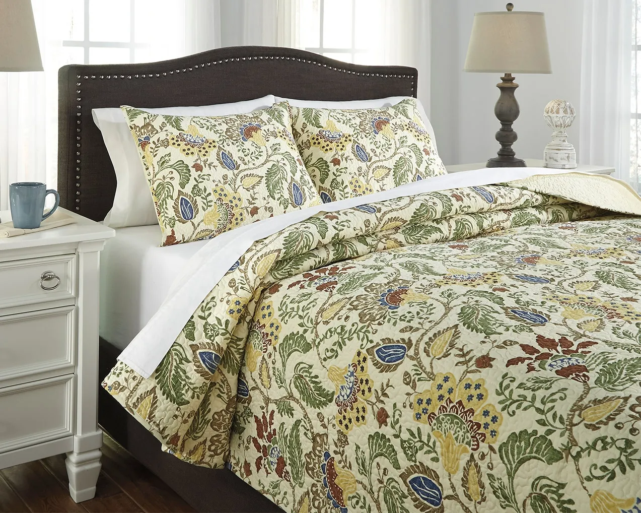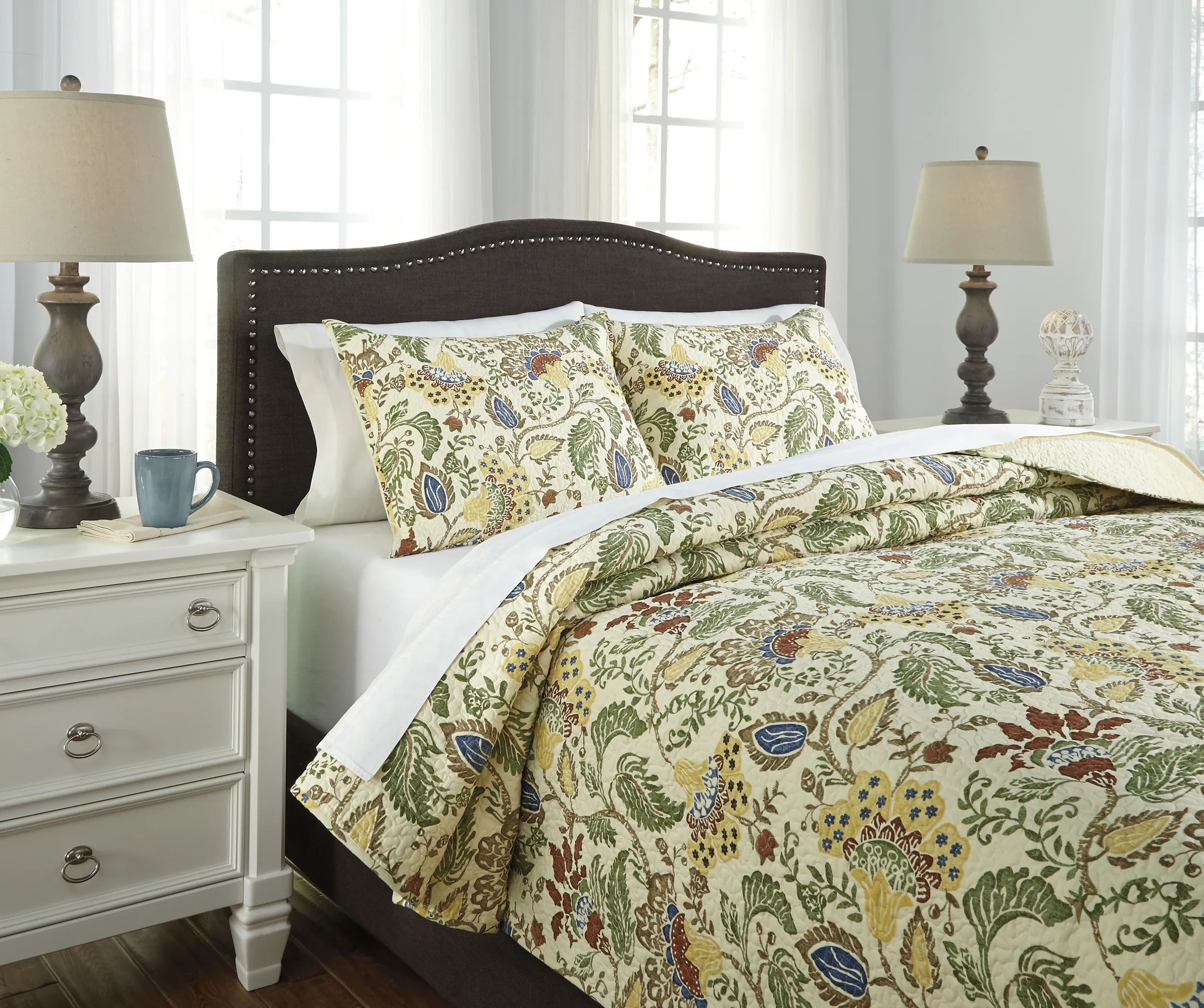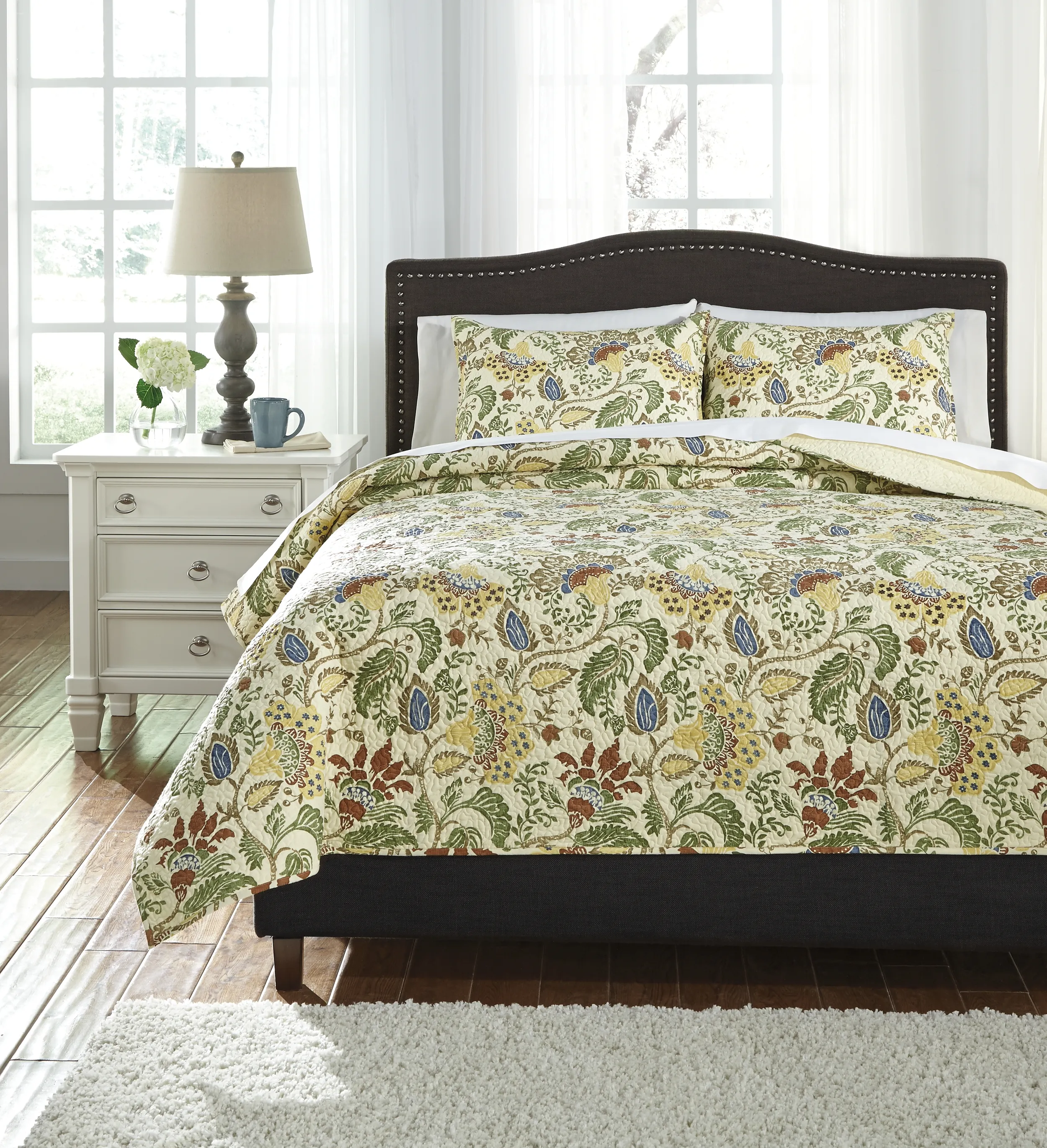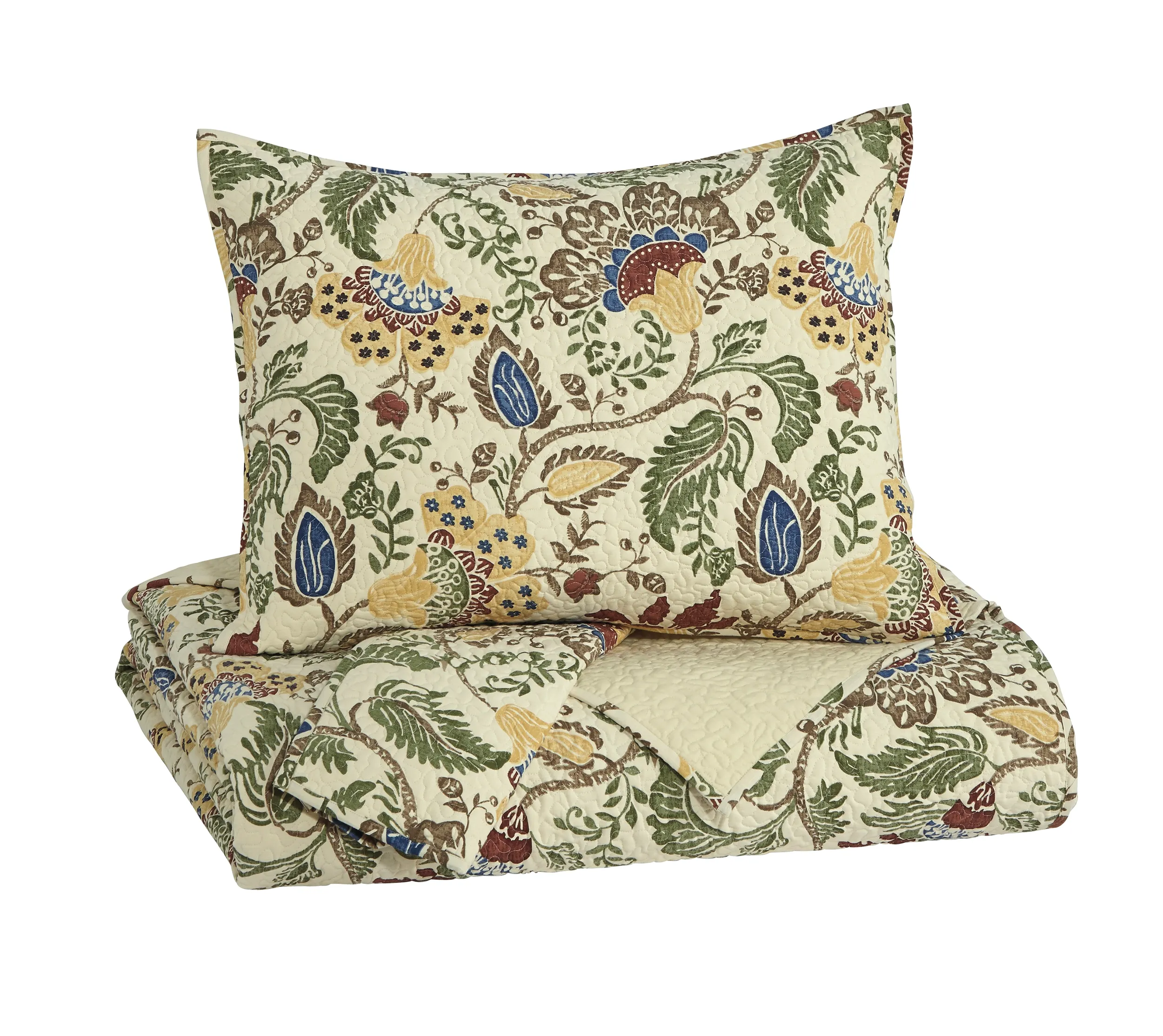 Spring into style with this coveted coverlet set. Alive with color and enhanced with hand-guided quilting, its Jacobean floral fabric is a breath of fresh air.