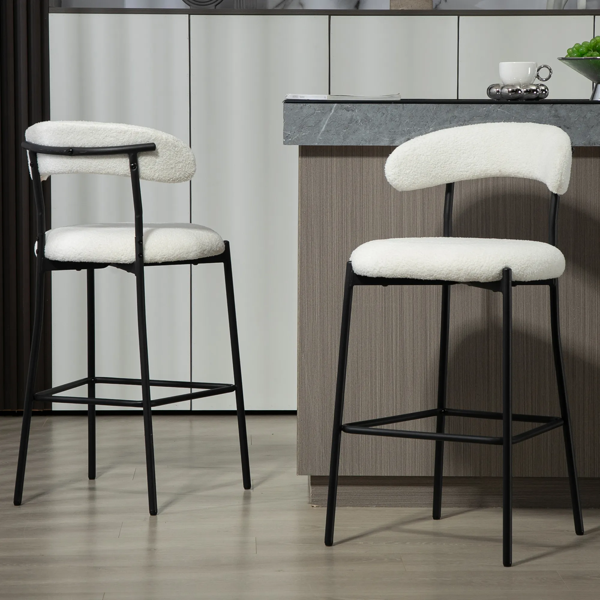 Counter Height Bar Stools Teddy Fabric Cover Kitchen Island Counter Bar Stool With Black Powder Coating Base And Footrest - Snow