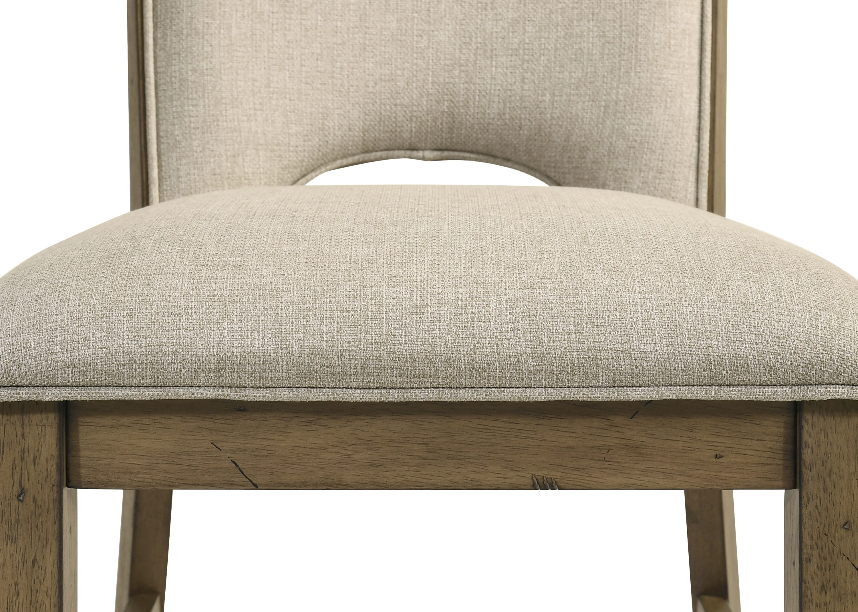 Warm and inviting, this dining group brings a natural charm to the home with its rustic wood tones and clean, understated lines. The rectangular table features a subtly rounded edge and a durable, plank-style top that extends to accommodate extra guests, making it ideal for both everyday dining and special gatherings. Upholstered chairs and bench offer padded seating in a soft, neutral fabric that enhances comfort while complementing the warm wood finish. The design balances casual elegance with practical versatility, creating a welcoming atmosphere perfect for modern family living.