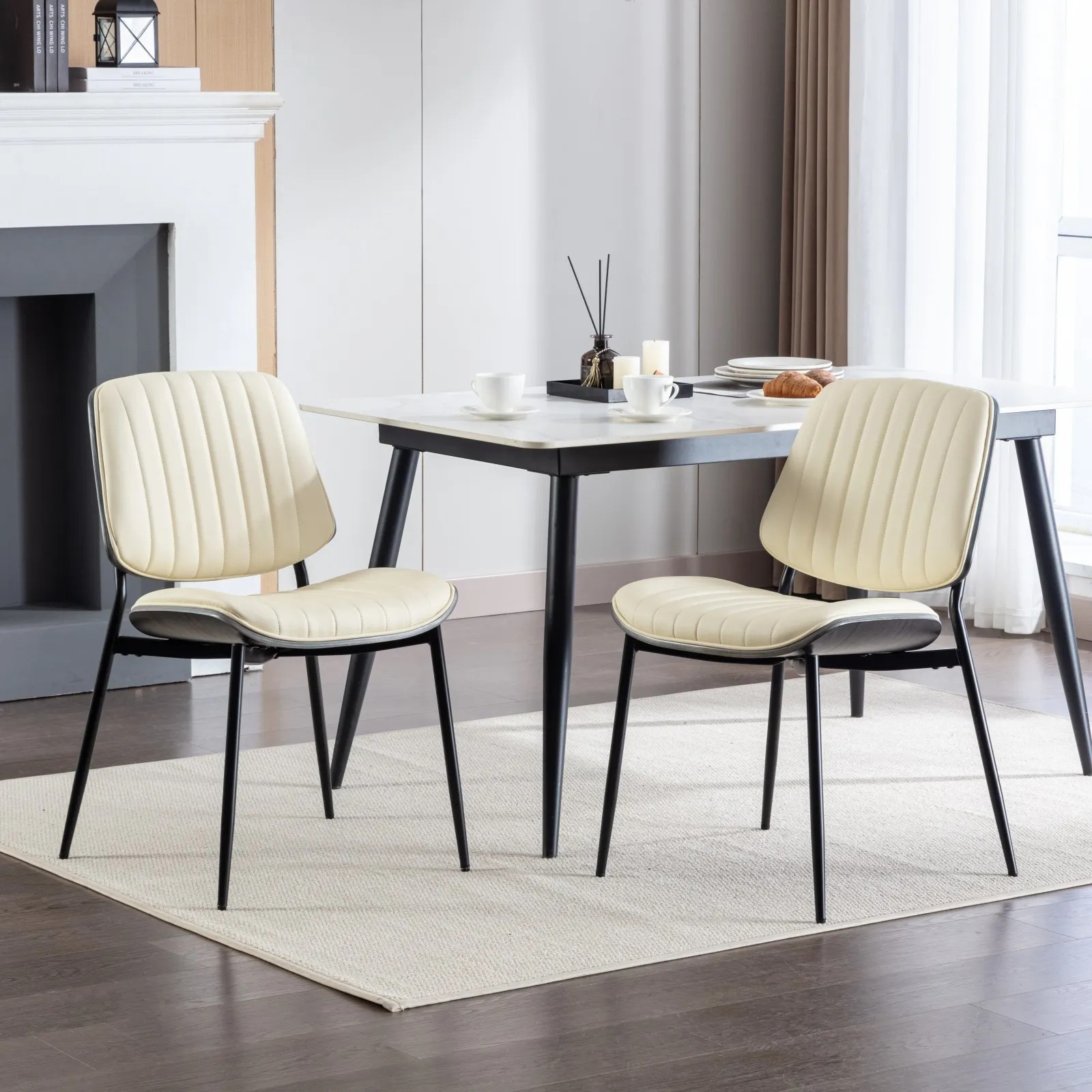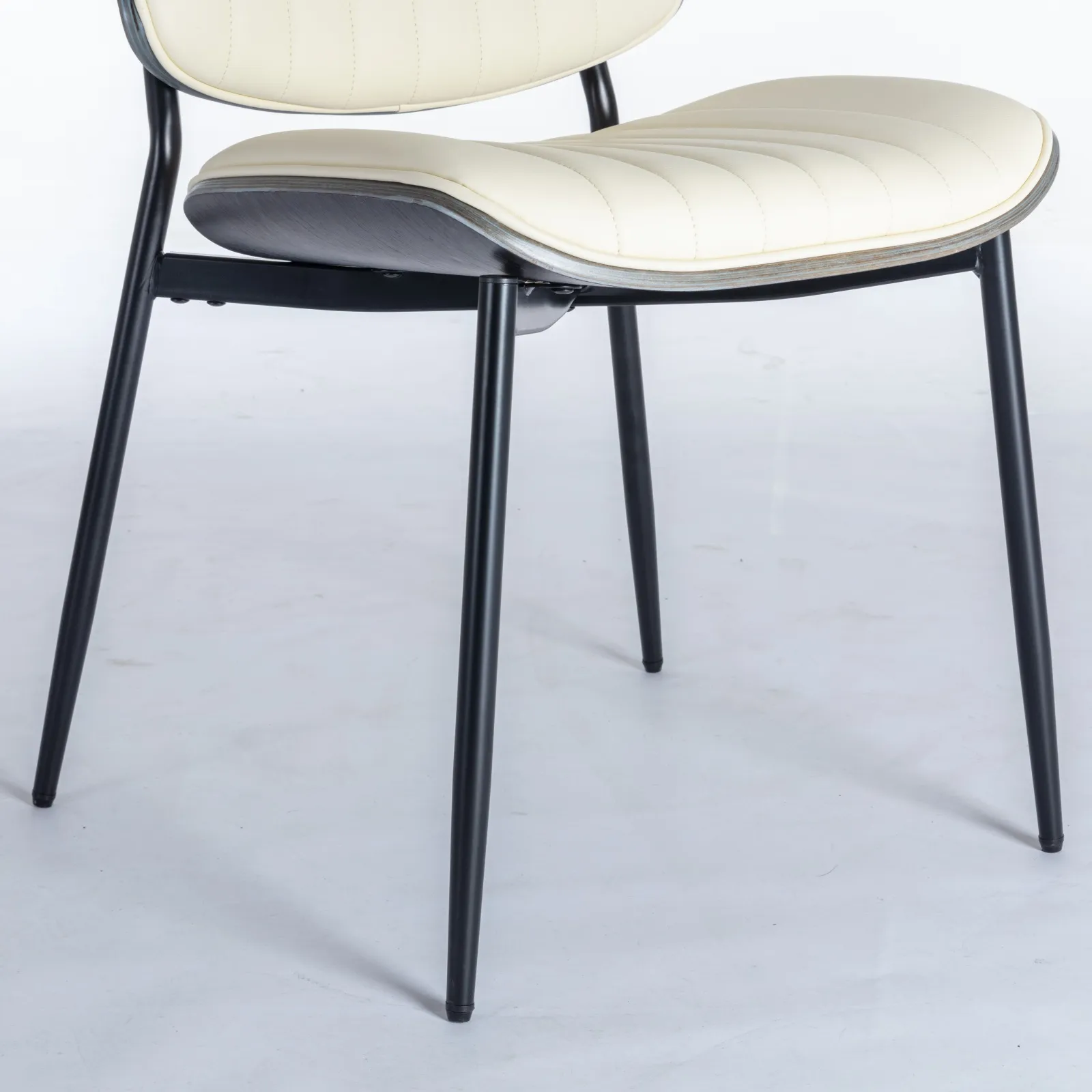 Dining Chairs (Set of 2) Mid-Century Modern Retro Faux Leather Chair With Walnut Bentwood Back Upholstered Seat Metal Legs Adjustable Foot For Kitchen Dining Room Chairs - Beige