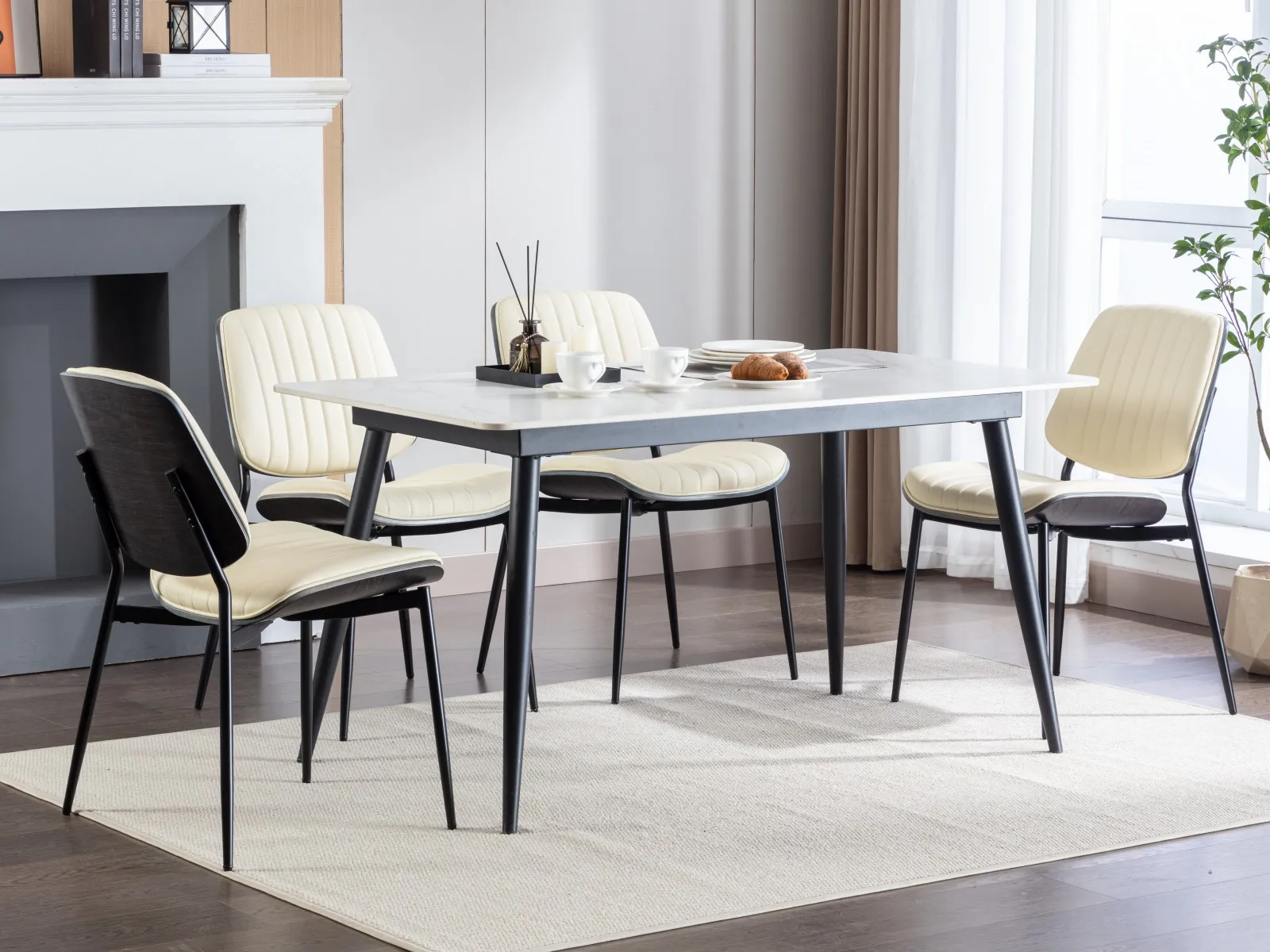 Elegant Mid-century Style: This dining chair exudes elegance with its mid-century design, perfect for any home or office setting. Durable Construction: Crafted with walnut bentwood, faux leather back and seat, and metal tapered legs for durability and longevity. Enhanced Stability: Wider and deeper leg spacing enhances stability, making the chair more secure for daily use. Ergonomic Comfort: The soft backrest with a curved wrap and scientific leaning angle offers ergonomic support and comfort.