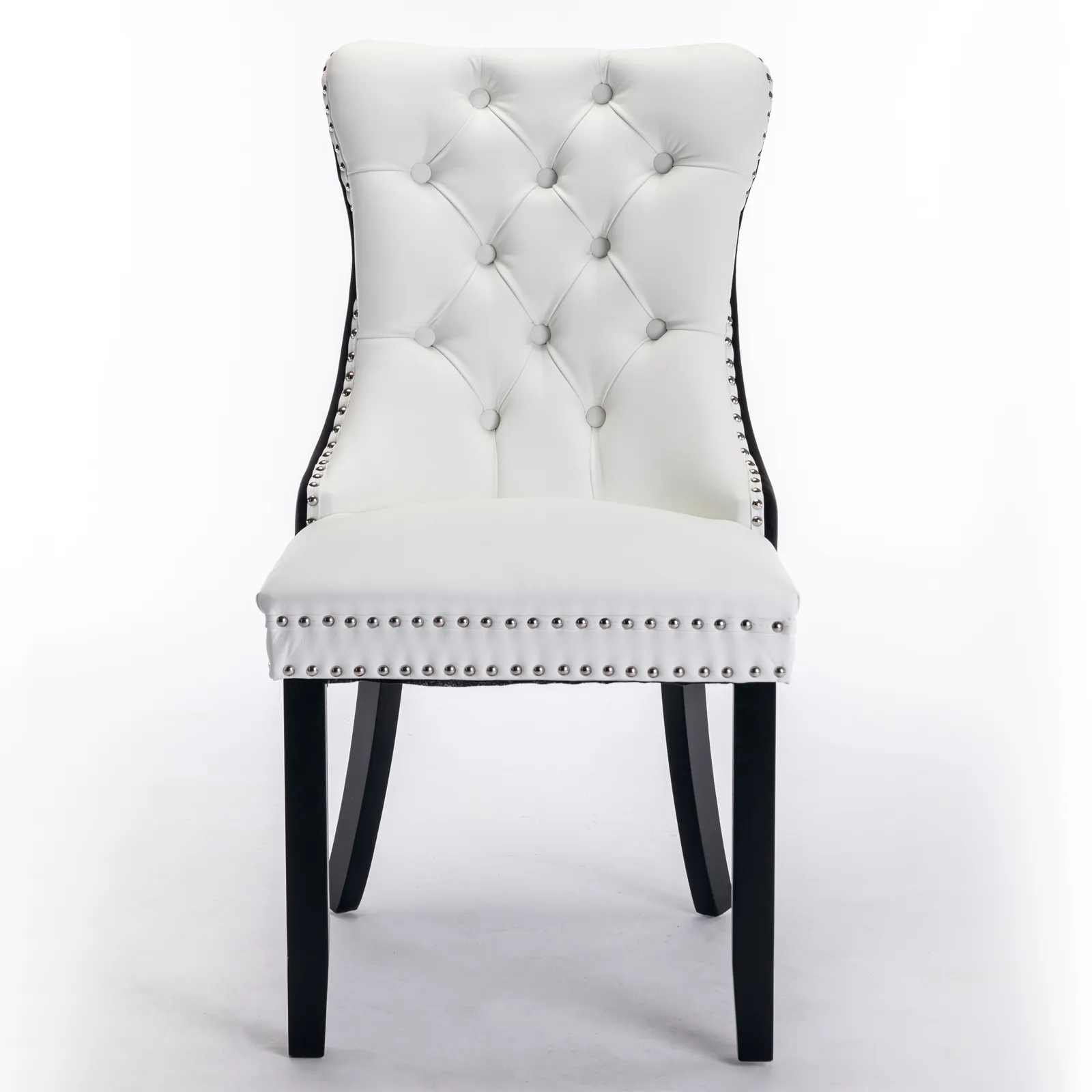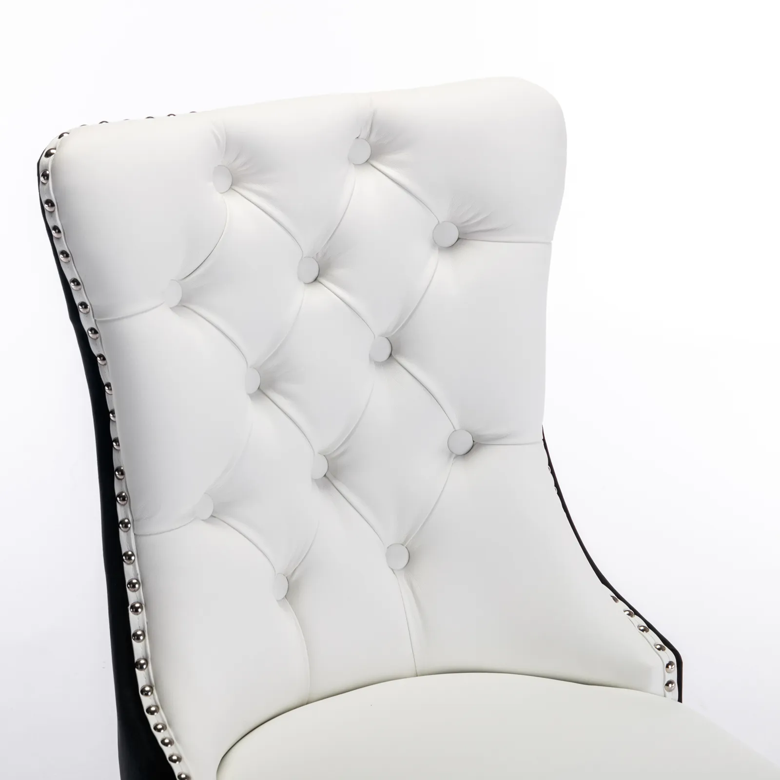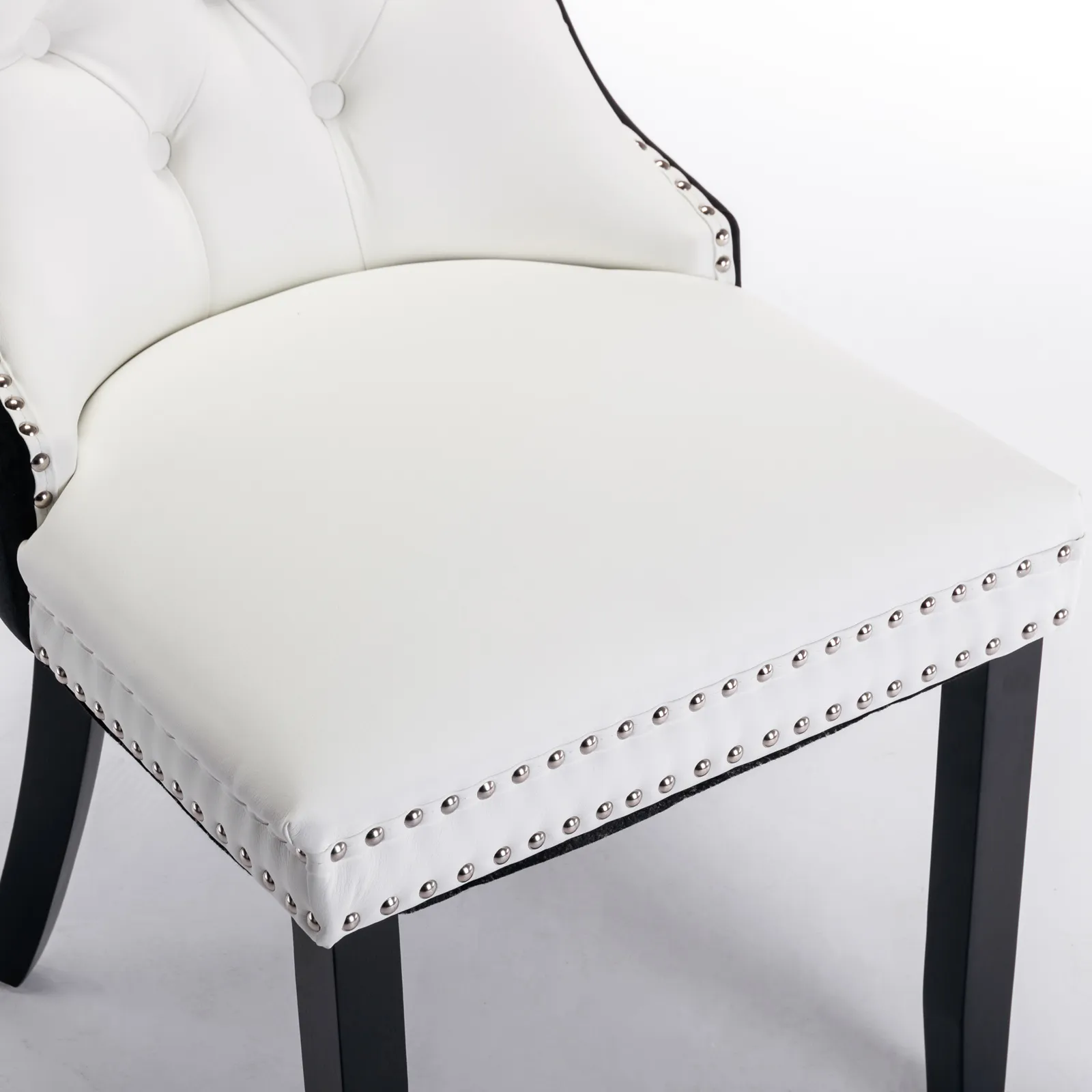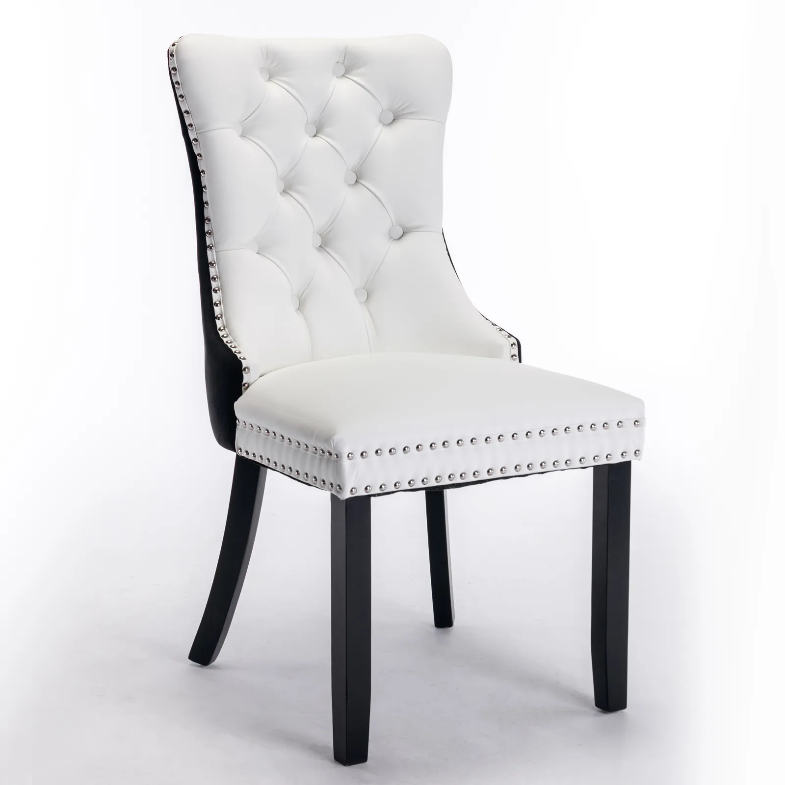 Nikki - Modern, High-End Tufted Solid Wood Contemporary PU And Velvet Upholstered Dining Chair With Wood Legs Nailhead Trim (Set of 2) - White / Black
