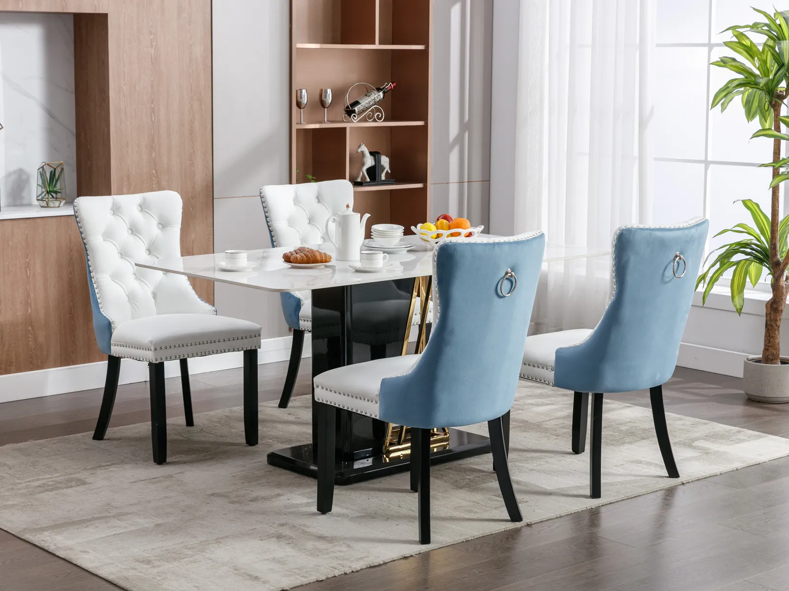 Nikki - Modern, High-End Tufted Solid Wood Contemporary PU And Velvet Upholstered Dining Chair With Wood Legs Nailhead Trim (Set of 2) - White / Light Blue