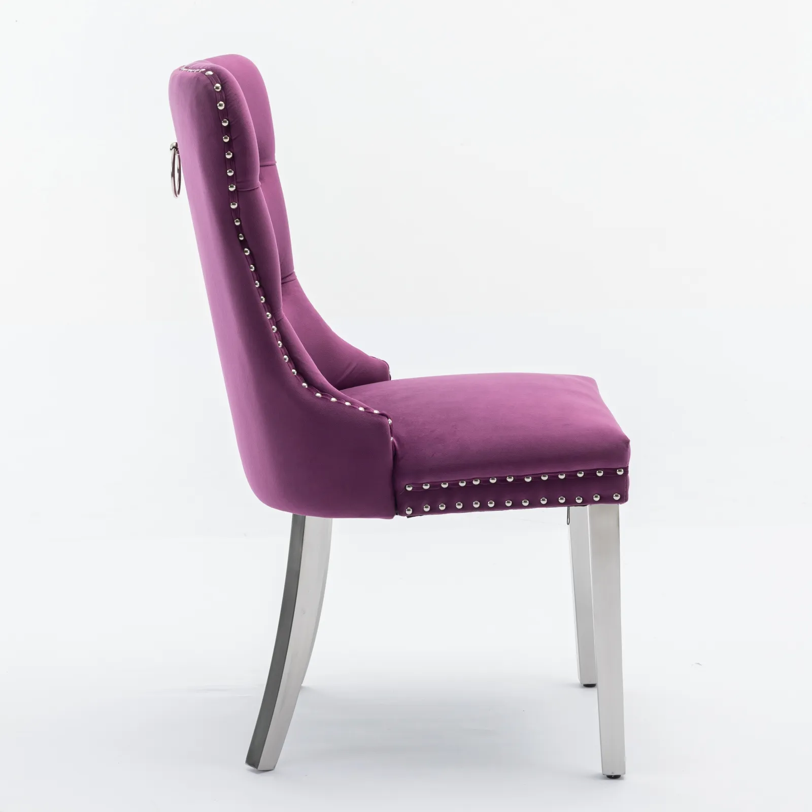 Nikki - Modern, High-End Tufted Solid Wood Contemporary Velvet Upholstered Dining Chair With Chrome Stainless Steel Plating Legs, Nailhead Trim (Set of 2) - Purple / Chrome