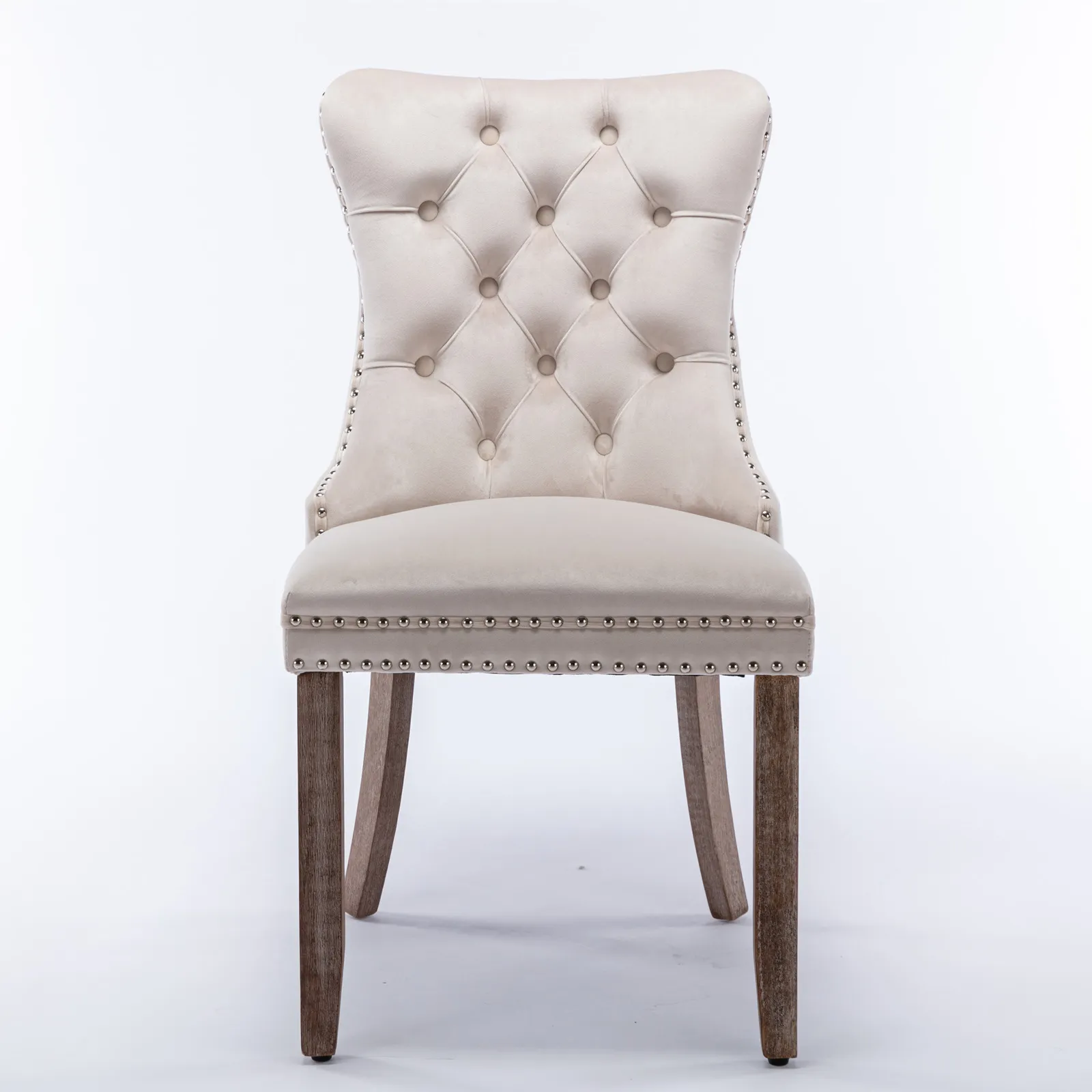 Nikki - Modern, High-End Tufted Solid Wood Contemporary Velvet Upholstered Dining Chair With Wood Legs Nailhead Trim (Set of 2) - Beige