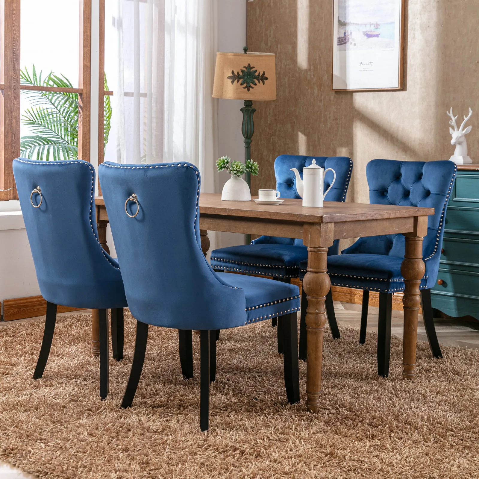 Nikki - Modern, High-End Tufted Solid Wood Contemporary Velvet Upholstered Dining Chair With Wood Legs Nailhead Trim (Set of 2) - Blue