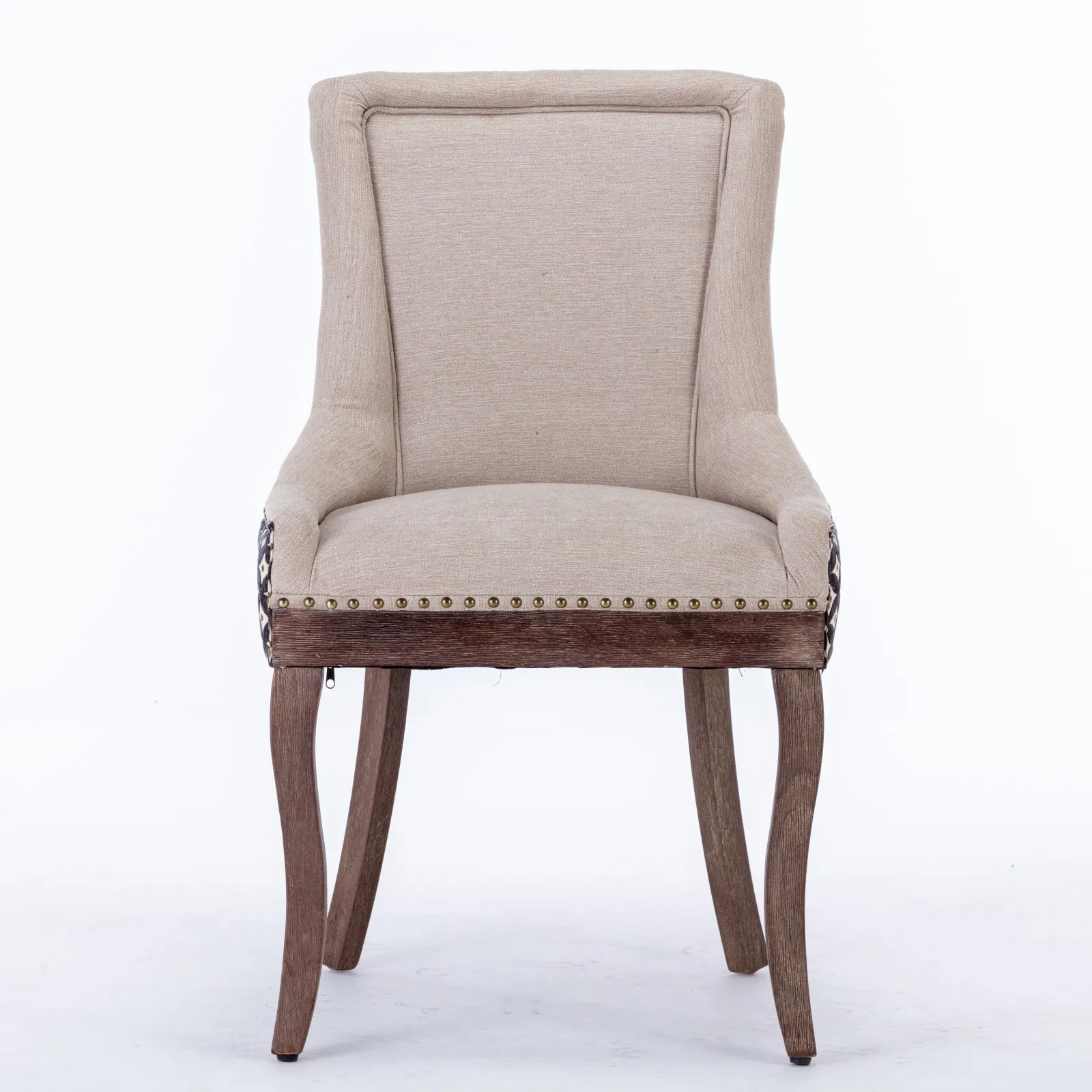 Ultra Side Dining Chair, Thickened Fabric Chairs With Neutrally Toned Solid Wood Legs, Bronze Nail Head, (Set of 2) - Beige / Patterned