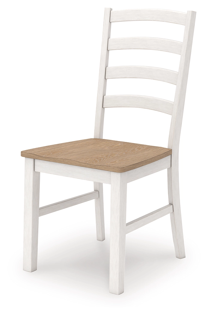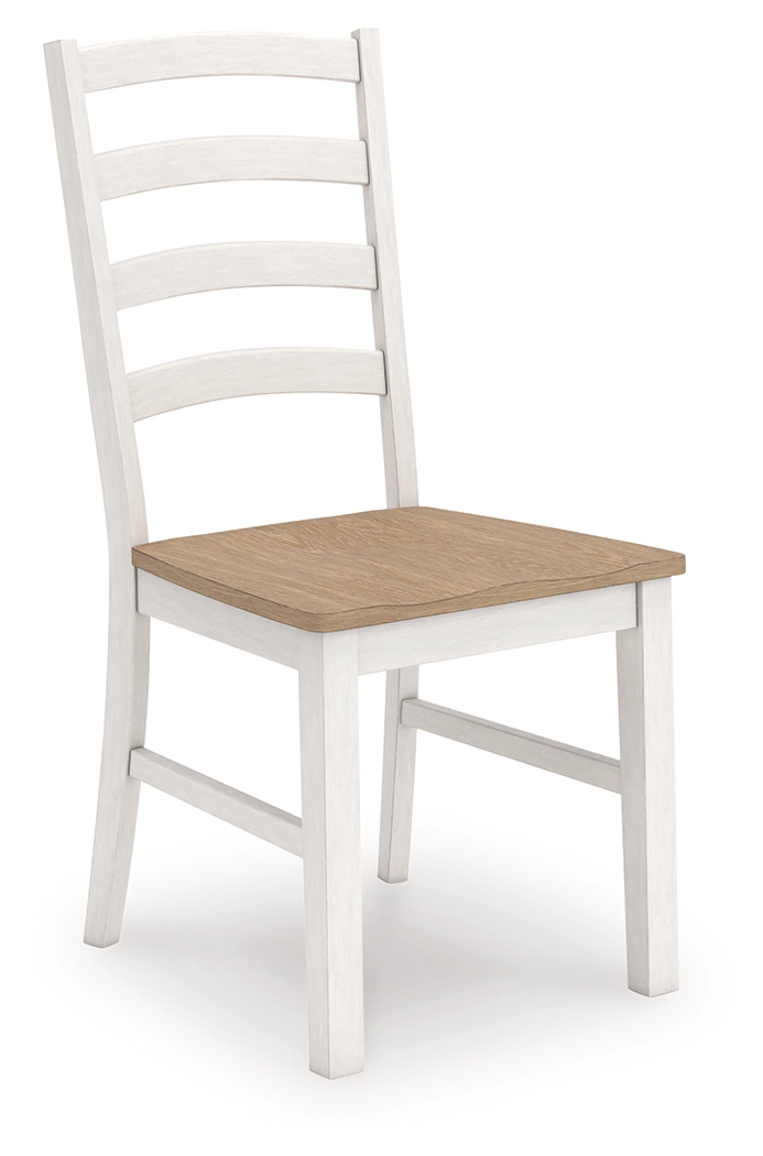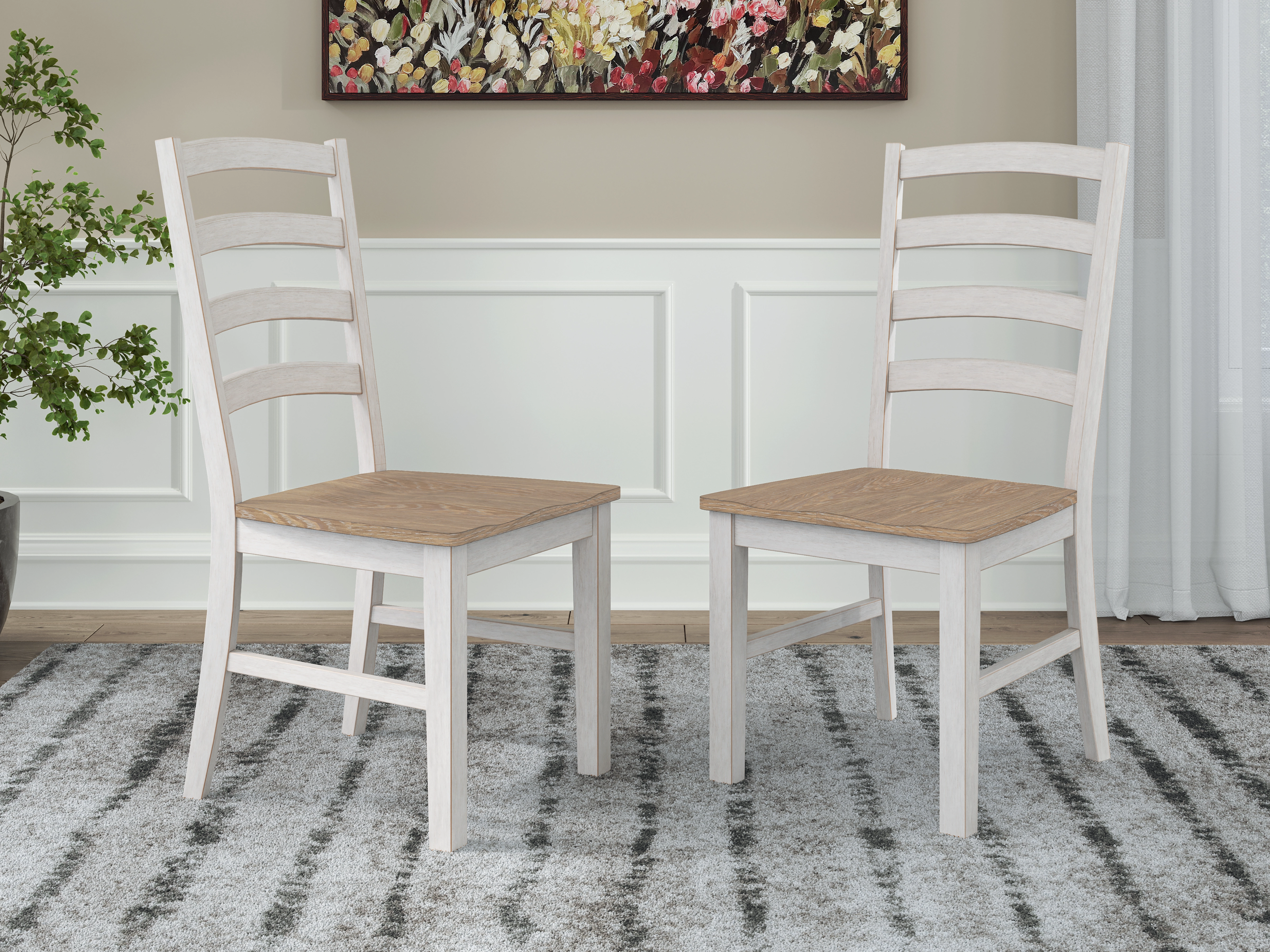 Busy breakfasts and family dinners get a dose of modern farmhouse flair with this dining package. Its two-tone finish contrasts a light butcher block hue with antiqued white for an utterly charming effect. An effortless dining solution, this set adds a touch of chic character to your space.