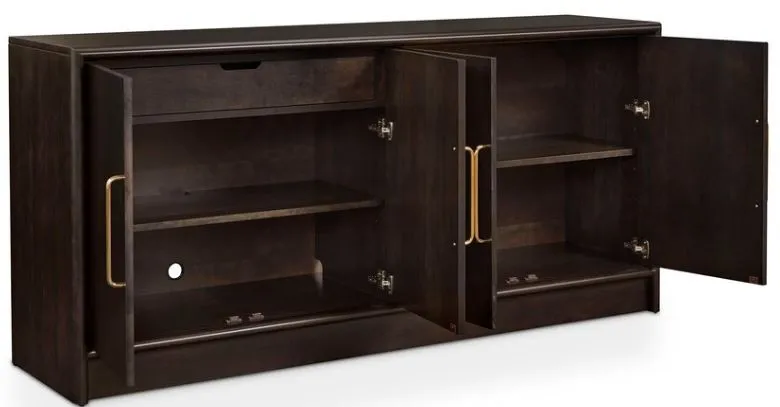 The handcrafted beauty of the BenchMade Seneca sideboard has it all – breathtaking cherry wood beauty creating plenty of storage and display space. Perfect for your living or dining area, this 4-door solution offers two shelves on each side and a drawer with soft-close, under-mount glides. Cleverly concealed hinges allow the fine grain of the solid cherry wood to take center stage and its modern lines are accented by elegant, vertical bar pulls. Three wire management holes allow flexibility for concealed cords. The natural color of cherry has a simple, Scandinavian-like elegance or you can customize the Seneca with a darker finish. Hardware choices are available in-store.