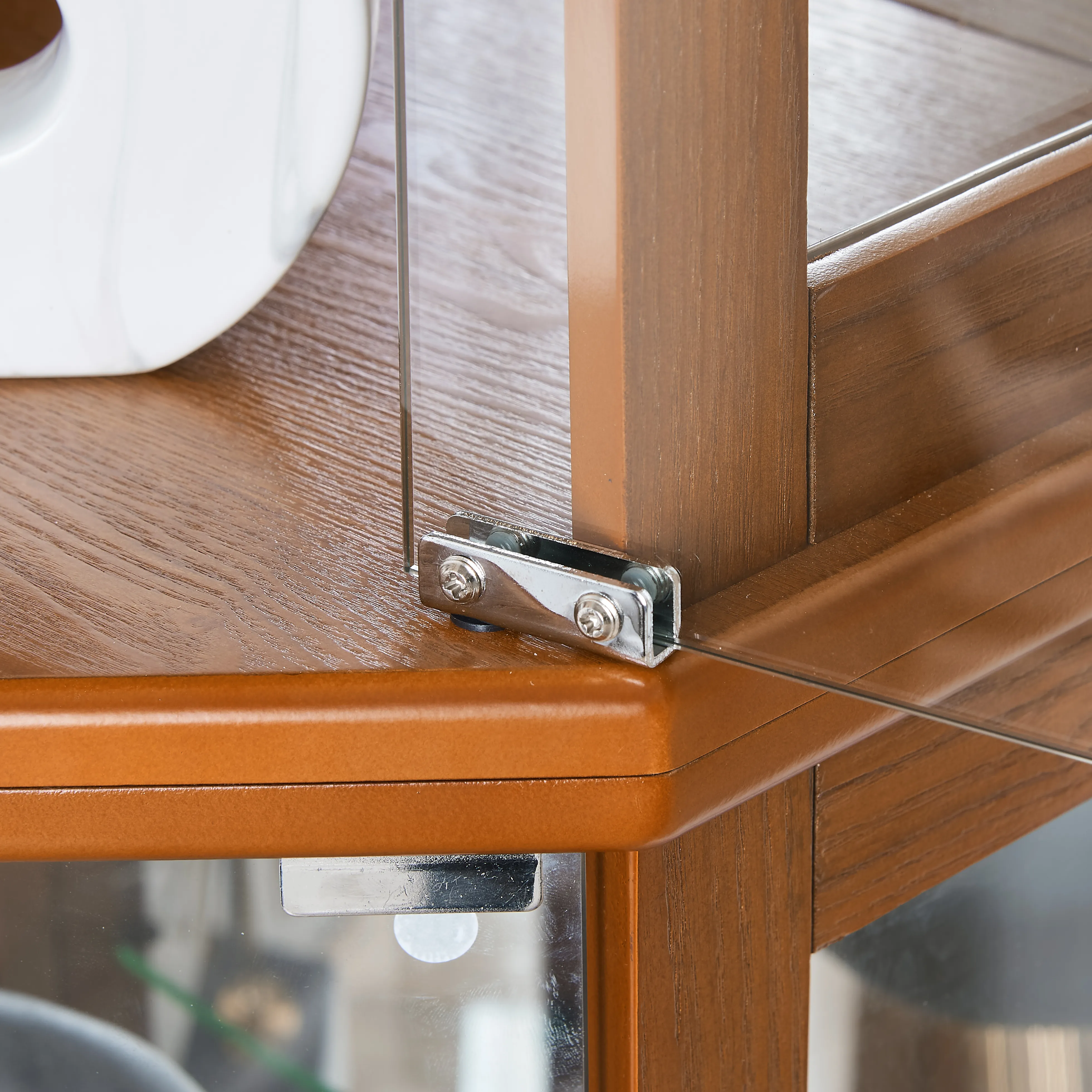 Mirrored Panel: The curio cabinet features a mirrored back panel that runs the entire height, ensuring your family heirlooms are always in the best view. Tempered Glass Shelves: Includes 6 shelves in total, with 2 fixed wood shelves and 4 adjustable tempered glass shelves, each holding up to 25 lbs. Adjustable by moving shelf pegs. Functional Design: Classic frame coordinates with traditional and transitional styles. Made with engineered wood and easy to clean with a soft cloth. Streamlined Size: Measuring 72"H x 26"W x 19.5"D, it offers extensive storage without taking up much space. Includes 4 hinged doors and an anti-tipping wall anchor for safety. Display Cabinet with Lights: Interior lights coupled with the mirrored back panel showcase your antiques, china, and photos. Uses a standard E26 light bulb (not included).
