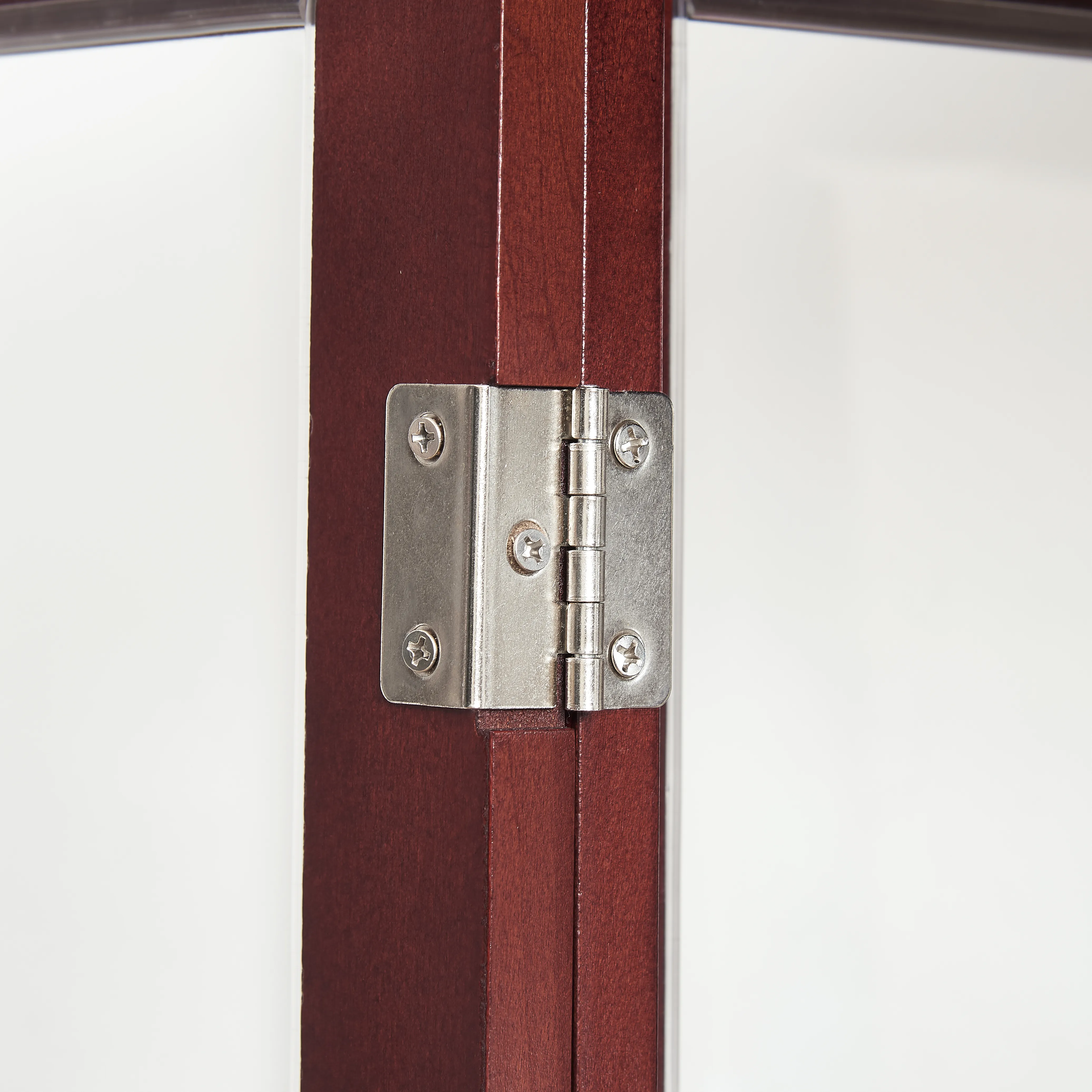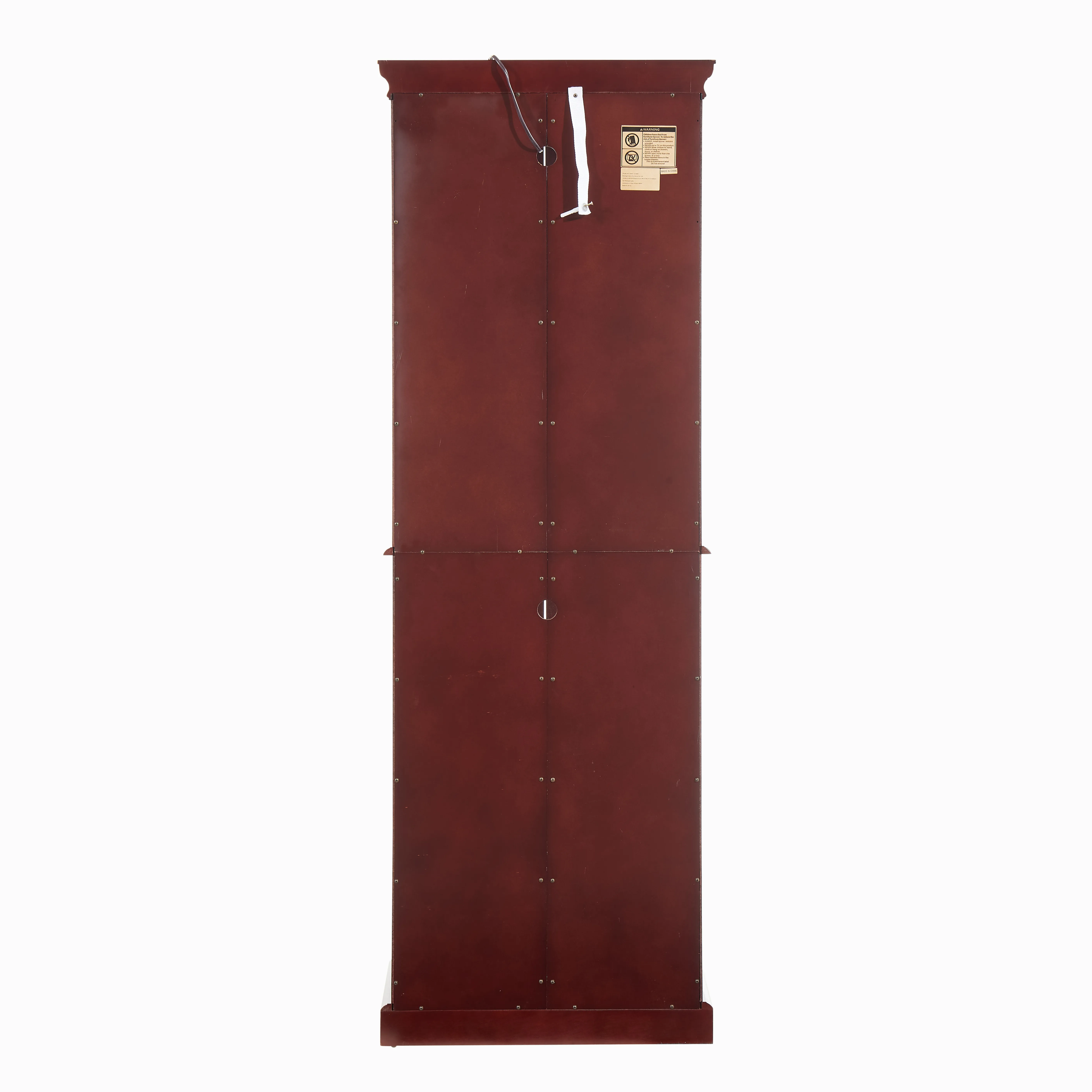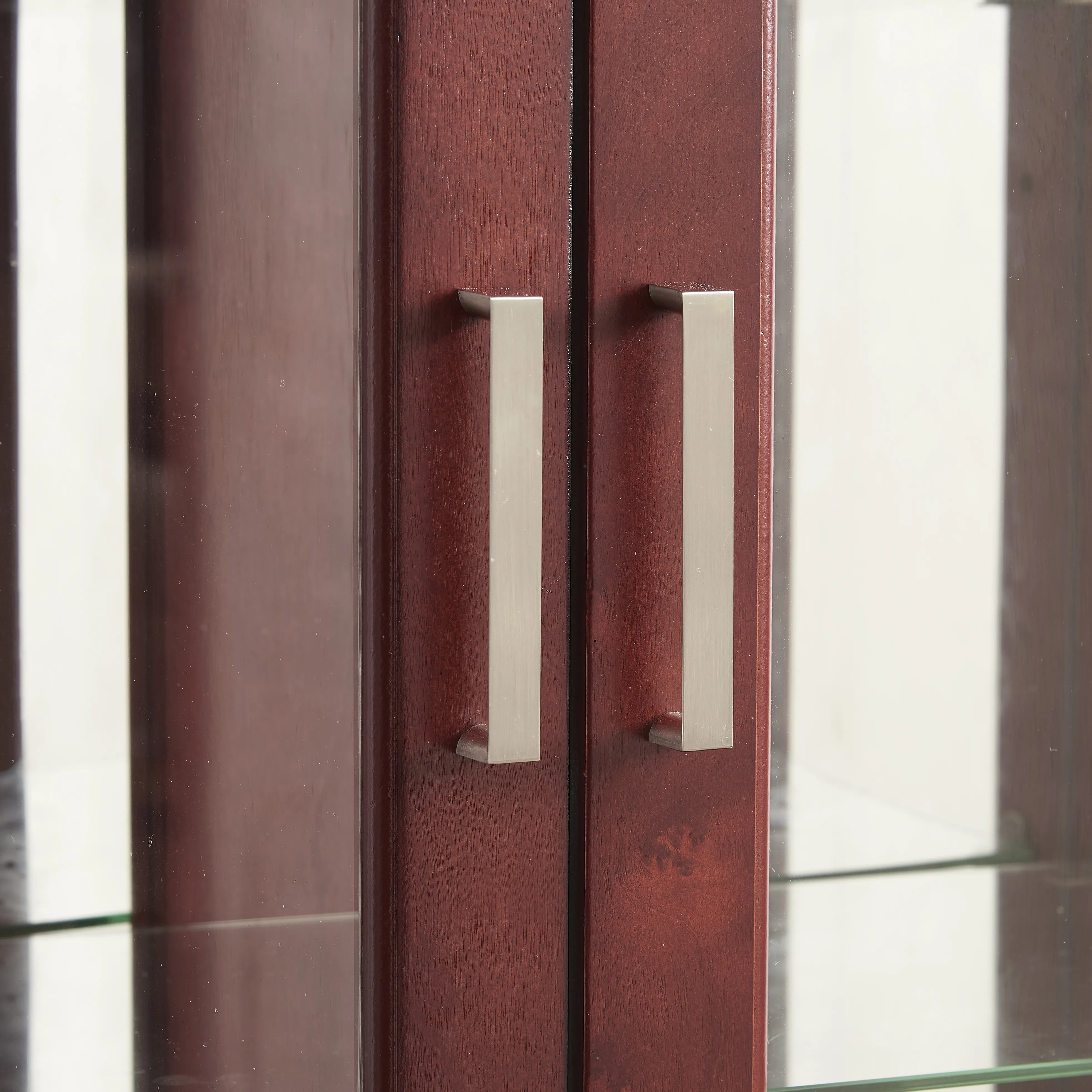 Versatile Design: The transitional display cabinet features clean lines and a timeless style, suitable for any room in your home, offering extra storage or a stylish display for keepsakes. Adjustable Shelves: Includes 6 shelves, 4 of which are adjustable tempered glass, each holding up to 15 lbs. Four front hinged doors and magnetic hardware facilitate easy access and secure closure. Internal Lighting: Equipped with an internal lighting system and mirrored back panel, it enhances the display with a reflective glow. Uses a standard E26 light bulb (not included). Dimensions and Assembly: Measures 23.75"W x 11.75"D x 70"H, weighing 75.83 lbs. Comes with detailed assembly instructions and a wall anchor; recommended two-person assembly takes about 90 minutes. Durable Construction: Made from composite wood with a Walnut finish, easy to clean with a dry, soft cloth. Avoid using liquid cleaning chemicals.