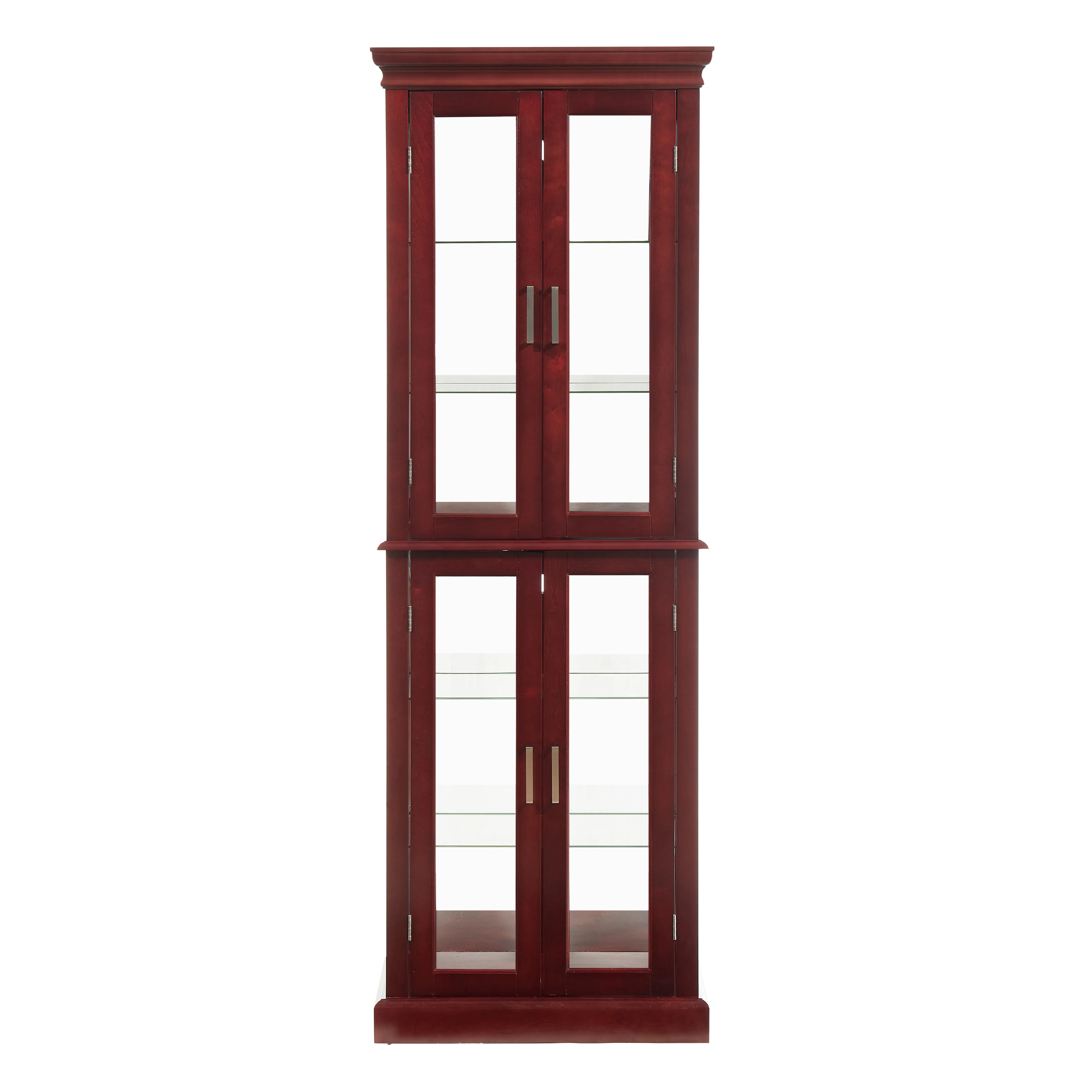 Curio Cabinet Lighted Curio Diapaly Cabinet With Adjustable Shelves And Mirrored Back Panel, Tempered Glass Doors 6 Tier, (E26 Light Bulb Not Included) - Cherry