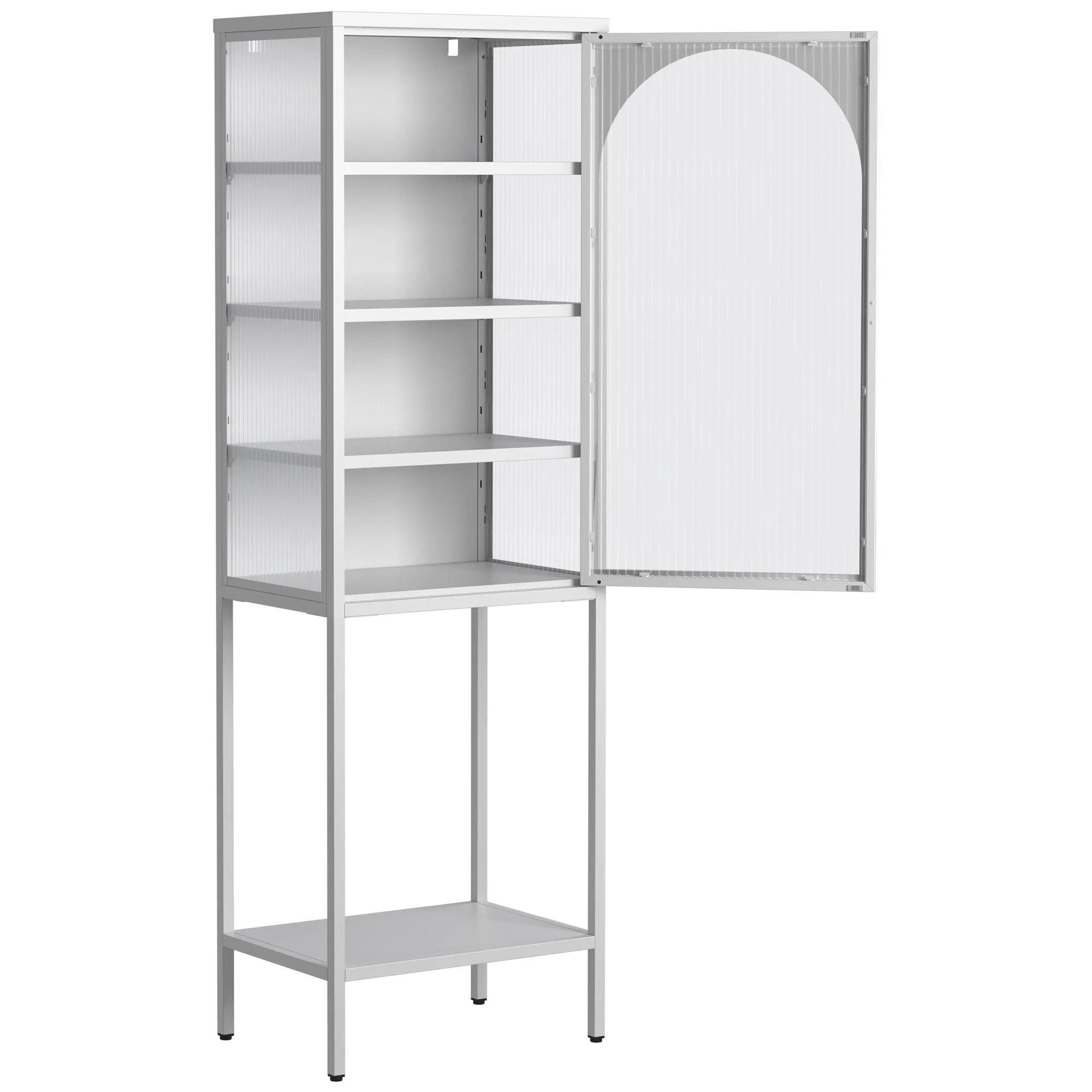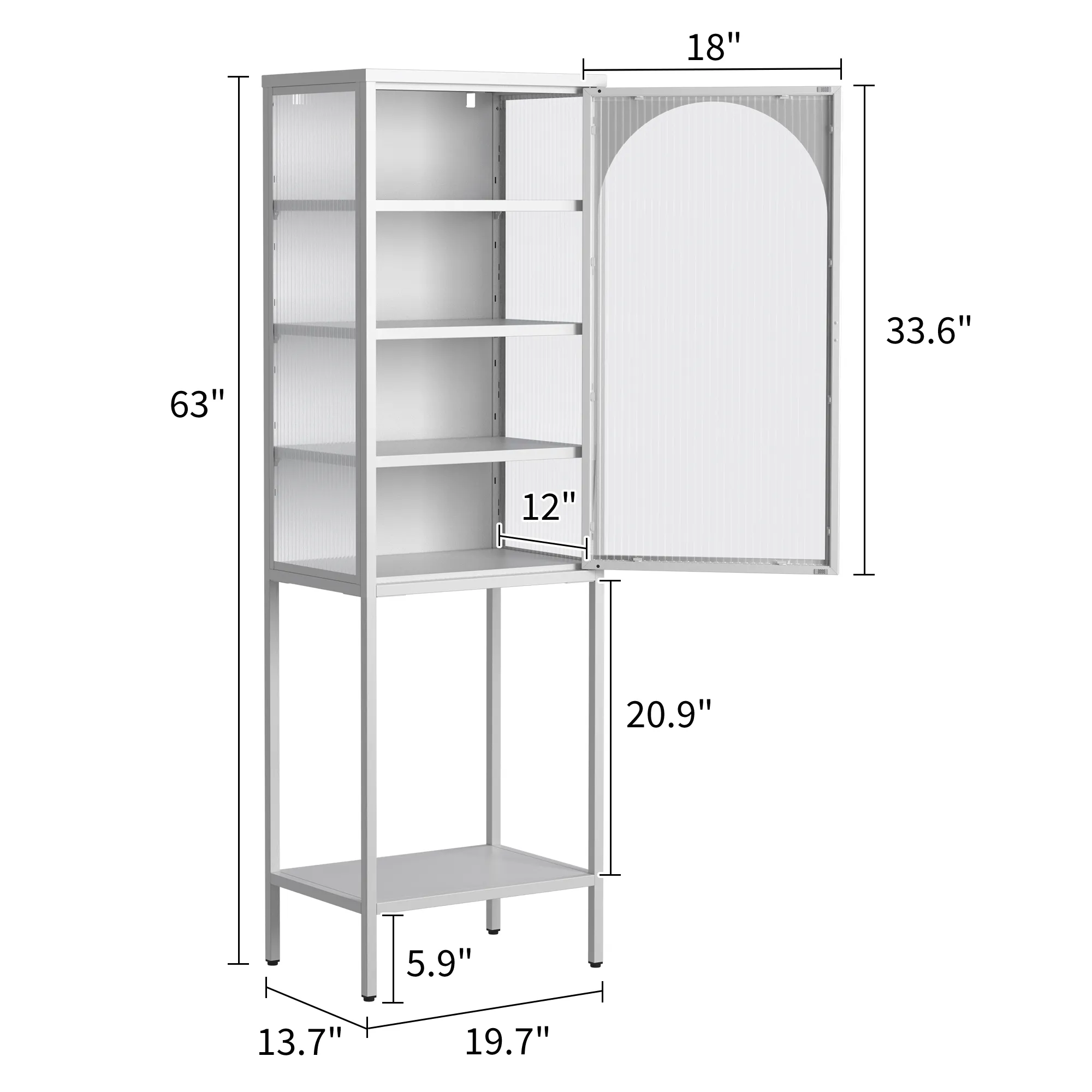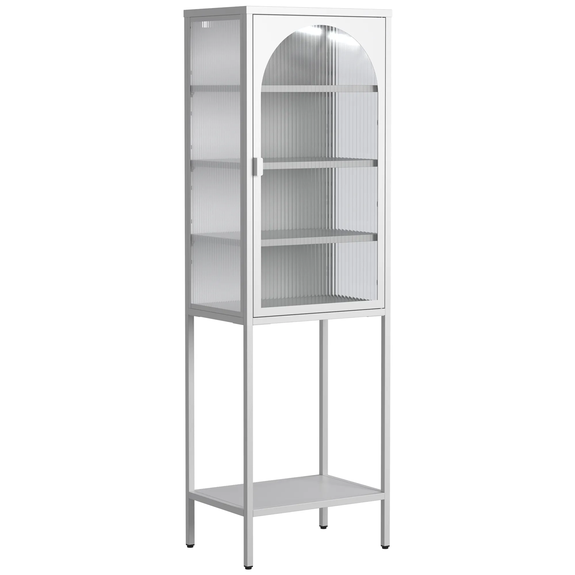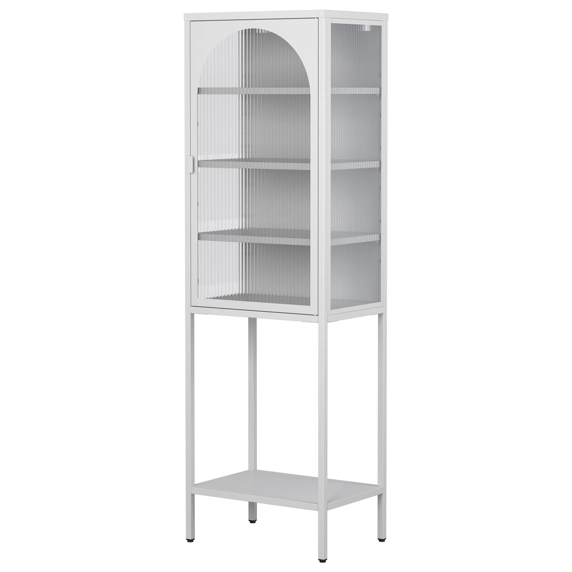 Durable Construction: Made from cold-rolled steel, formaldehyde-free, heat-resistant, and waterproof. Special paint surface for easy cleaning. Changhong Tempered Glass: Durable and impact-resistant glass doors. Semi-transparent design for privacy and visual appeal. Magnetic Fixing: Strong magnetic doors for sealing and easy opening/closing. Unique and Modern Design: Stylish arch door design with minimalist handles. Clean, crisp lines for a modern look. Adjustable Shelves and Feet: Shelves can be adjusted for various items. Feet height is adjustable for easy cleaning. Anti-tipping device for safety. Versatile Usage: Suitable for various rooms and purposes. Can store tableware, books, liquor, etc. Child-Friendly and Easy Assembly: Safe for children. Comes with manual, gloves, screwdriver, and QR code for instructional video.