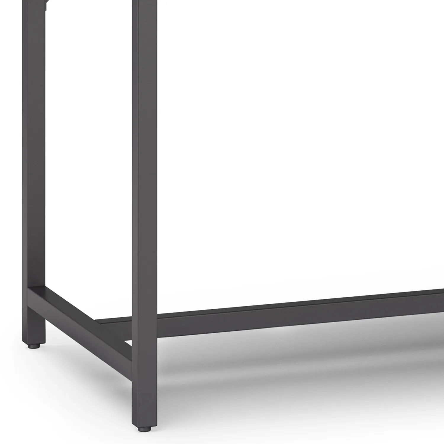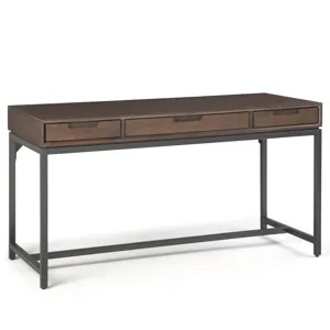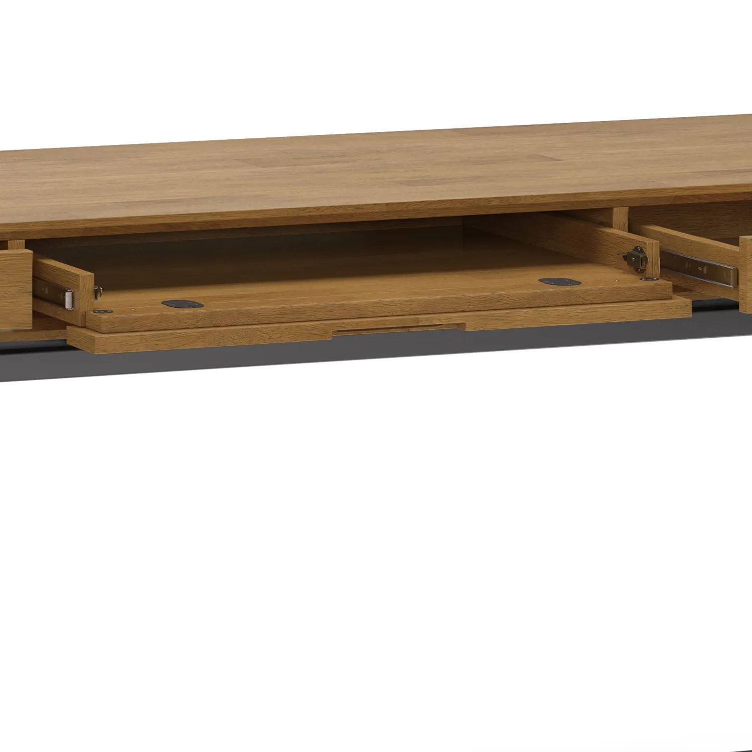The Banting Collection is made from richly-grained solid Rubberwood. This mid-century modern industrial collection has a clean angular metal base, with square, simple modern drawer and table top. With no visible hardware, and only simple wood pull handles, the solid Rubberwood top, is simple and uncomplex. The Banting Desk has two large working side drawers with ball bearing drawer glides and one centre flip down drawer/keyboard tray to maximize functionality. The 24" x 72" size is large enough for a well appointed executive home office for a desk that can really handle the workload. The Banting collection includes coffee, console, end tables, tv stands, sideboard buffet, desks and bookcase.