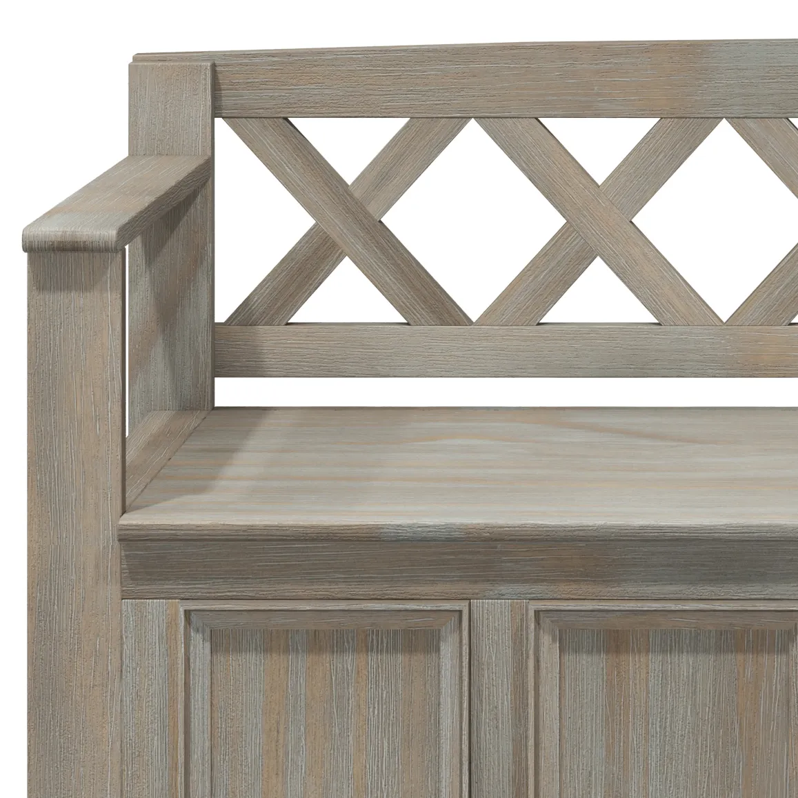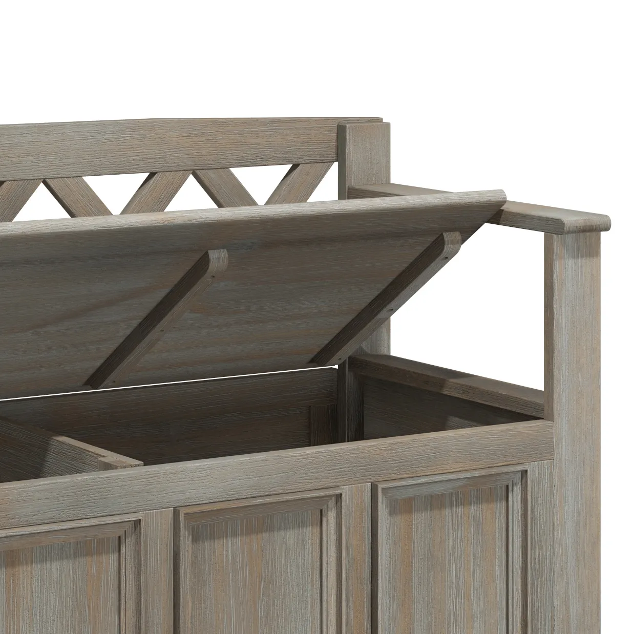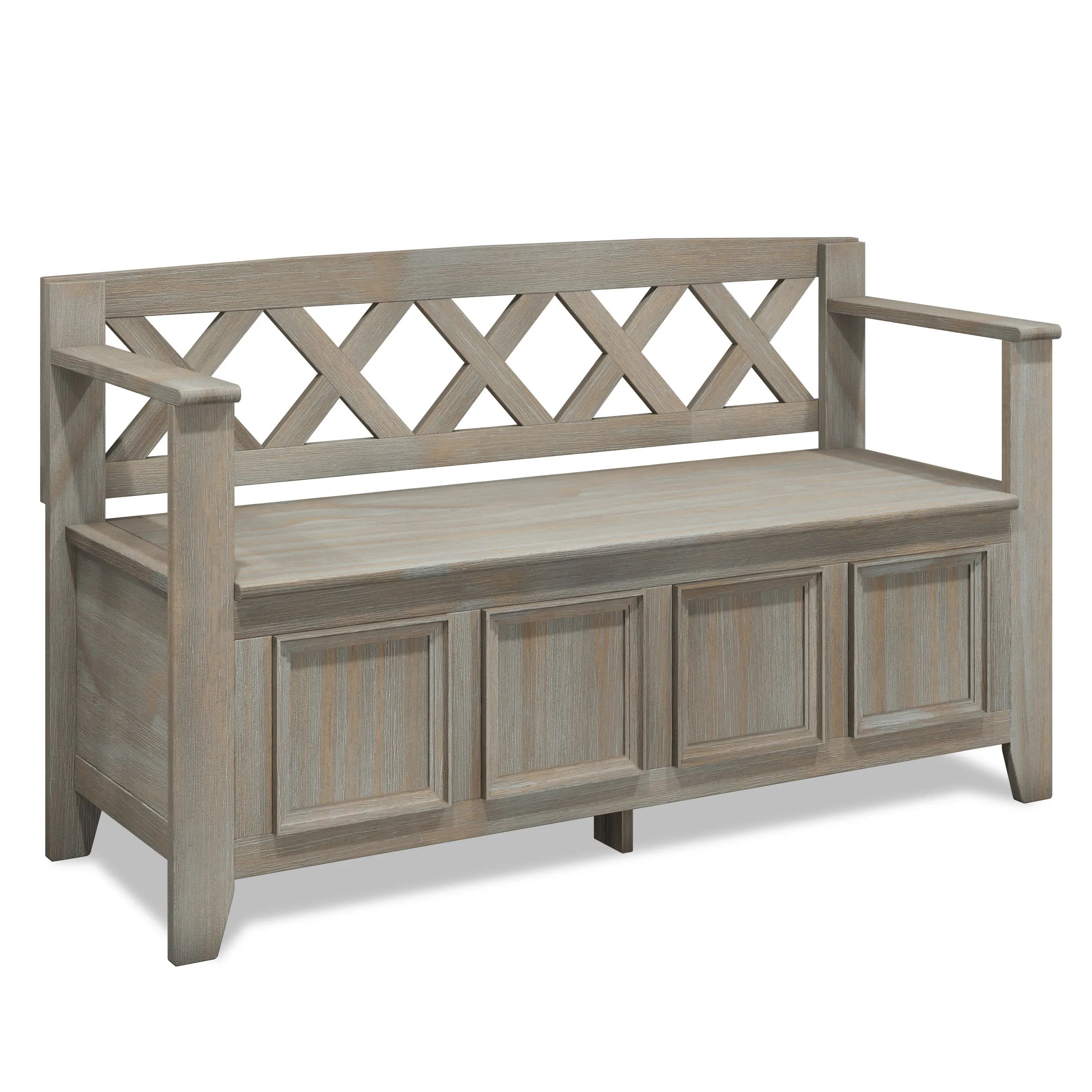 The Amherst Storage Bench, made from solid wood, allows your inner designer to shine through while creating added storage and seating for your entryway or mudroom. "Form follows function" design rules apply here as the bench features a convenient flip up lid allowing for easy retrieval of articles from the dual storage compartment below.