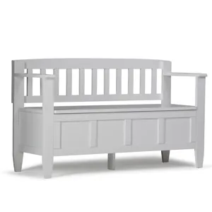 The Amherst Storage Bench, made from solid wood, allows your inner designer to shine through while creating added storage and seating for your entryway or mudroom. "Form follows function" design rules apply here as the bench features a convenient flip up lid allowing for easy retrieval of articles from the dual storage compartment below.