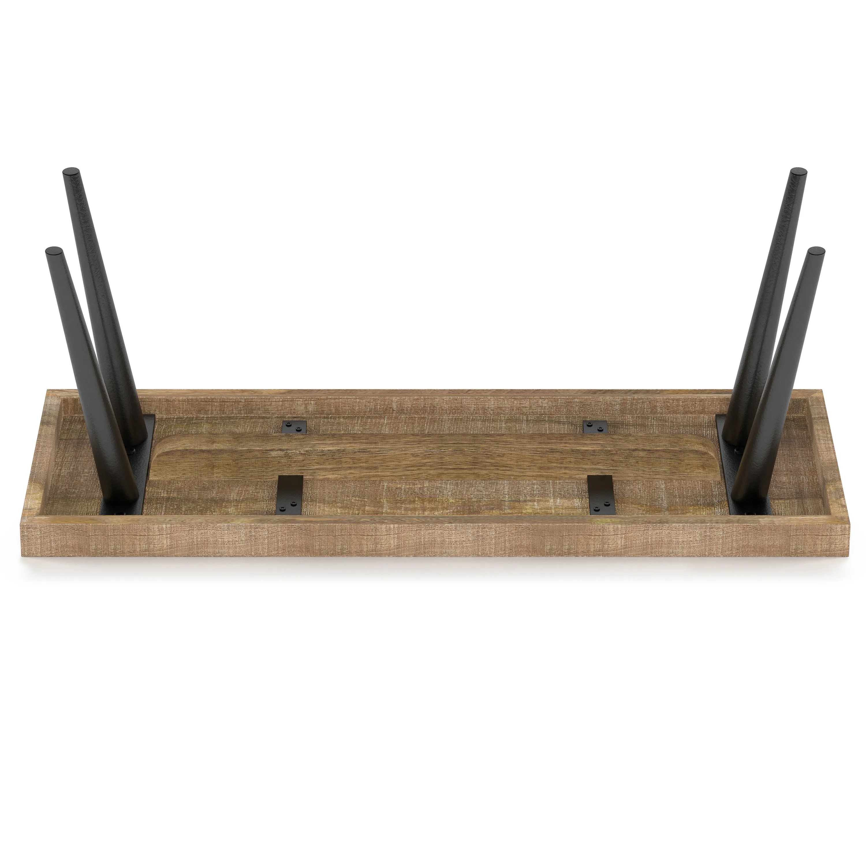 Simple and natural, the Durham Bench features thick richly-grained mango wood seat and round solid metal legs. This long bench is wide enough to be placed at the foot of your bed, narrow enough to be put in your front hallway, or mud room. This elementary and uncomplicated bench is rich in detail. Its lack of complexity gives it universal appeal.