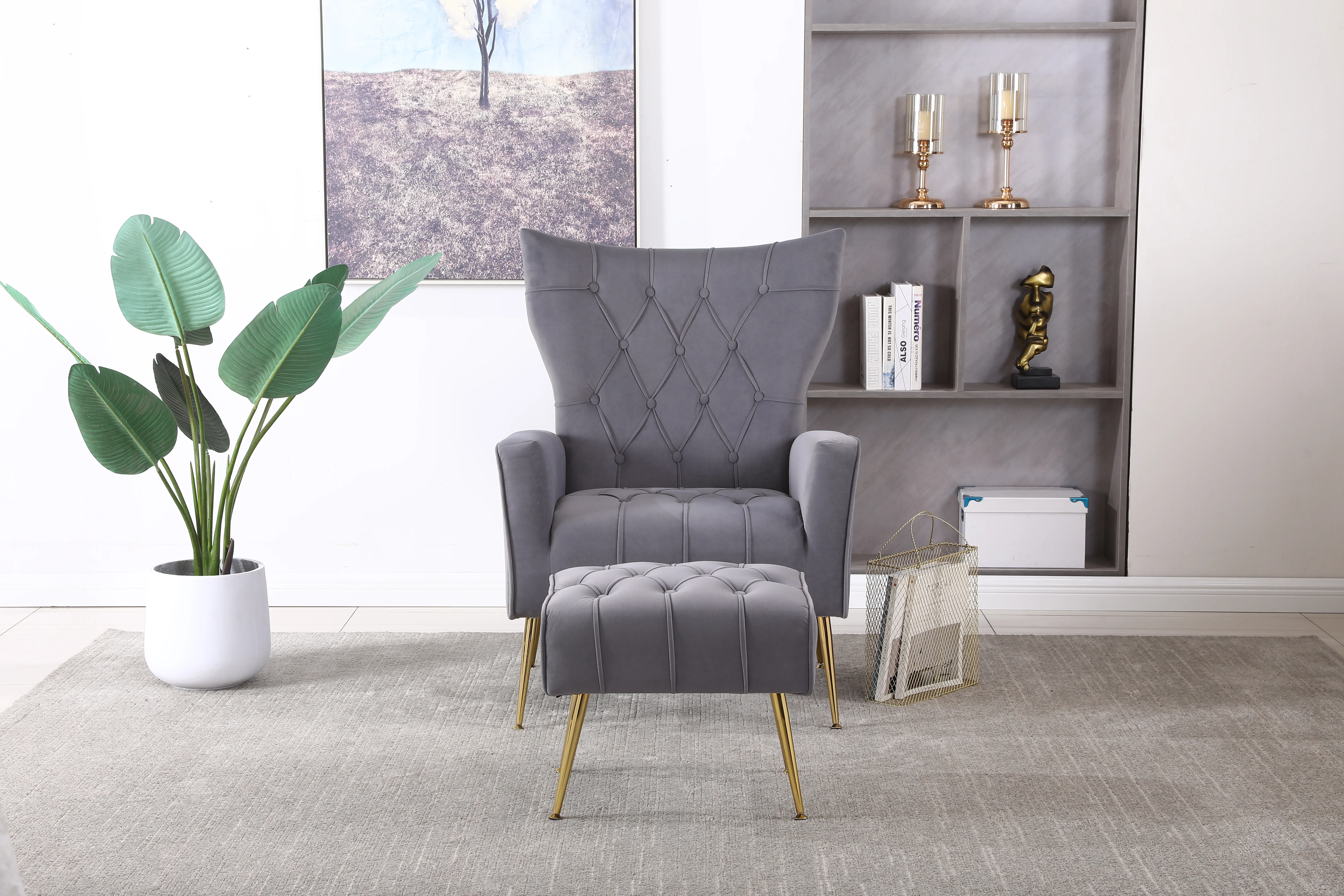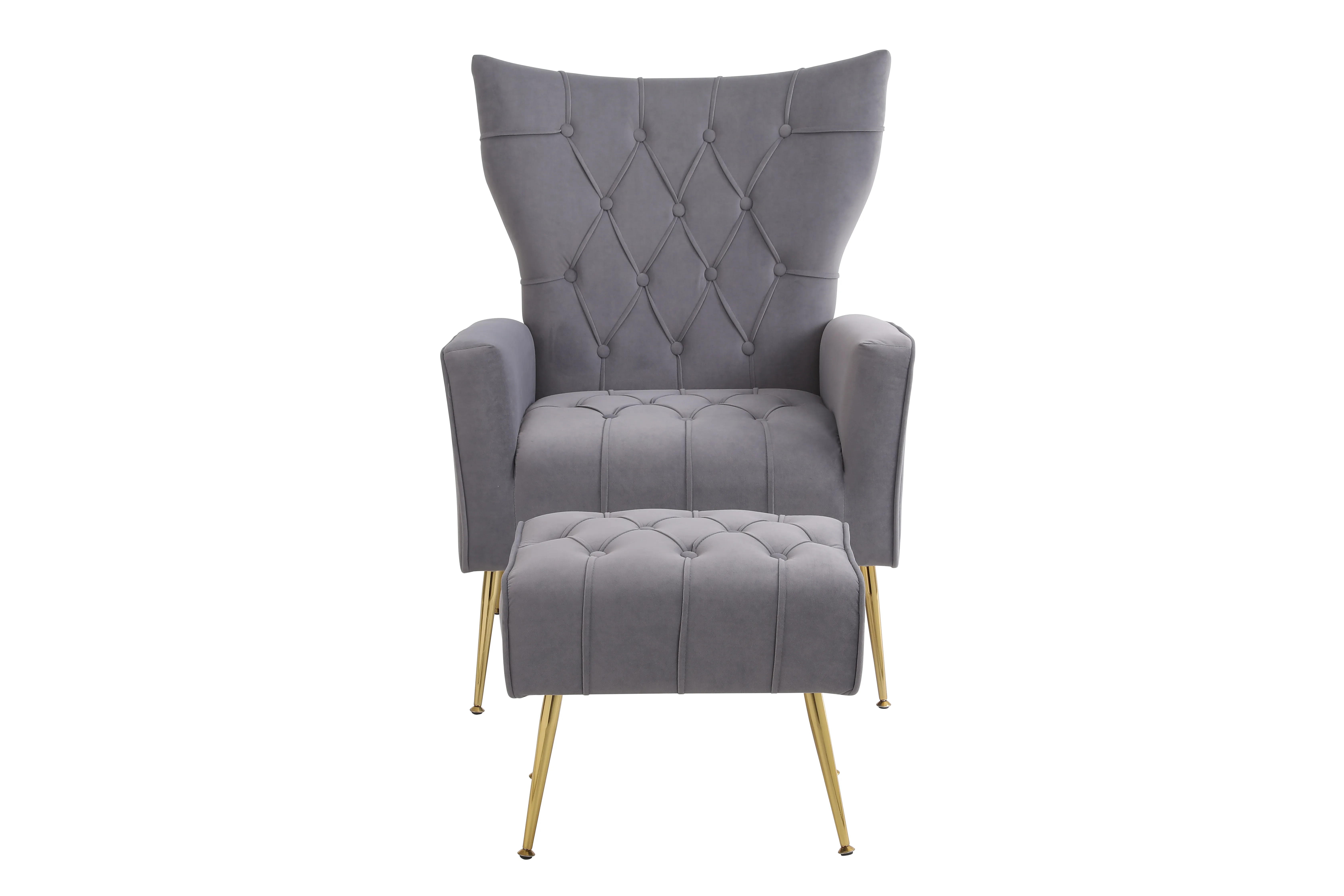 Modern Accent Chair With Ottoman, Comfy Armchair For Living Room, Bedroom, Apartment, Office - Gray