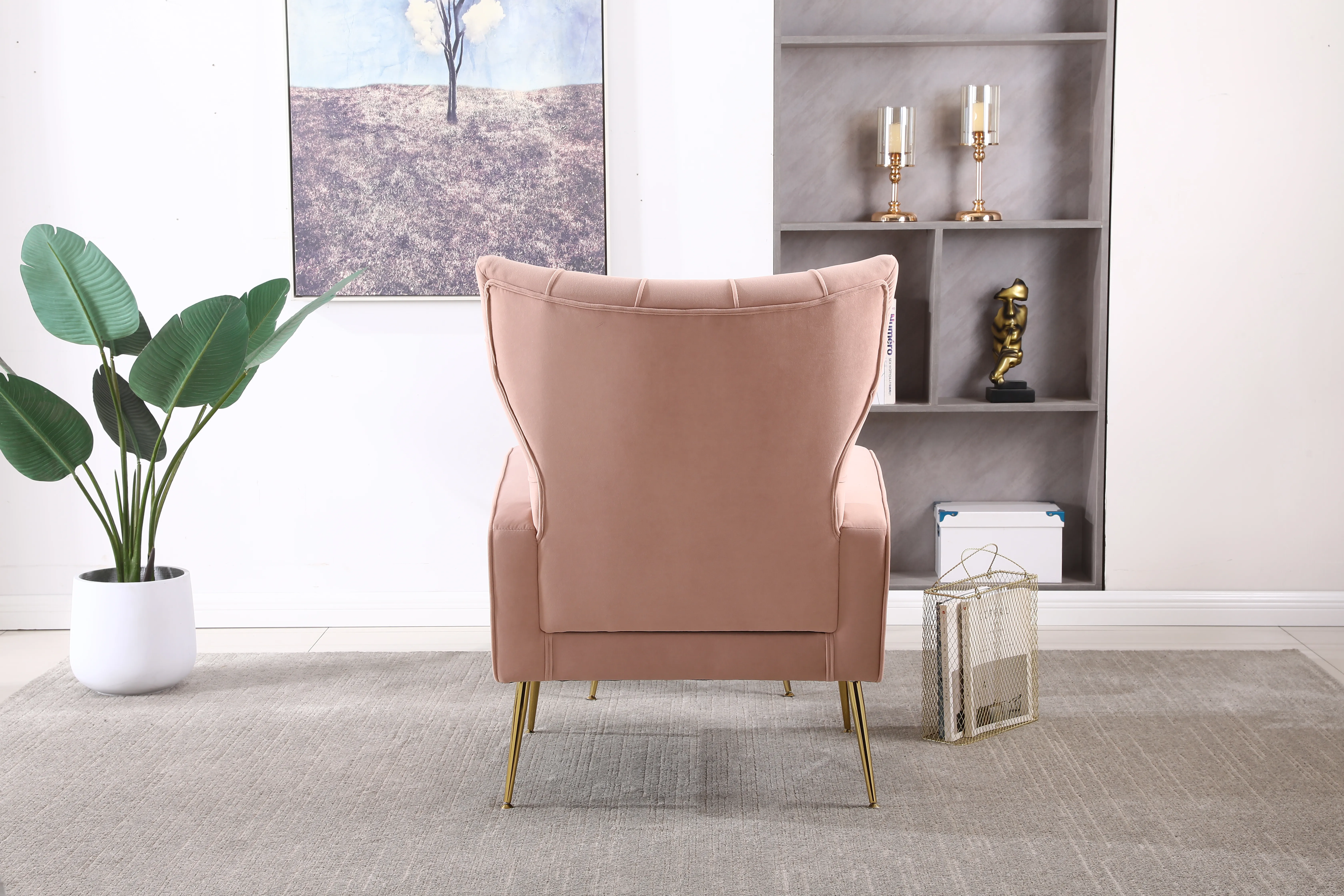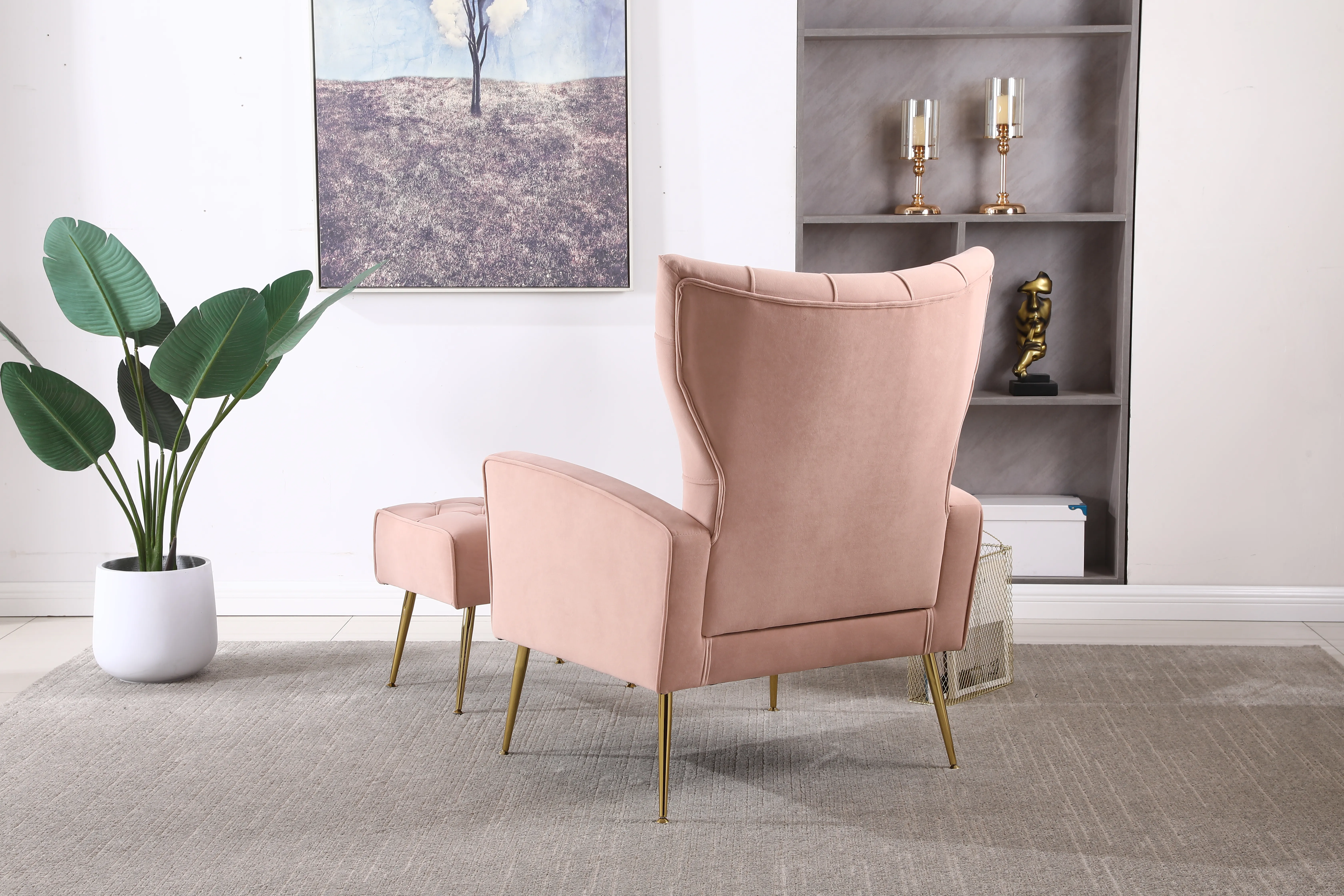 Modern Accent Chair With Ottoman, Comfy Armchair For Living Room, Bedroom, Apartment, Office - Pink