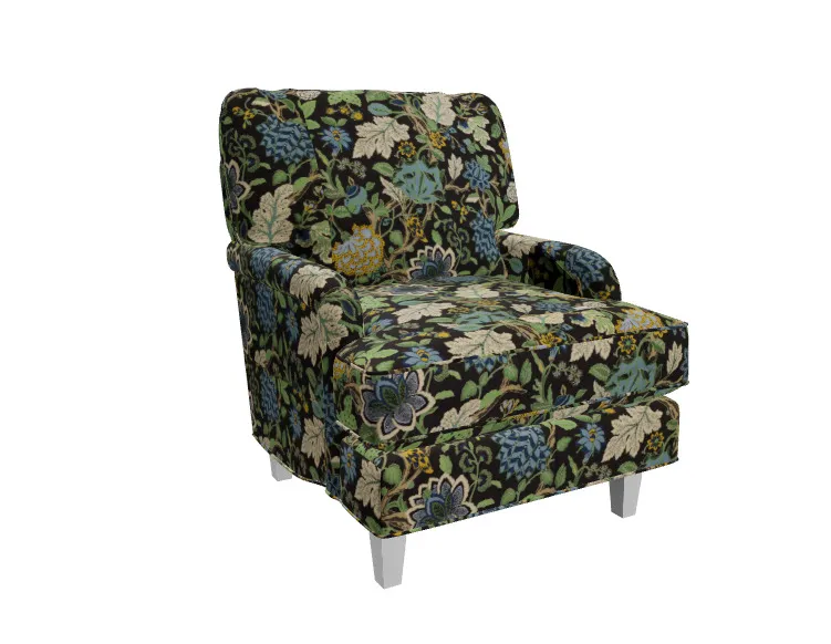 The classic shape of this chair gets a modern makeover to make it a perfect choice for any room. It features a beautifully sculpted English arm, a semi-attached back for easy maintenance, and striking high tapered legs. Notice the shaping on the side, tapering from front leg to back. This generously scaled chair is plush and comfortable and makes up nicely in a variety of fabrics. Add the matching ottoman for the perfect complement.