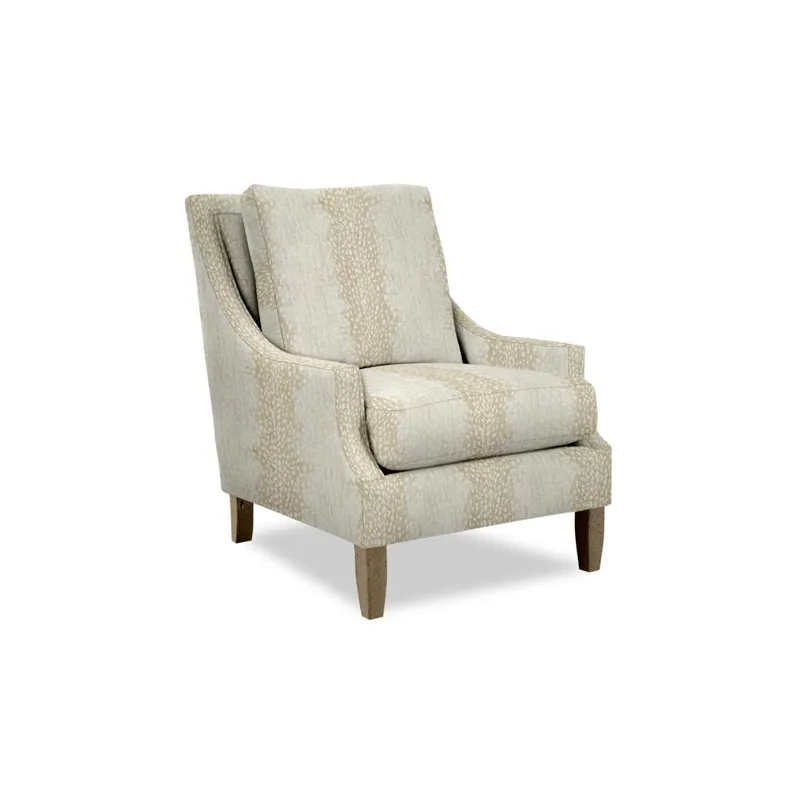 Slender track arms rise to meet the back of this beautiful accent chair, giving it a framed effect that has perfect proportions. Finished with French seaming, it features a loose box back pillow and tall tapered legs to complete this elegant look.