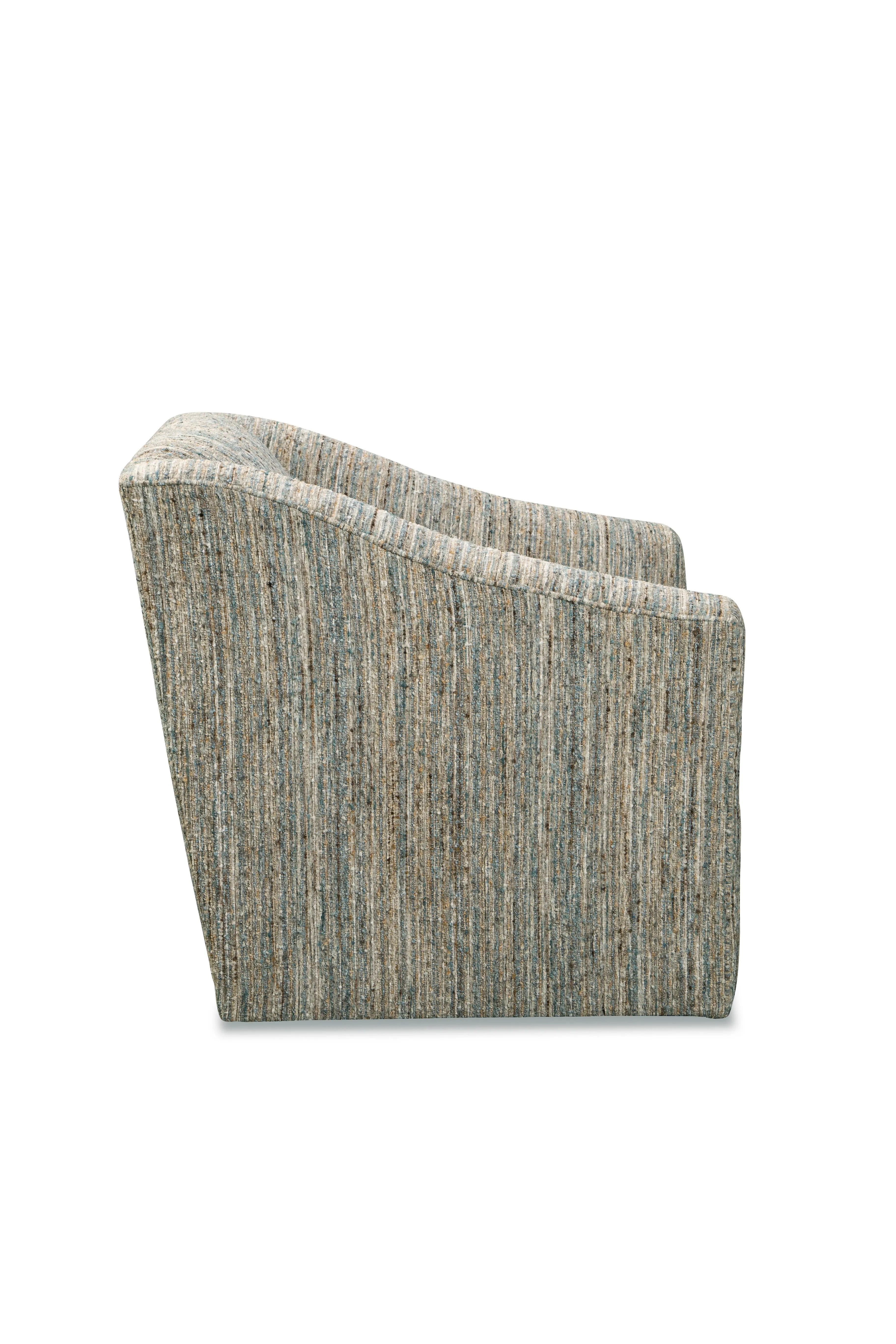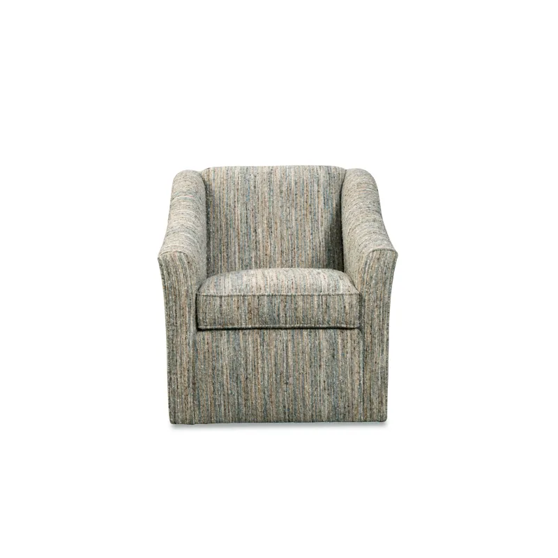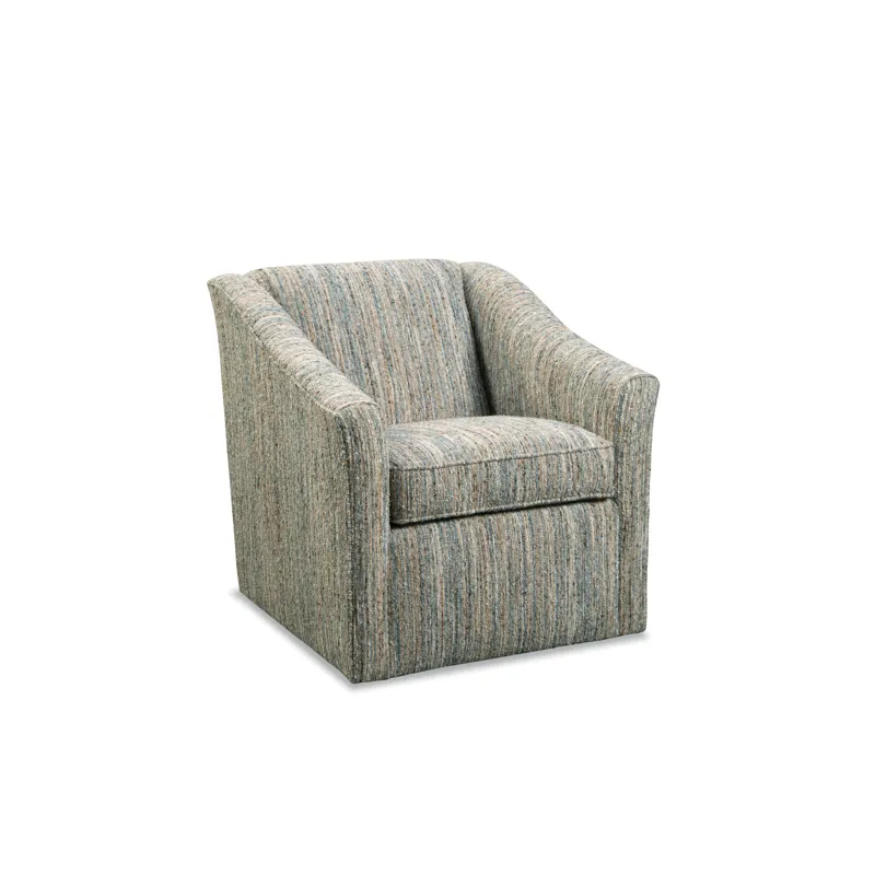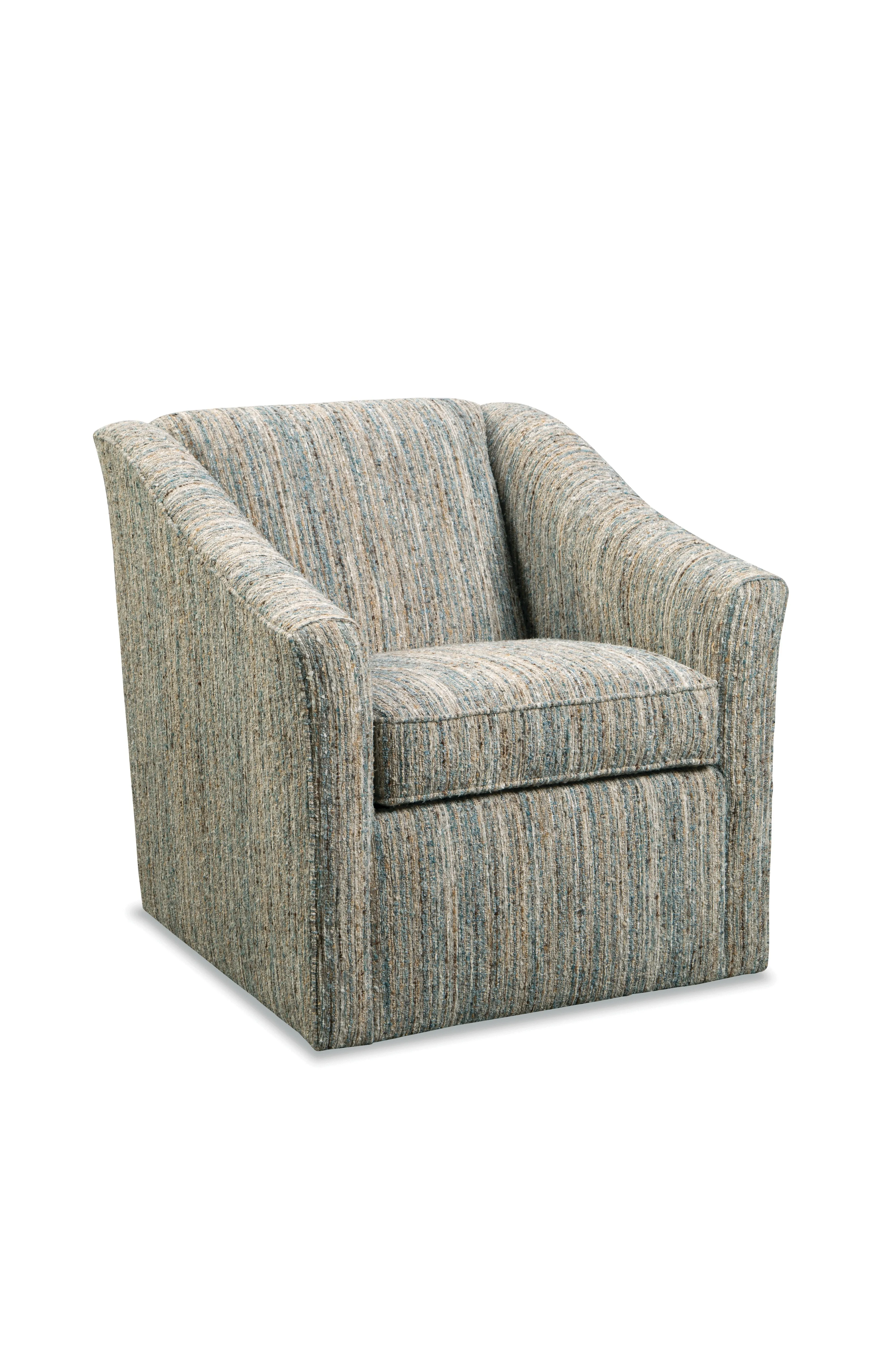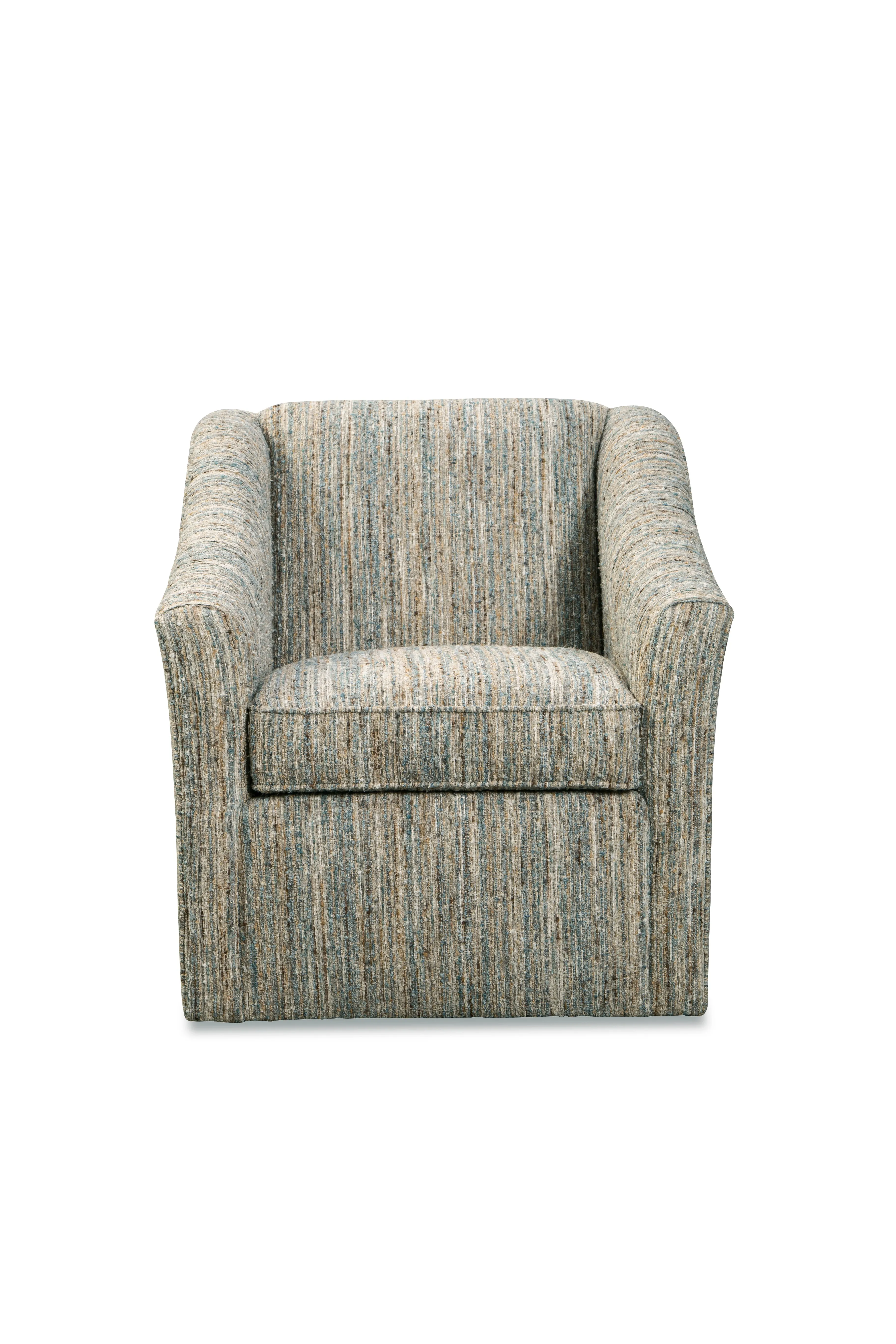 One of our go-to chairs for transitional styling, this swivel chair is an easy choice when you are looking for comfort and style. It features a maintenance-free tight back and plush seating, along with a flared arm and swivel base. The overall look shows graceful design with a trendy edge. Also available as a stationary chair- style 053810.